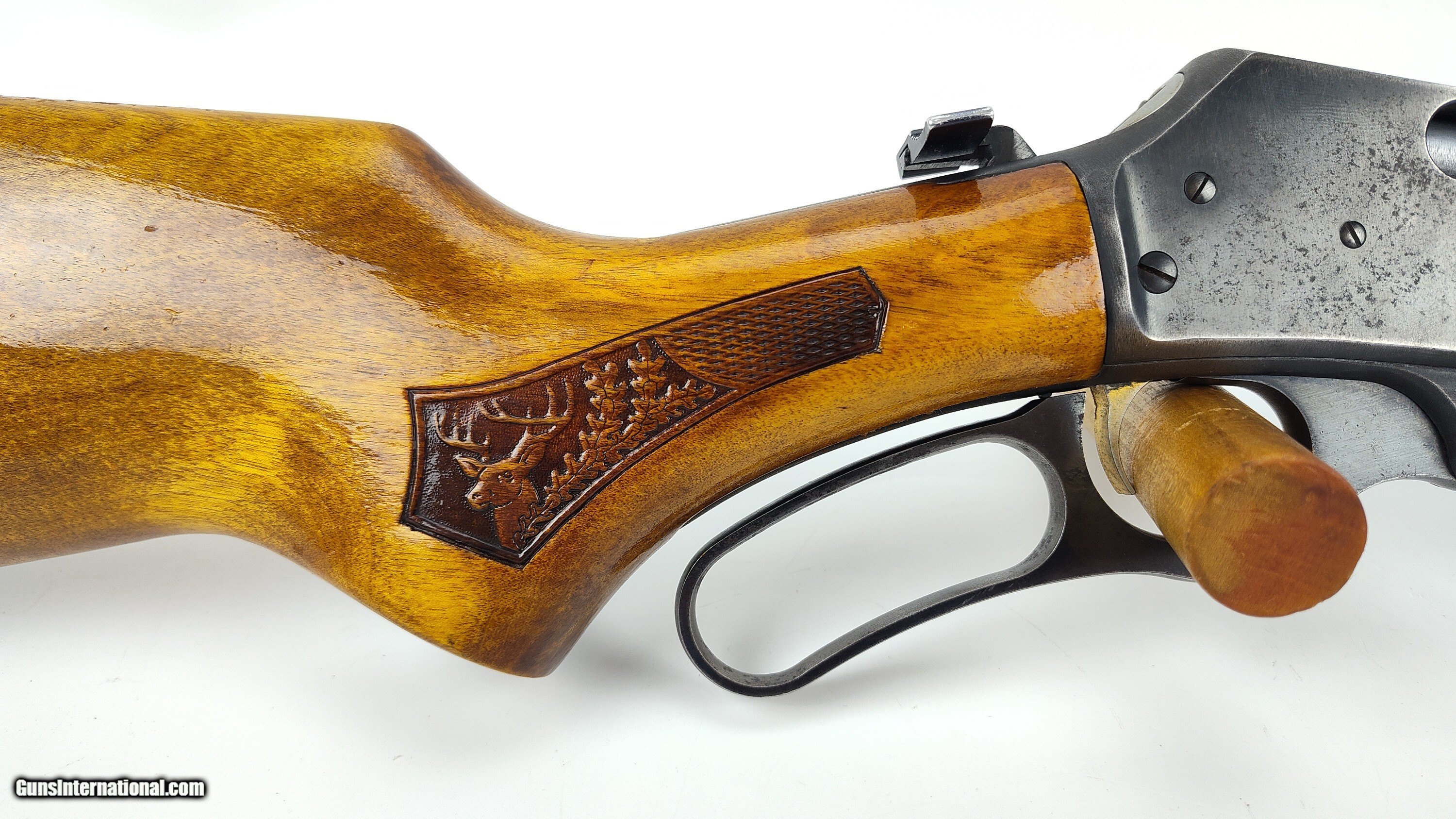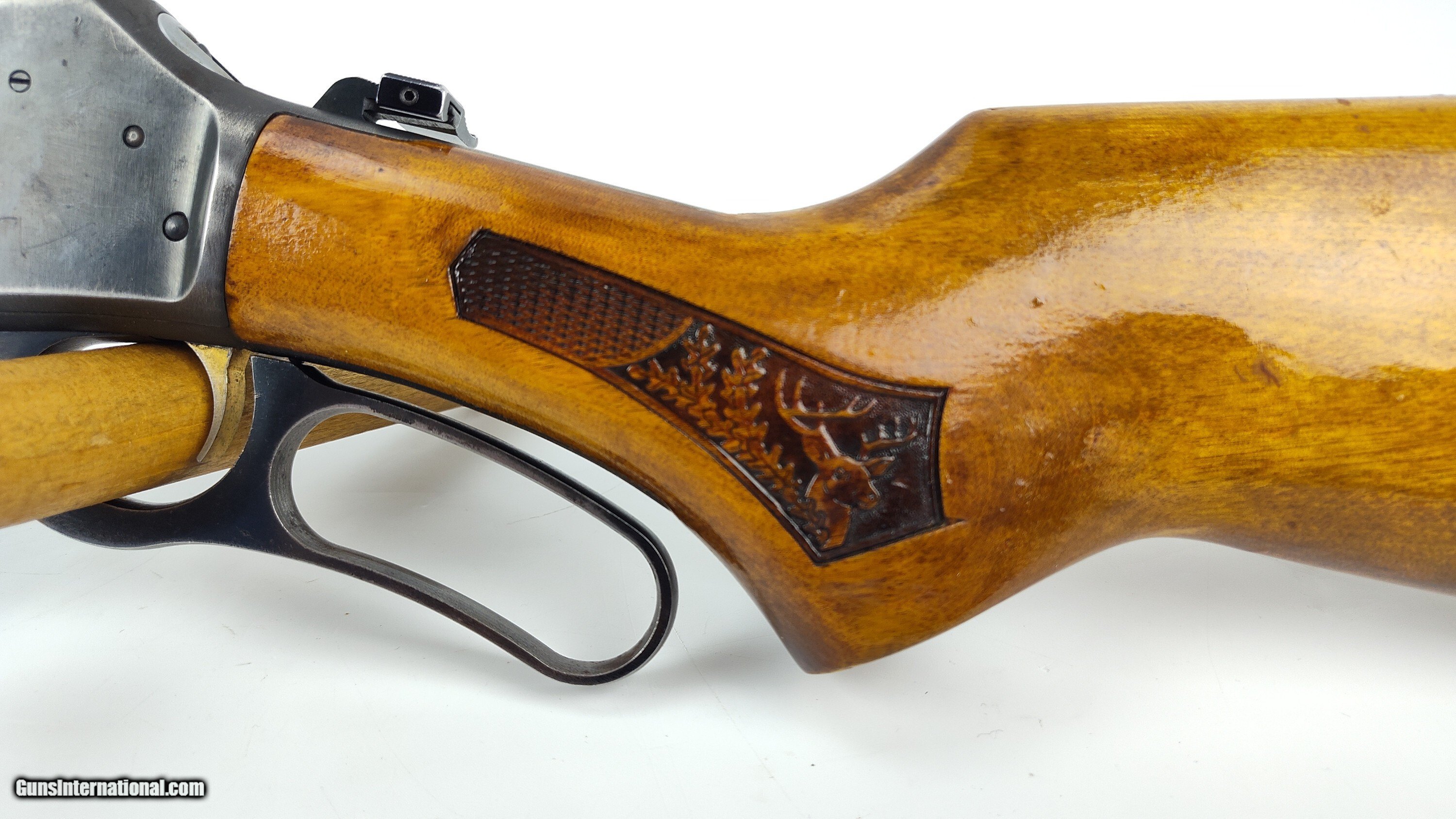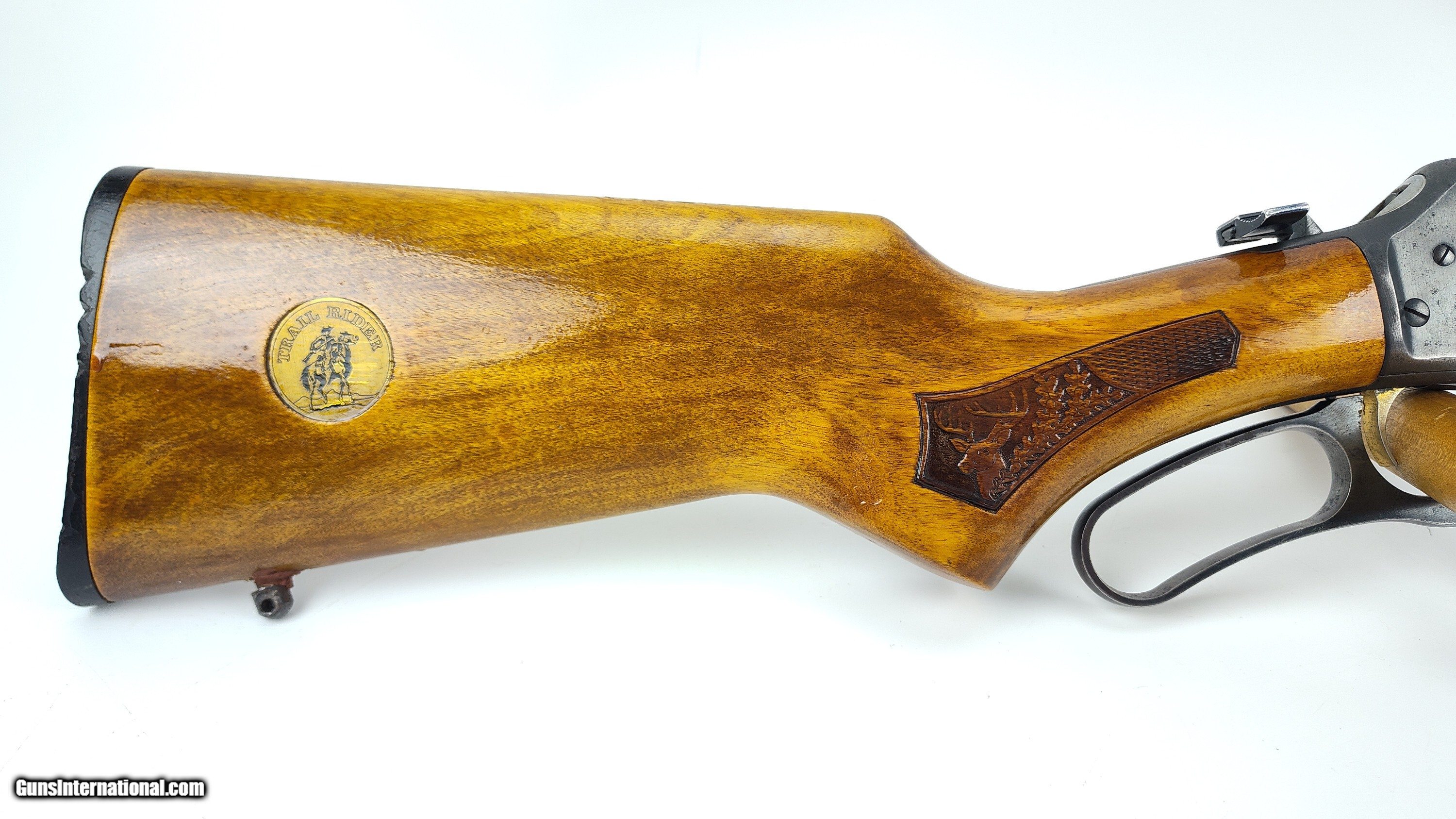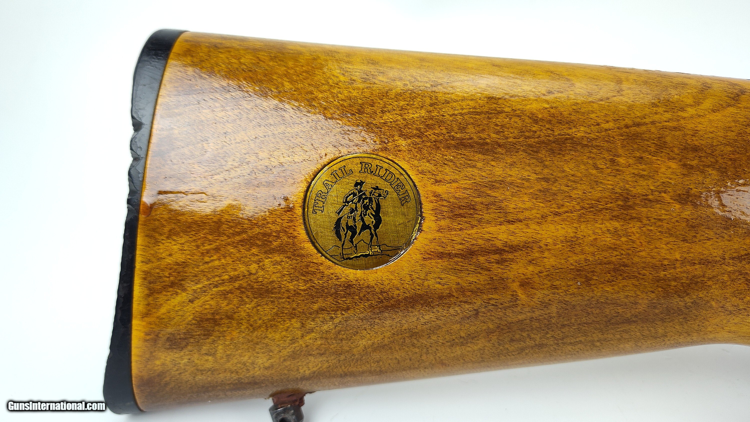 Description: Marlin 3080 Trail Rider Commemorative - Premium OTASCO Limited Edition Presenting an exceptional piece of American firearms history: the Marlin 3080 "Trail Rider" Limited Edition lever action rifle in .30-30 Winchester. This OTASCO-exclusive commemorative, manufactured in 1980, represents the pinnacle of Marlin's collaboration with the legendary Oklahoma Tire and Supply Company. Featuring the JM stamp denoting North Haven manufacture during Marlin's quality zenith, this rifle embodies both collectible significance and field-ready performance. The "Trail Rider" edition showcases premium features including an exquisitely checkered walnut stock with detailed deer and leaf motifs, complemented by a distinctive Trail Rider medallion inlay. The 20" JM-marked barrel and 38.5" overall length provide classic Marlin handling characteristics, while the 13.3" length of pull ensures comfortable shooting for extended periods. The blued finish exhibits character-appropriate patina, confirming this piece's authentic history while maintaining excellent mechanical integrity. Technical Specifications
