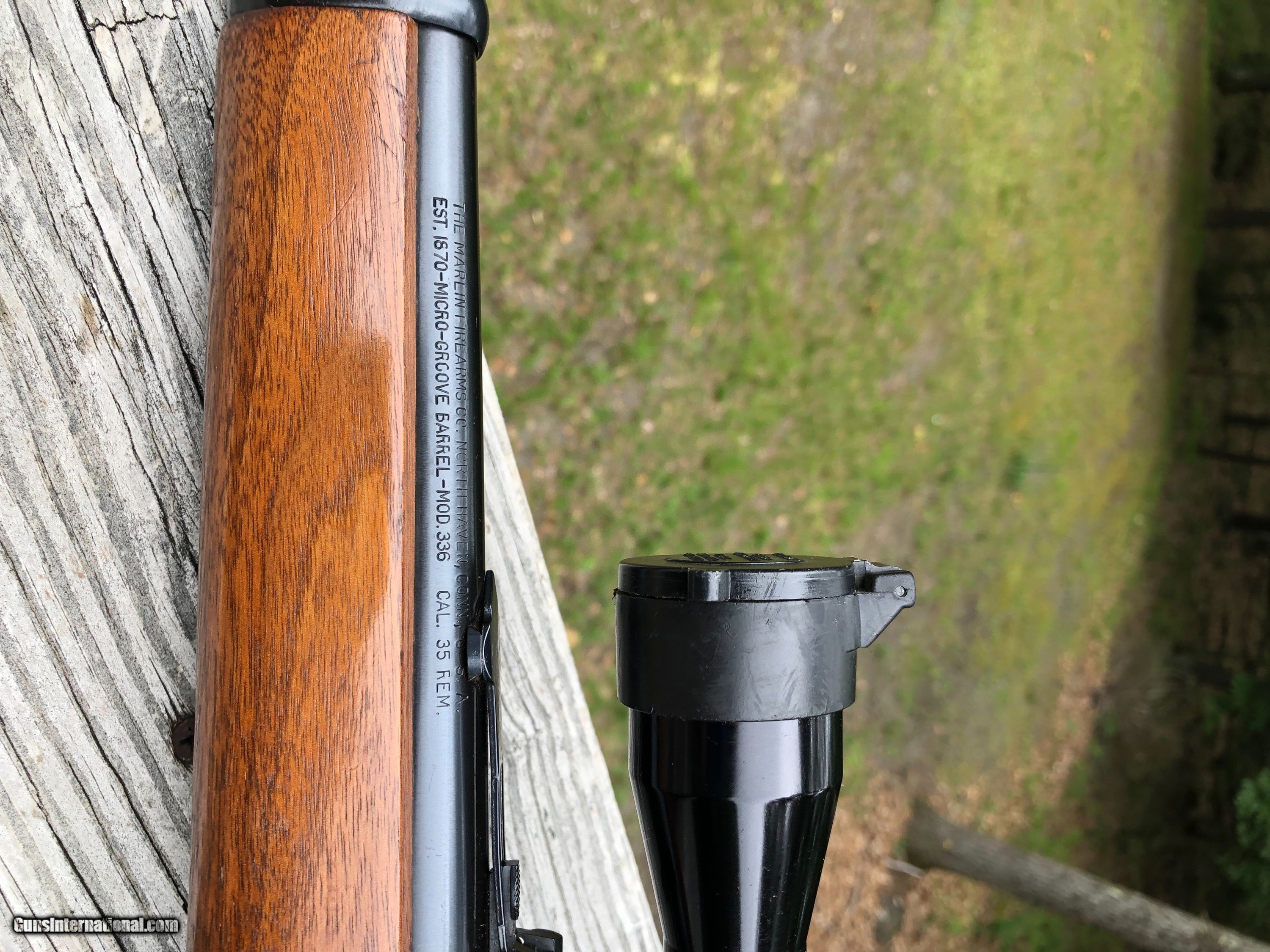Description: Sale Pending 12/2/23.Here's a Marlin 336 in .35 Rem with the JM stamp with a 20" Micro-Grooved Barrel. The Rifle will make a great shooter. The metal has some blueing loss on the side of the receiver as well as the underside. The bore is excellent. The stock is sound with some handling marks and finish loss at the butt plate. Please ask questions prior to purchasing. Please make sure that your FFL Dealer will accept this weapon from a NON FFL DEALER. Postal Money Order will be the method of payment. SOLD |