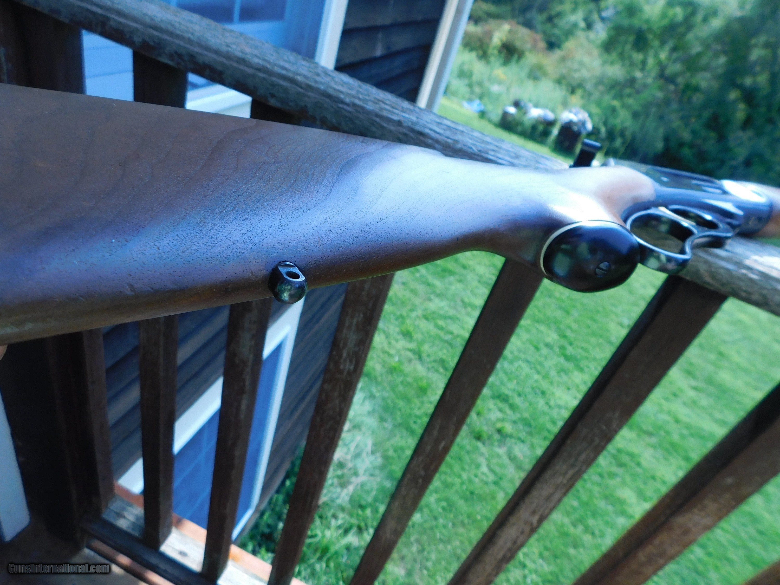 Description: Increasingly hard to find in this condition and this cal is this 35 Rem JM . A few modest marks on forend mostly (none significant) and metal almost perfect. Chambered in potent 35 Remington which is far more capable than 30 30 class and is effective for game up to and including Moose. Still has front sight hood. Shipping $ 59.00 IF IT DOES NOT SAY ."SALE PENDING, UNDER DEPOSIT or ON HOLD"...IT IS AVAILABLE. WE DO NOT REPLY TO INQUIRIES THAT SAY "INTERESTED IN THIS GUN" OR "IS IT AVAILABLE" IF YOU WOULD LIKE TO BUY THIS OR ANY OF OUR GUNS WE SUGGEST YOU PHONE US; WE ARE OFTEN AVAIALABLE LONG HOURS. IF YOU ARE INTERSTED IN A GUN THAT IS UNDER DEPOSIT AND WOULD LIKE TO BE NOTIFIED IF A SIMILAR GUN COMES IN DROP US A LINE AND WE WILL MAKE EFFORTS TO CONTACT YOU WHEN ONE DOES COME IN. WE HAVE OVER 2000 SALES ON ALL SITES WITH AN A+ RATING ON ALL WE ALSO KEEP AN INVENTORY OF OLDER PERIOD CORRECT SCOPES; CALL WITH NEEDS WE MOSTLY PICK VERY CLEAN AND LIGHLTY USED GUNS. WE ARE HAPPY TO TAKE CONSIGNMENT GUNS AND COLLECTIONS OR WILL BUY YOURS OUTRIGHT. WE SOMETIMES ARE EMPLOYED FOR ESTATE PURPOSES AND VALUATIONS. AT THIS TIME WE ARE ONLY ACCEPTING US POSTAL MONEY ORDERS OR BANK CHECKS FOR PAYMENT IT IS THE BUYERS RESPONSIBILITY TO GET US A COPY OF YOUR RECEIVING FFL'S LIC AND A COPY OF YOUR PHOTO ID BEFORE THE GUN SHIPS YOU MUST CALL OR CONTACT YOUR FFL.WE DO NOT CALL FOR YOU UNLESS THEY RQUIRE IT. LAYAWAY PURCHASES NOT COMPLETED ON ANY RETURNED ITEM UNLESS NOT AS DESCRIBED OR DAMAGED ARE SUBJECT TO A 10% RELISTING/RESTOCKING FEE AND MUST BE RETURNED WITH NO NEW MARKS OR SCRATCHES, SENT BACK INSURED, PRIORITY SIGNATURE REQUIRED. ALL INFORMATION CONTAINED HEREIN IS BELIEVED TO BE ACCURATE BUT IS NOT GUARANTEED. WITH ANY OLDER OR USED GUN IT SHOULD BE INSPECTED BY A GUNSMITH PRIOR TO SHOOTING. SOLD |