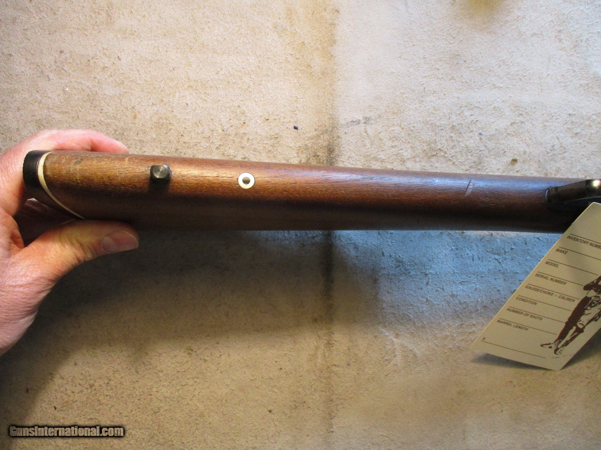 Description: Marlin 336, 30-30, 18" barrel, skinner style sights. SN is 200896xx, made in 1980. Factory finish on both wood and metal. JM stamped barrel. Has been to England sometime in its life, has the English proof marks. Nice gun, nice clean gun, perfect bore. We will trade for silver and gold. We accept personal check, any certified funds, Venmo or Zelle. We can also take your credit card, +3%. Email me if you would like these pictures sent to you, they will come through bigger and better than on the listing page here. We do offer Layaway. Our standard terms are 25% down, 90 days. Initial deposit is not refundable. Email me with any questions. Please check your local laws to confirm it is legal to own in your state! Buyer pays $60 shipping and insurance in a brand new PLANO hard case to your FFL in the lower 48. AK, HI or PR is extra. I will ship to California, as long as it is legal, NO PROBLEM! All my guns come with a non-firing, 3 day unconditional return privilege, from the day UPS delivers to your dealer. Buyer pays shipping both ways if the gun comes back. Please make sure to make it to your FFL to inspect within the 3 days. I am a licensed FFL, and will include a copy of my FFL with the gun for your dealer’s records. I will ship to a C&R if the gun is eligible. I will ship to California, but you need to confirm the gun is legal where you are, California or other. WE BUY AND CONSIGN GUNS AND GUN COLLECTIONS! We will travel to pick up collections! I am always looking for good clean, old original Winchesters to buy, consign, or trade, especially Pre '64's model 70's and model 54's. WE ALSO TRADE FOR CLASSIC CARS AND TRUCKS! We also trade for gold and silver. SOLD Rifle Caliber: .30-30 Winchester Manufacturer: Marlin Model: 336 Barrel Length: 18 Condition: Used |