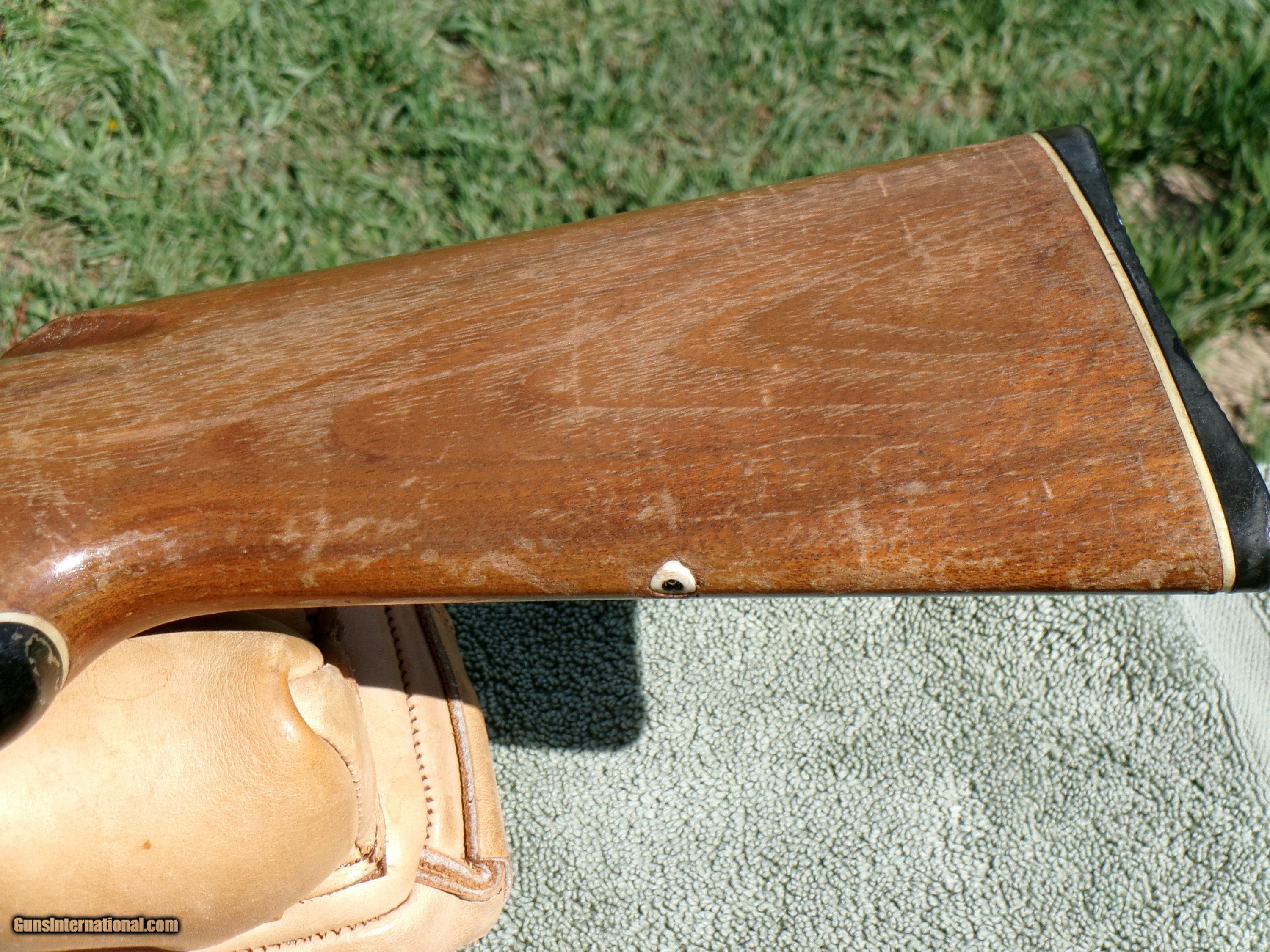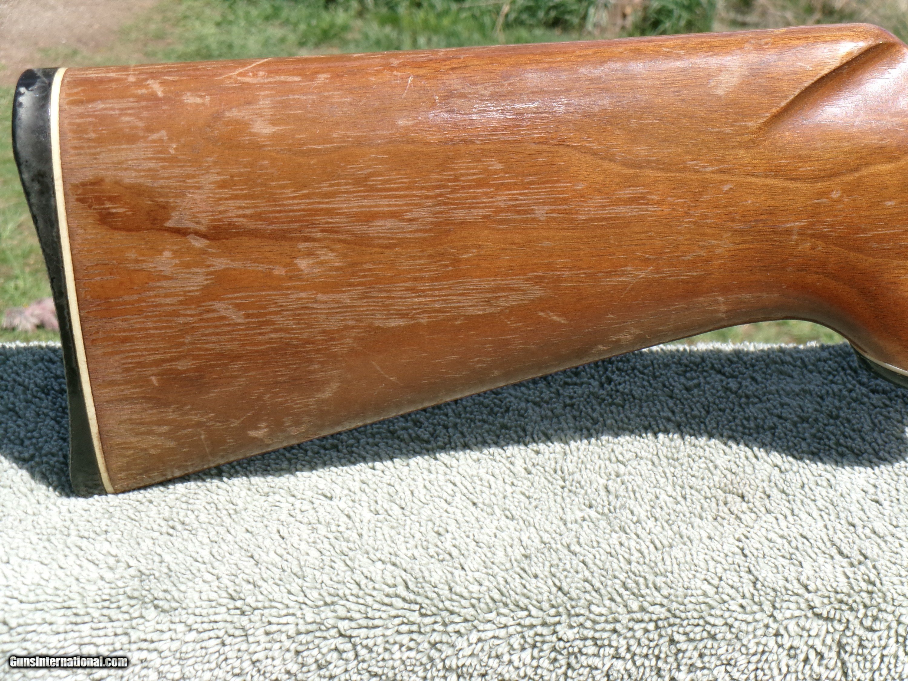 Description: I have a JM Marlin 336 in 35 Remington, made in 1977.. The rifle has a 20" micro-groove barrel with an excellent bore. The bluing is very good with one blemish behind the front sight (see pics). There is a hint of freckling on the left side of the receiver flat behind the forearm. The wood finish is worn thru on both the forearm and butt, There is some finish remaining but the stocks could use a light sanding and refinish The are no spilts or cracks, but the wood shows its age. The rifle is still solid with no wobble or loose fitting parts. If a body wants a shooter that's less than perfect, but still very servicable,this is your gun. No CA sales. Gun must go to FFL. Shipped via Priority Mail, insured, from private party, $45.00 shipping & ins. SOLD Rifle Caliber: .35 Remington Manufacturer: JM Marlin Model: 336 Barrel Length: 20 Bore: exc Condition: good Metal Condition: very good Wood Condition: good Bore Condition: excellent Weight: 6lbs 12oz Sights: iron Manufacture Date: 1977 |