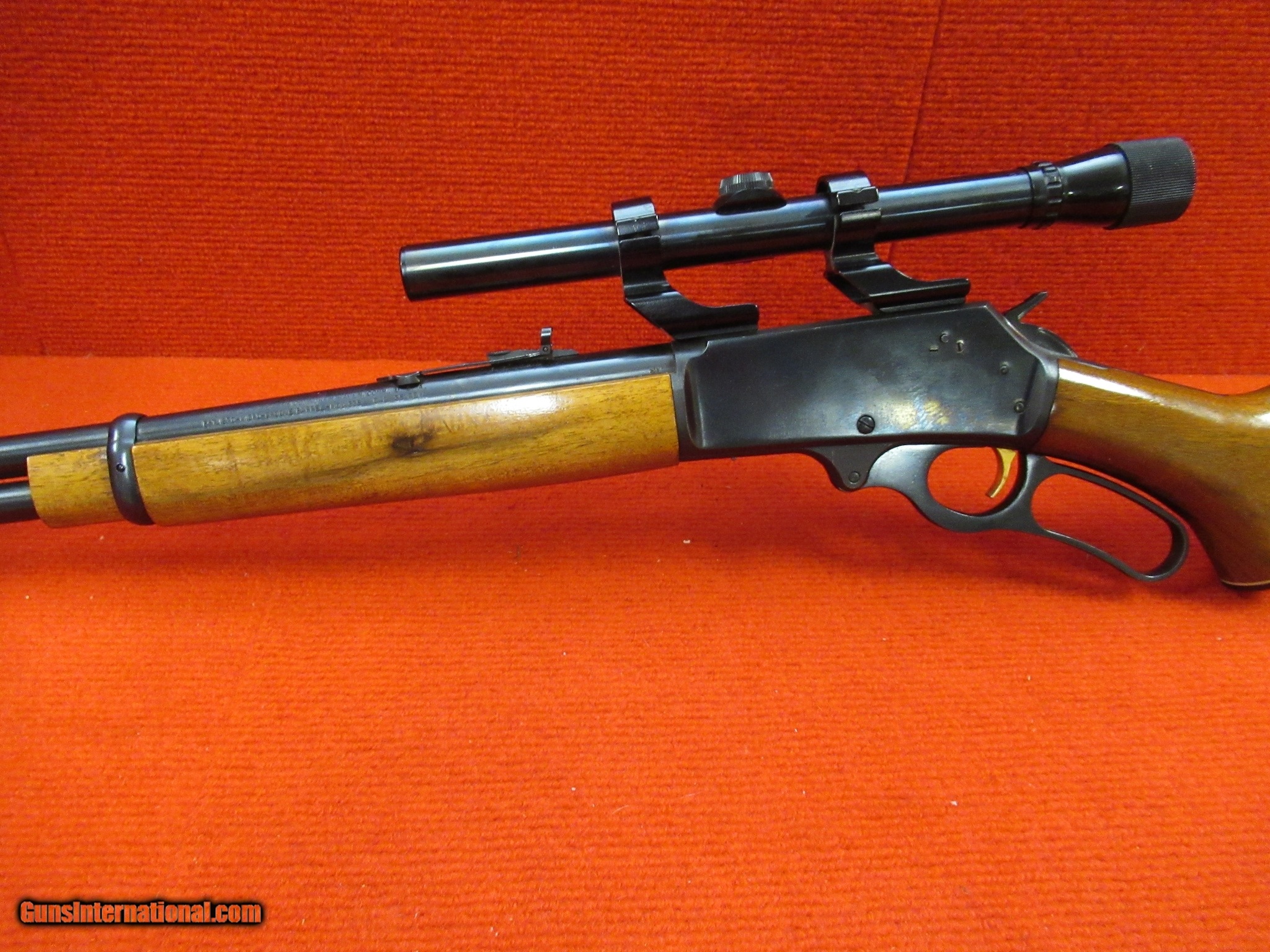 Description: Guns Listing ID: 914554 #457B Gun is in excellent condition. There are a couple tiny indentions in the stock and forearm, all of the bluing still intact. Front hooded sight, rear adjustable sight, gold trigger. Gun comes with a Weaver D6 mounted with see-through scope mounts. 20-inch micro groove barrel stamped \"JM\". Great collectors piece. Very nice and well-preserved gun. *!^ SOLD Manufacturer: MARLIN Model: 336 (JM stamped) Caliber Info: .35 REM Condition: Used - Non-Certified Barrels: 20 BARREL |