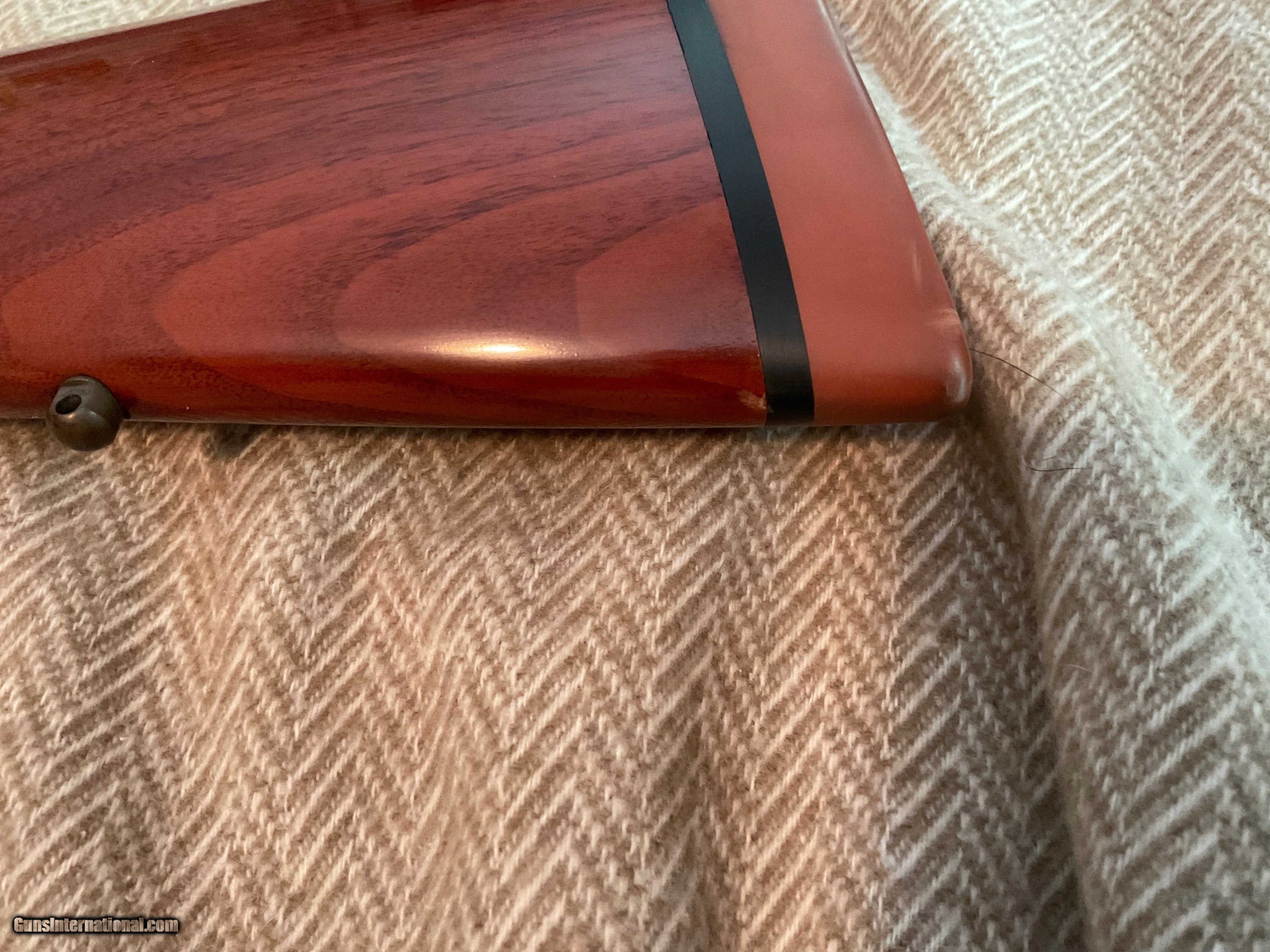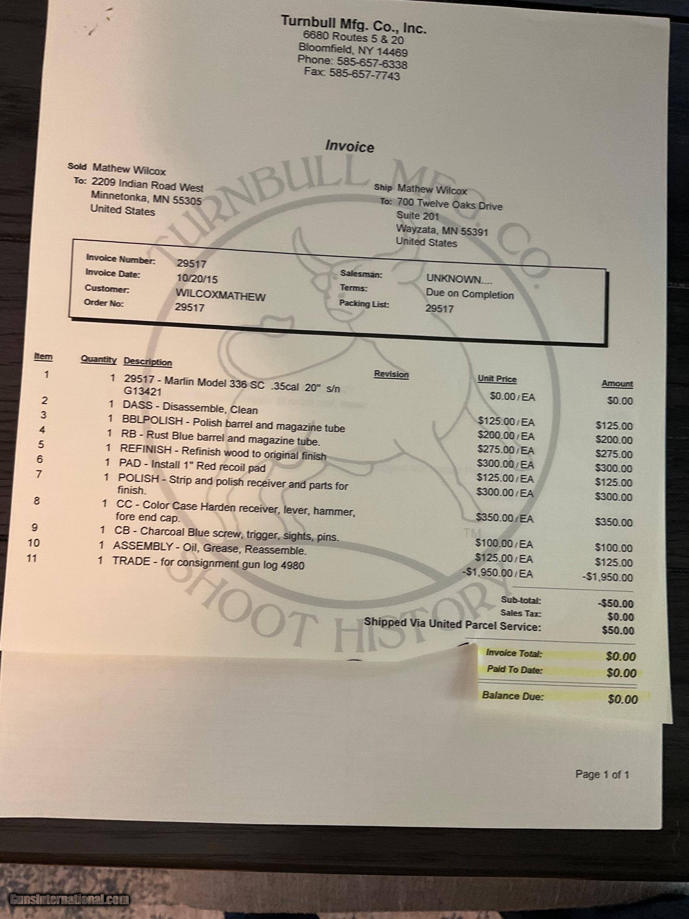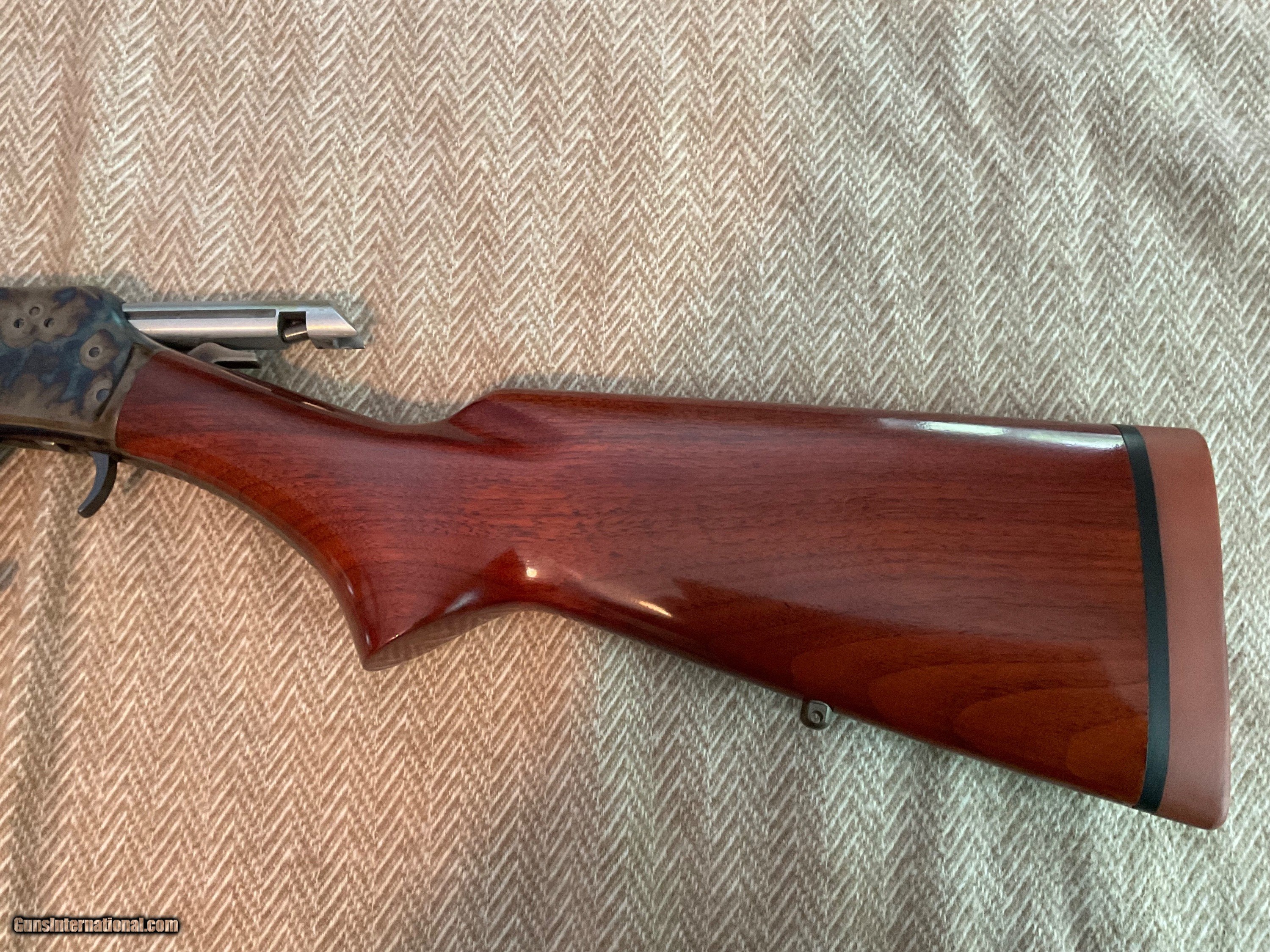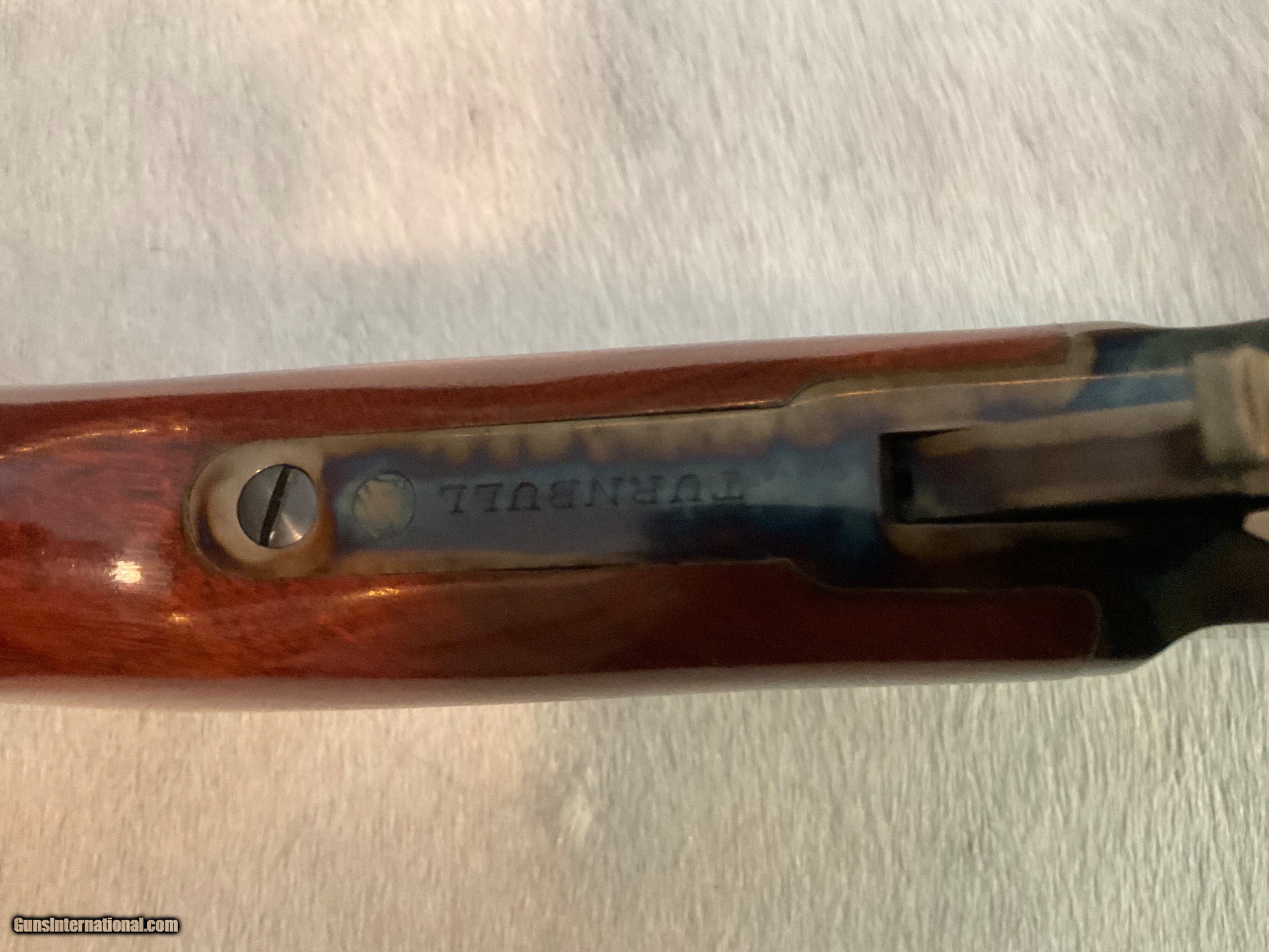 Description: REDUCED! Was $3,299, now $2,999. Marlin JM Stamped 336 SC in 35 Remington. Wow! Really take a look at this one. This is a full restored 1952 336 SC in the hard hitting 35 REM. Restored in 2015 and has sat in the safe ever since. Turnbull Restorations out of Bloomfield NY has pretty high standards to even consider restoring a gun. The entire gun was dissembled, polished, and cleaned. Barrel, magazine tube were rust blued. Receiver was stripped and polished. Reliever, lever, hammer, and the forend cap were then color case hardened. Charcoal blue screw, trigger, sights, pins. Stock was refinished to original finish and a classic old red plug style 1" recoil pad installed. This rifle is an heirloom and must be seen to be appreciated. Turnbull. One small safe ding on underside of butt stock. TURNBULL rolled into top tang. All restoration paperwork included. 30 rounds of Hornady LEVEROLUTION 200 GR FTX included and shipped separately. $2,999 plus $50 insured shipping to FFL. SOLD |