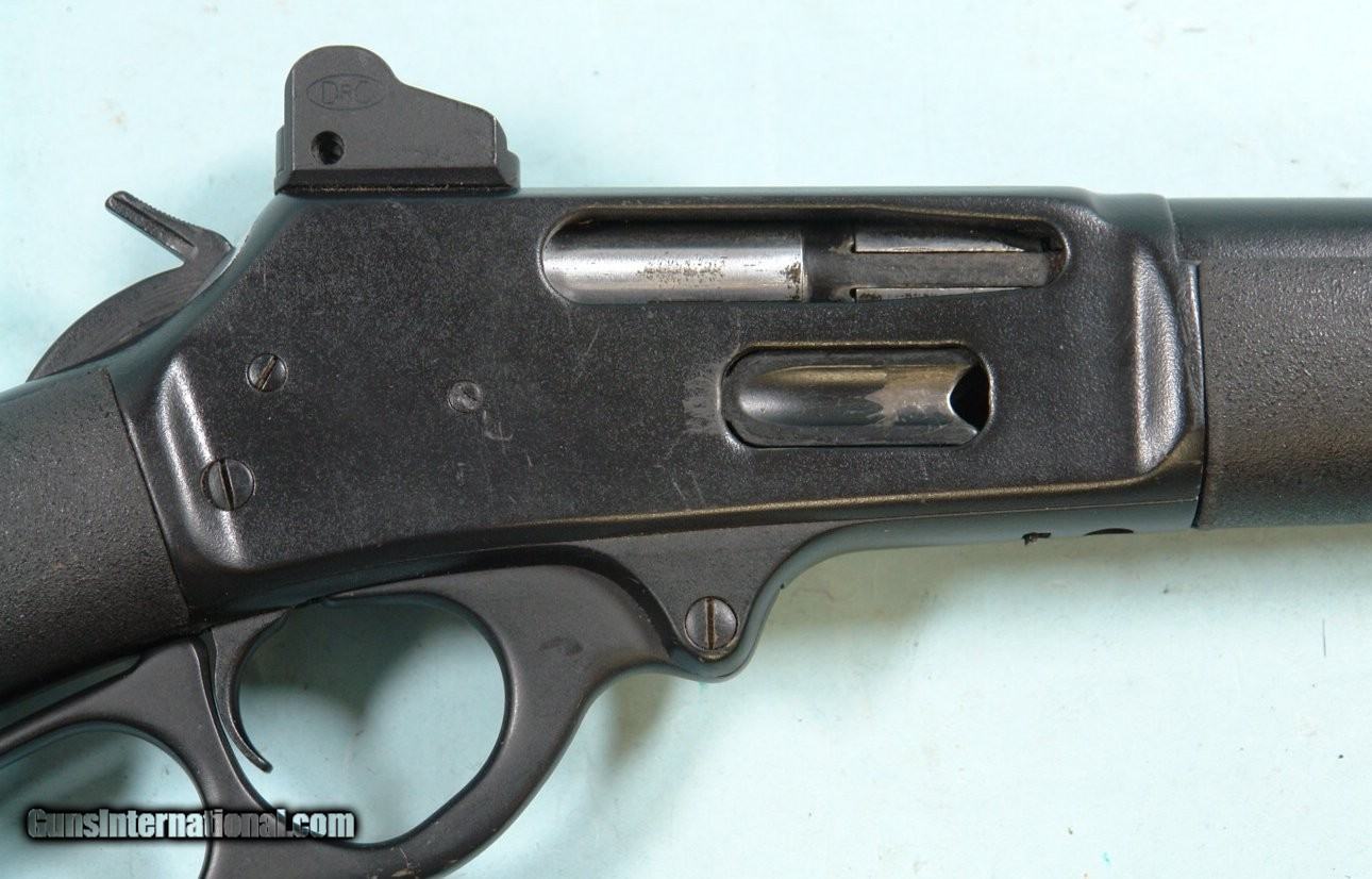 Description: MARLIN 336 TRAPPER STYLE .30-30 WIN CUSTOMIZED TACTICAL LEVER ACTION CARBINE. "JM' stamped barrel now 17" with anodized black matte finish(same and matching on receiver). Barrel has aftermarket front ramp with glow in the dark insert. Rear drilled and tapped into top of receiver for guarded "DrC' stamped adjustable ghost ring style peep.Lever loop opened up slightly I assume for glove use. Black synthetic stock and forend(forend missing one screw). Make a nice pack rifle which is what I assume he was going for when altered. No markings on rifle remaining save the "JM" on barrel. Mising mag tube screws as well(easy fix). Weighs 6.25 lbs. Thres sling swivels for options. SOLD Rifle Caliber: .30-30 Winchester |