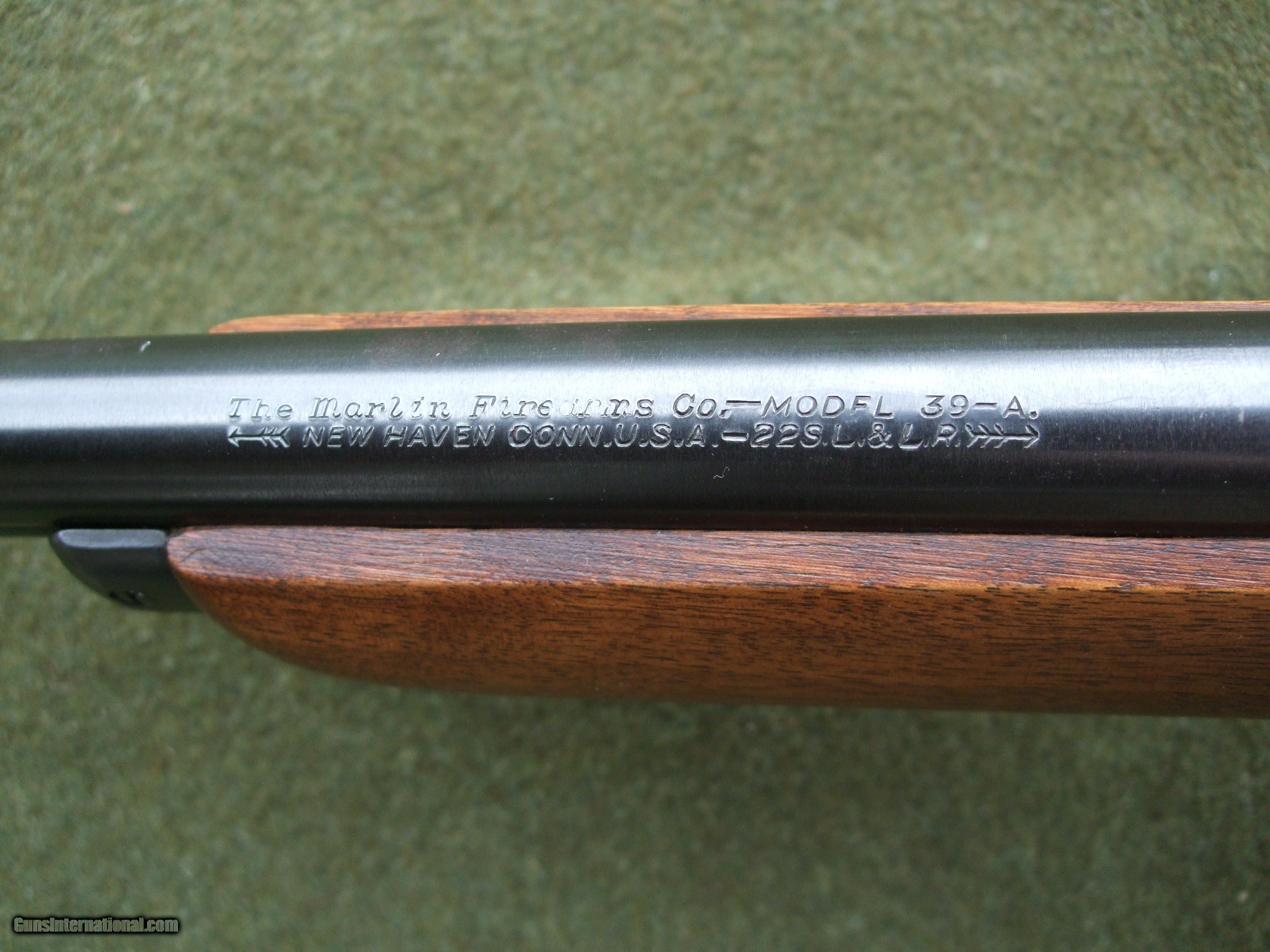 Description: Marlin 39 A 22 LR Made in 1950 Very Nice. great bore. Solid wood. No rust. Shipping is $25.00 SOLD Rifle Caliber: .22 Long Rifle |