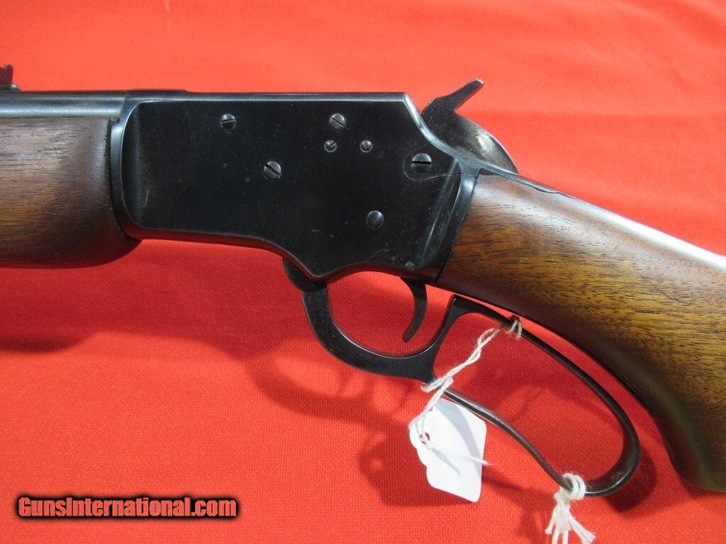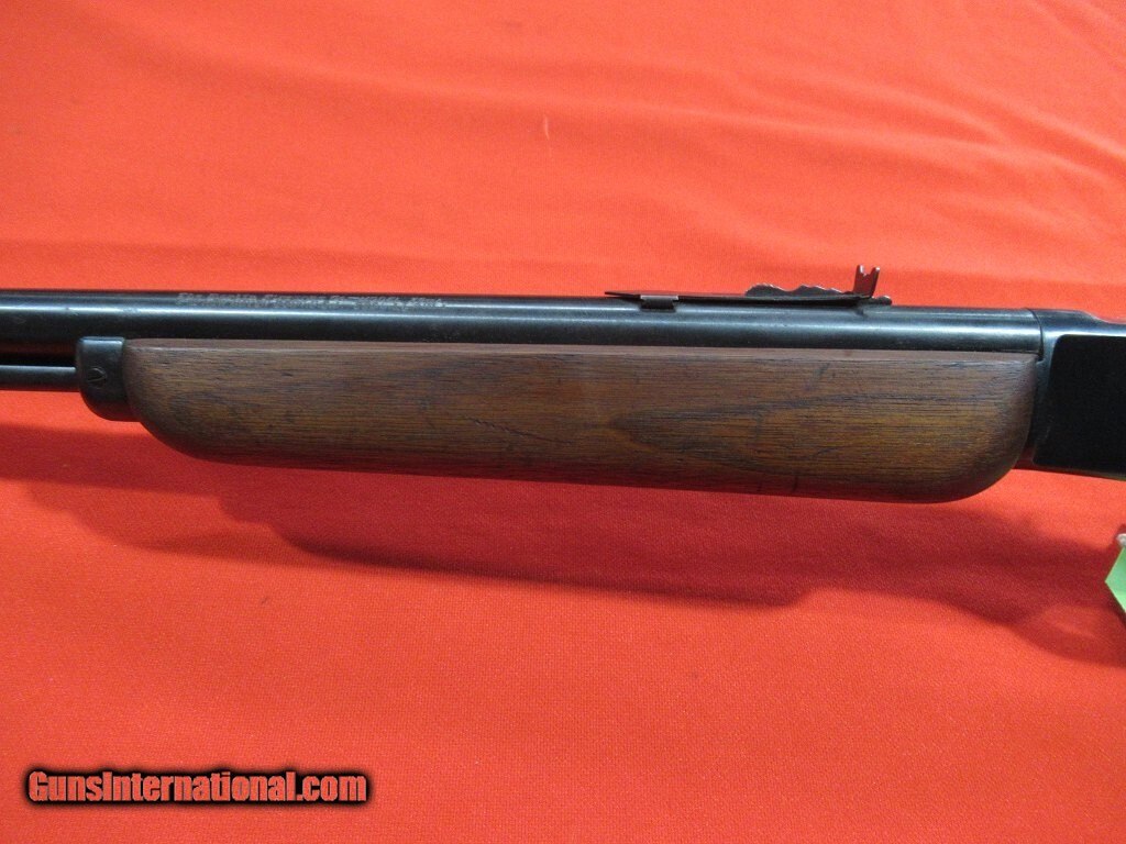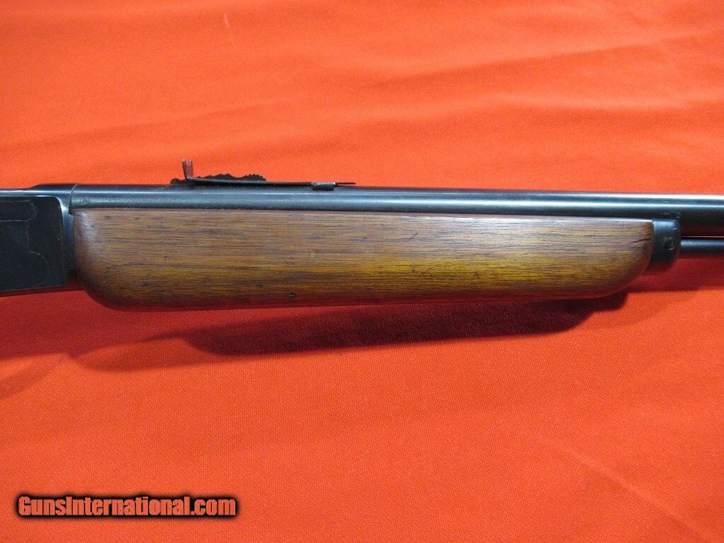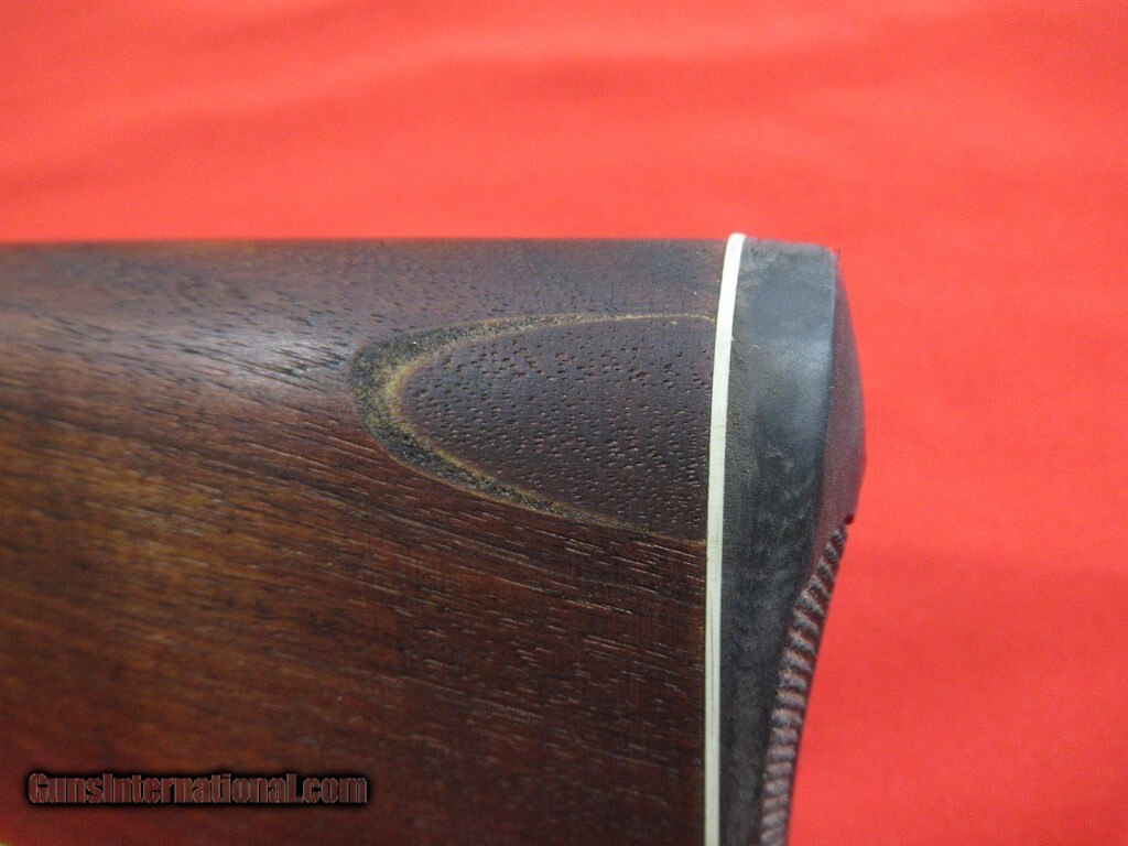Description: Good example for a classic American rimfire lever rifle: non checkered stock and forend, adjustable rear sight, repair to the heel of the stock, replacement butt plate. Price: $750.00 Contact Seller |
