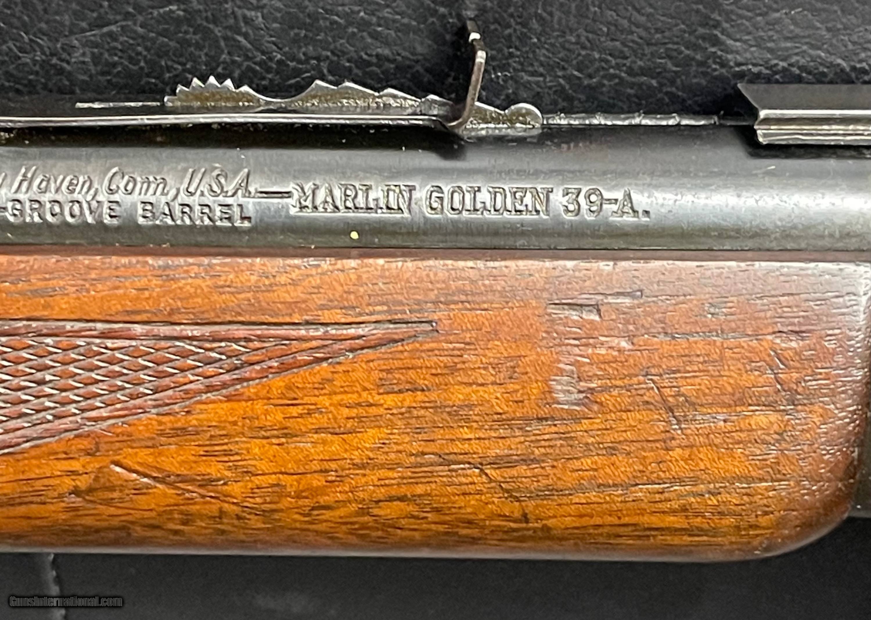 Description: Super rare 39. This gun features a 24 inch barrel, adjustable sights, checkering, nice curly wood, squirrel carving on the stock, and blue finish. This is a first year gun, 1961. Has a scope mount on it. Some wear but very light for a 64 year old gun! Please email with questions. Shipping and insurance included. Cards add 3% Manufacturer: Marlin Model: 39A-DL Barrel Length: 24 inch Condition: Used Metal Condition: Excellent Wood Condition: Excellent Bore Condition: Excellent Action: Lever Finish: Blue Sights: Adjustable Manufacture Date: 1961 Item Location: 37075 Price: $1,750.00 Contact Seller |