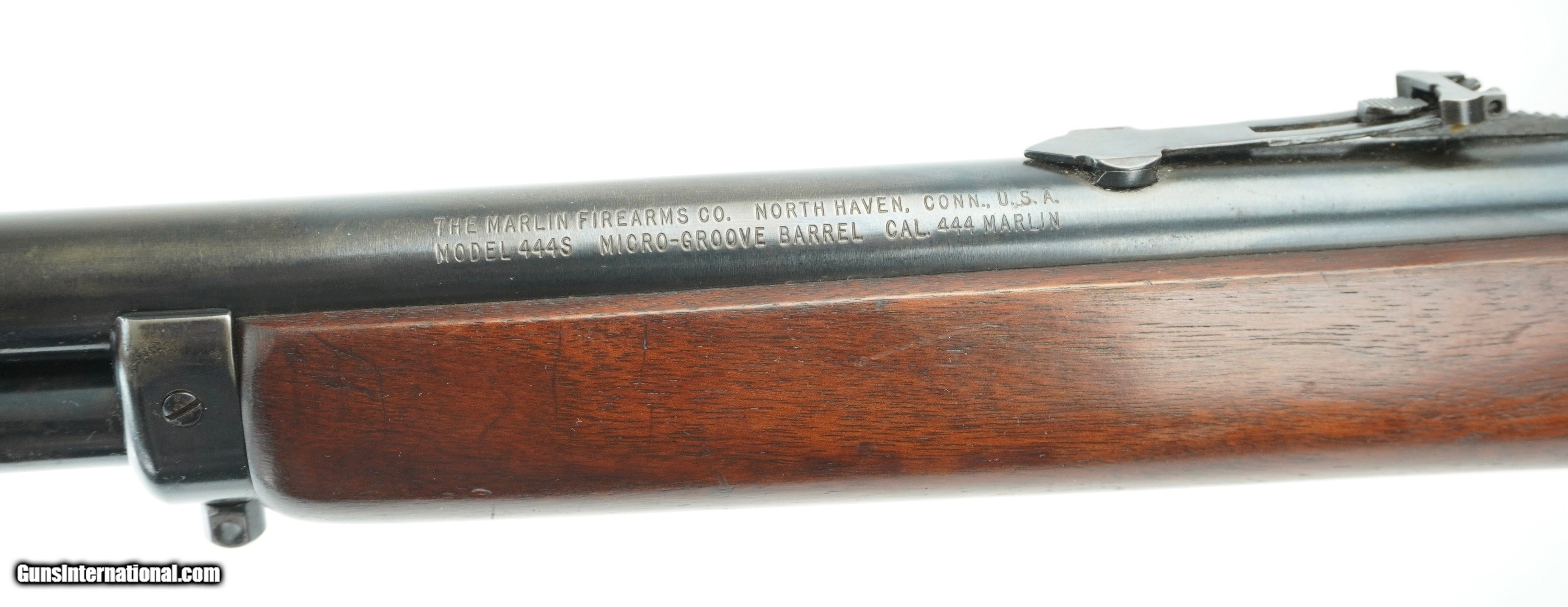Description: Marlin 444S showing some wear from many hunting days. Bore looks good. Bluing wear on the barrel and receiver. A little pitting can be seen on the receiver. No cracks in the wood. Recoil pad was added. Good shooter or project gun. SOLD Rifle Caliber: .444 Marlin Manufacturer: Marlin Model: 444S Barrel Length: 22 Metal Condition: Fair to Good Wood Condition: Fair to Good Bore Condition: Good Action: Lever LOP: 13.5 Weight: 7 lbs 10 oz Manufacture Date: 1977 |