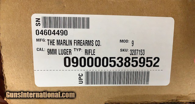 Description: This is a very desireable Marlin Camp Carbine in 9mm caliber that is brand new in the original box with all paperwork, etc. Customer purchased it new and never used it. As good as it gets. If you want the best you just found it. SOLD Rifle Caliber: 9x19mm Parabellum (9mm Luger, 9x19mm NATO) |