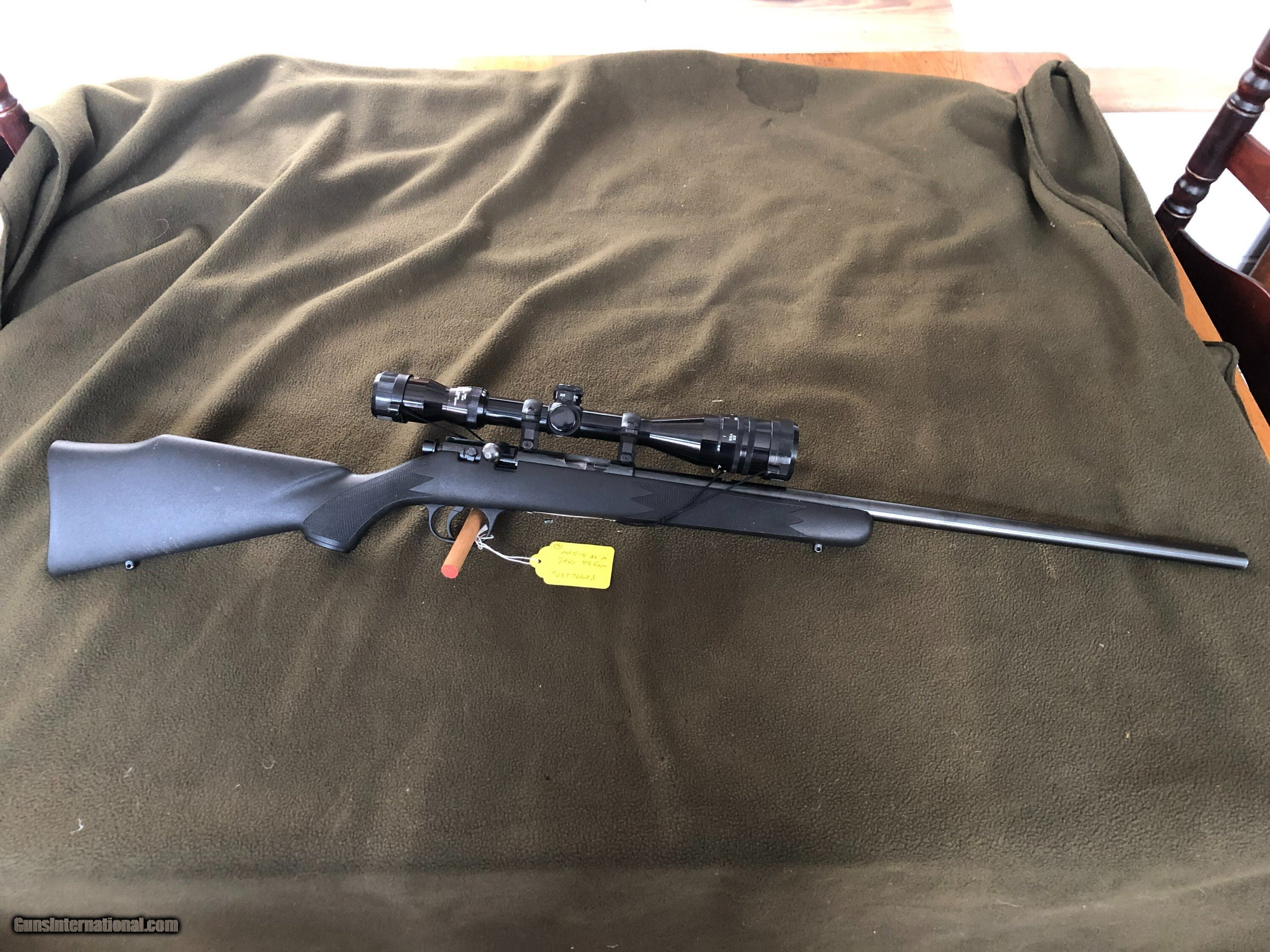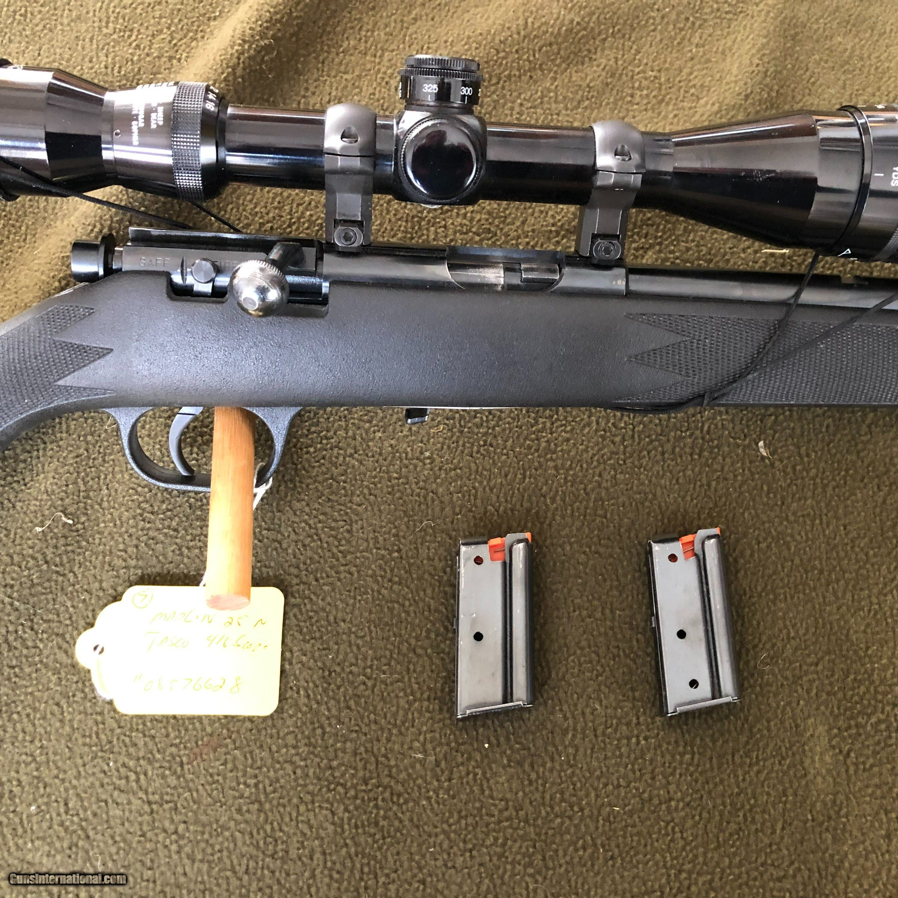 Description: MARLIN 25N .22 RIFLE WITH TASCO 416 SCOPE JM MARK ON THE BARREL ACTION CYCLES CORRECTLY OPTICS GOOD. MINOR USE WEAR TO THE FINISHES. SERIAL #08576628 DATES TO 1992 COMES WITH 2 MAGS FROM THE SAME ESTATE AS THE OTHER QUALITY .22 RIFLES I HAVE LISTED ALWAYS OPEN TO OFFERS ON MULTIPLE BUYS NOTE: ALL SHIPPERS RAISED THEIR RATES IN DECEMBER Rifle Caliber: .22 Long Rifle Price: $279.00 Buy Now Contact Seller |