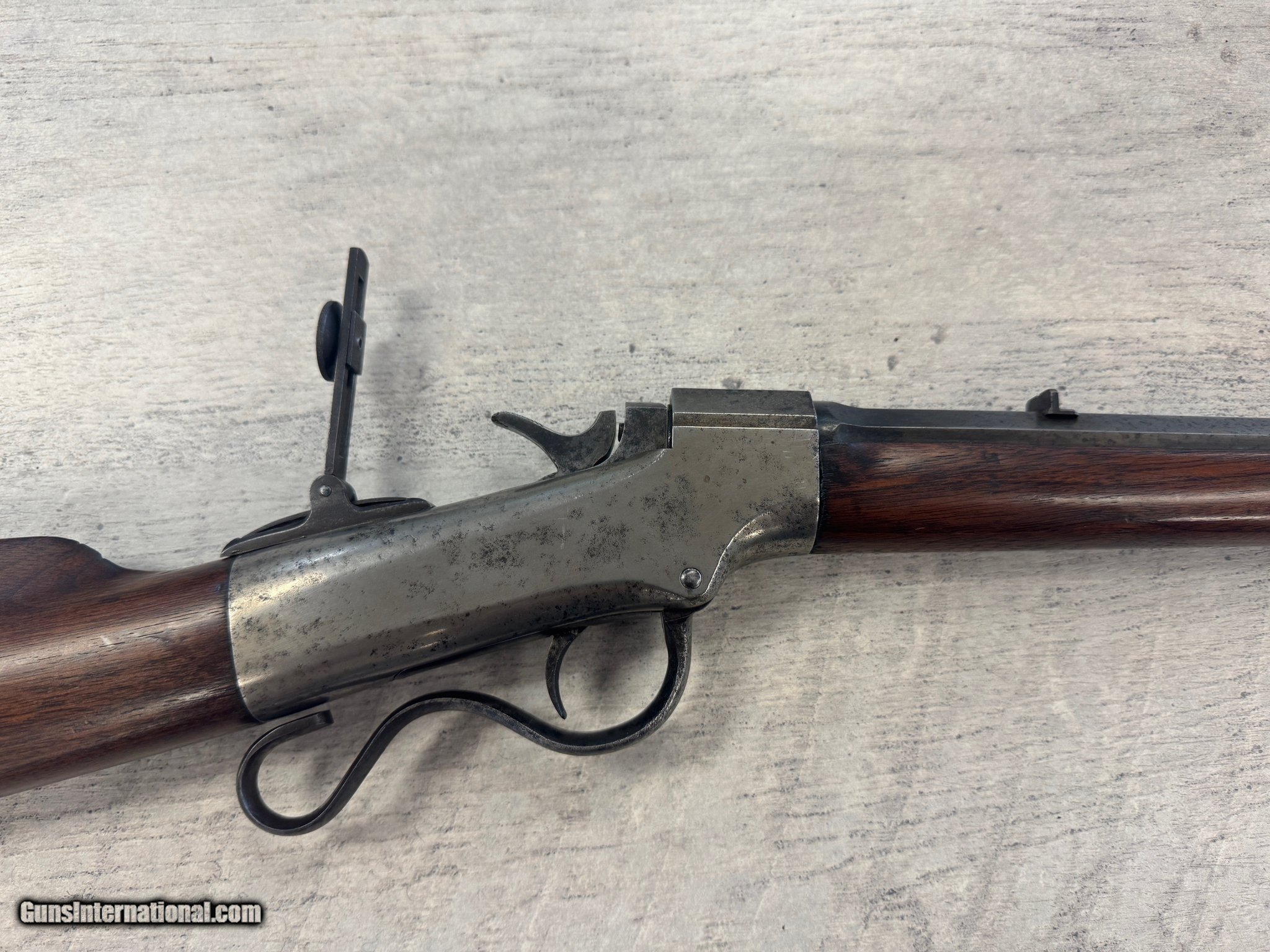 Description: Guns Listing ID: 565542 Fair condition JM Marlin single shot, low-wall rifle. Ole girl has seen some miles. Unknown caliber at this time, will need chamber casting to determine caliber prior to shooting. Appears to likely be rimfire. Rifle features diopter-style rear sight located on tang. Bore is dark but rifling is present. Most of original finish has been worn off. Octagonal barrel. Small crack along grain of stock, as pictured. SOLD Manufacturer: MARLIN Model: NONE Caliber Info: UNKNOWN Condition: Used - Non-Certified Barrels: 24" BARREL Action: SINGLE SHOT Finish: WOOD/BLUED |