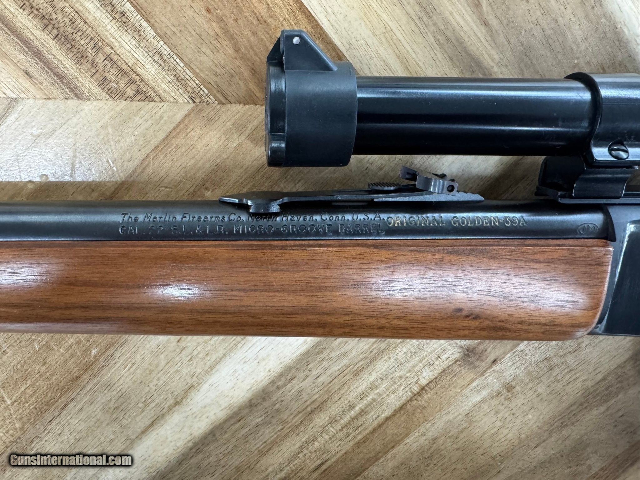 Description: Guns Listing ID: 595519 Marlin Original Golden-39A 22LR, 19 rounds of .22 Long Rifle, 21 rounds of .22 Long, or 26 rounds of .22 Short, Weaver V22-A, Original owner‚s manual, No box Manufacturer: MARLIN Model: Original Golden-39A Caliber Info: .22 LR Condition: Used - Non-Certified Barrels: 24" BARREL Action: LEVER ACTION Finish: WOOD/BLUED Price: $750.99 Contact Seller |