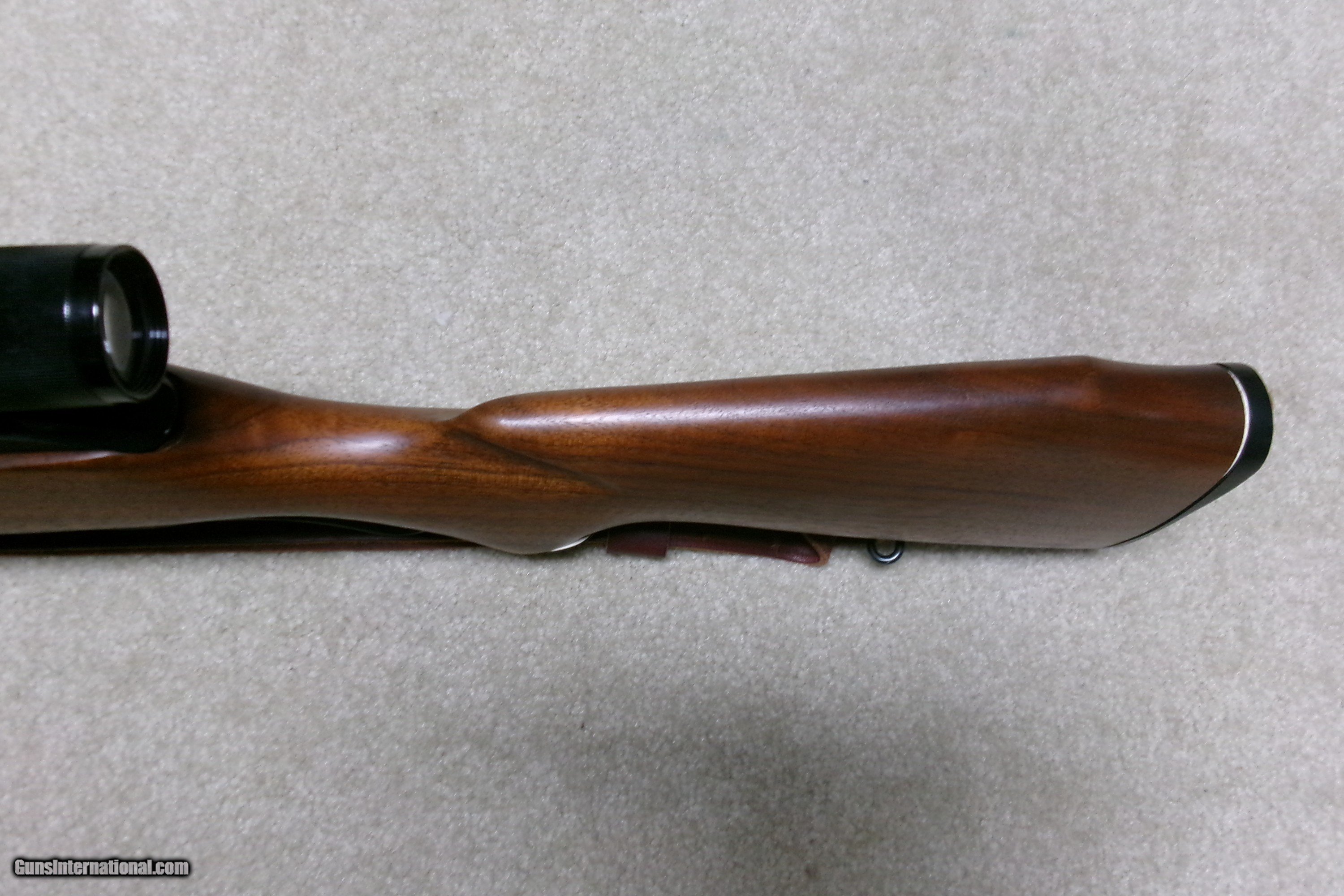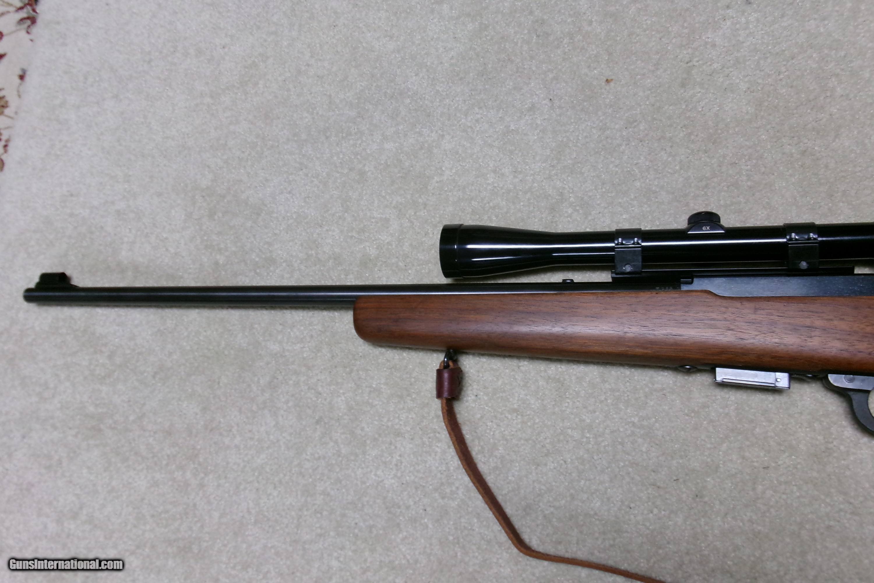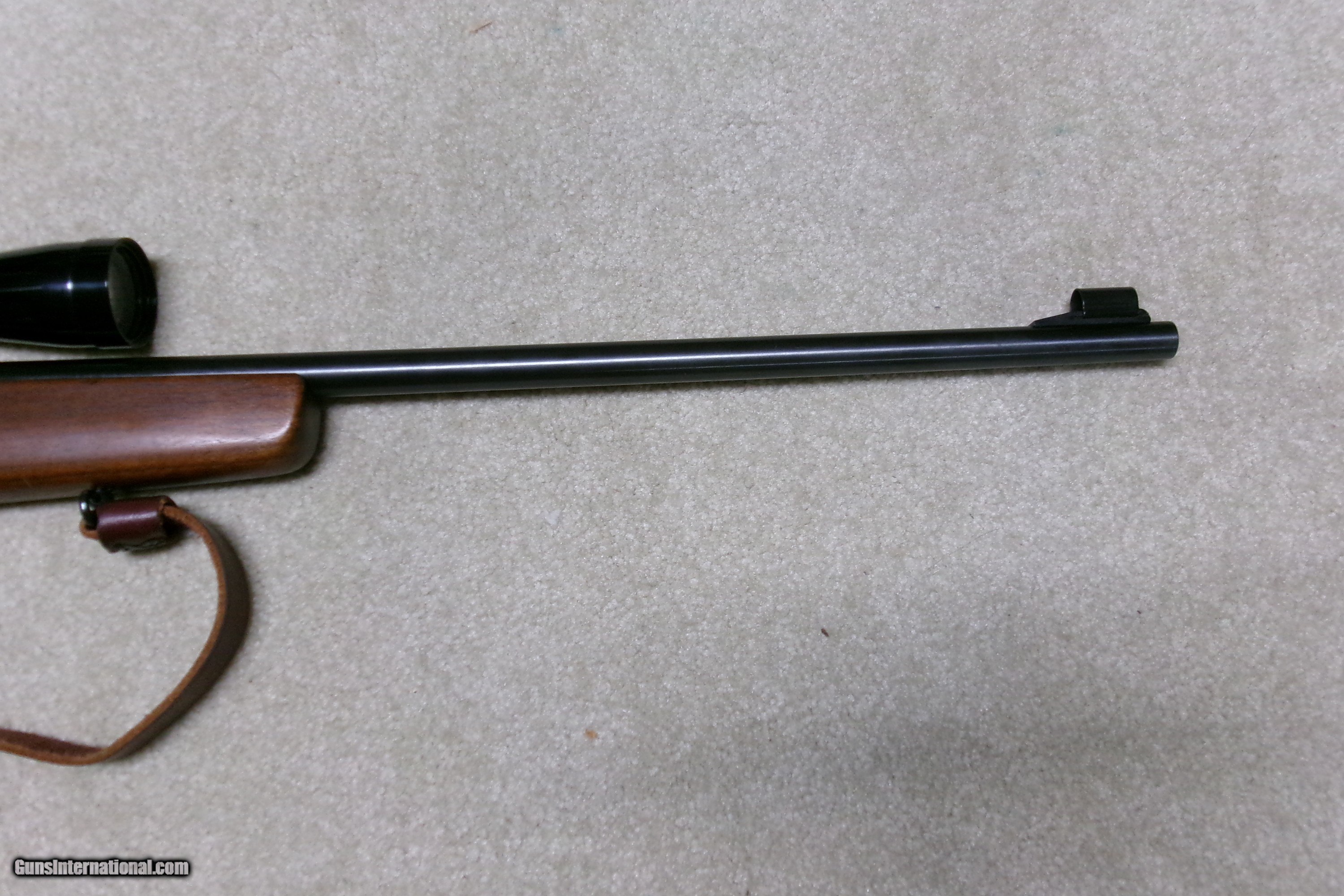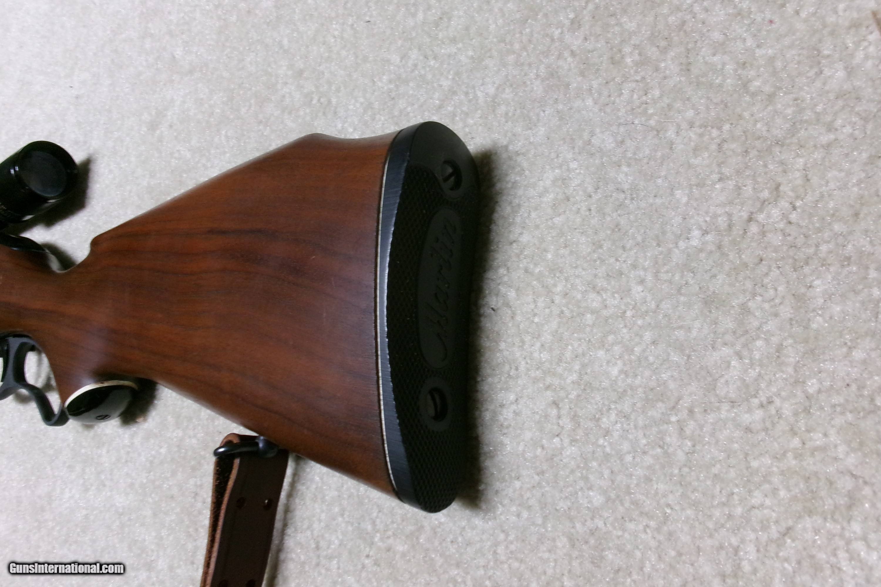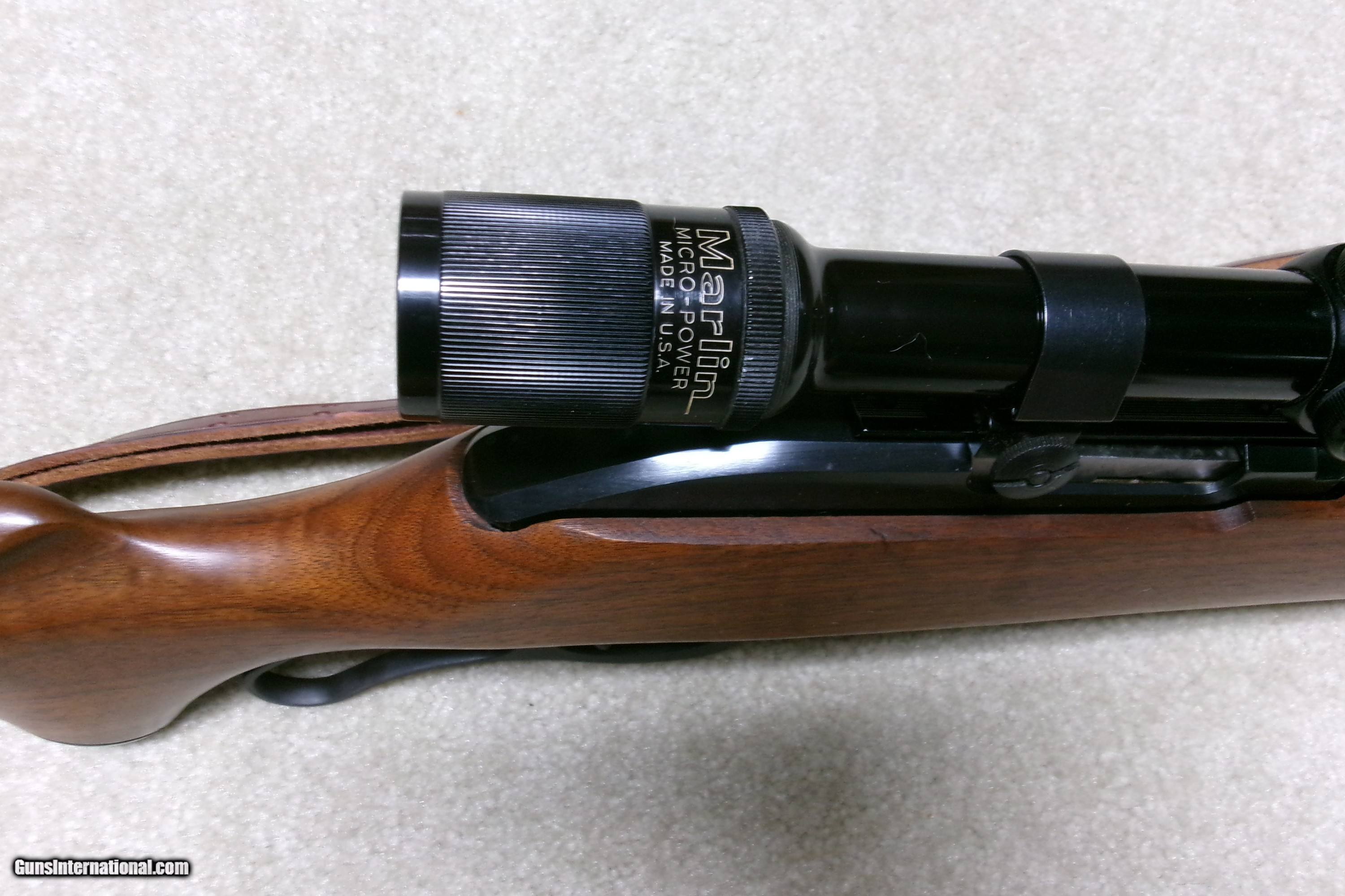 Description: RARE MARLIN MODEL 62, .256 WIN. MAG. CALIBER LEVER RIFLE WITH MARLIN SCOPE, #3XXX. These "modern hammerless" lever rifles were introduced in 1963 and ceased in 1969. With limited numbers made, these are hard to find. This is one of the first I've seen mounted with a "MARLIN MICRO-POWER MADE IN U.S.A." marked 6X scope. Scope has exc. optics. This one appears to have seen little to no use and is in about new condition overall. Has a filler in the rear barrel sight dovetail with no indication of having ever held a sight. Front sight still has the hood. Marlin embossed butt plate. Correct factory sling and swivels. Tight action, bright minty bore. Rarely seen in any condition and especially so with the Marlin scope mounted. SOLD Rifle Caliber: .256 Winchester Magnum |