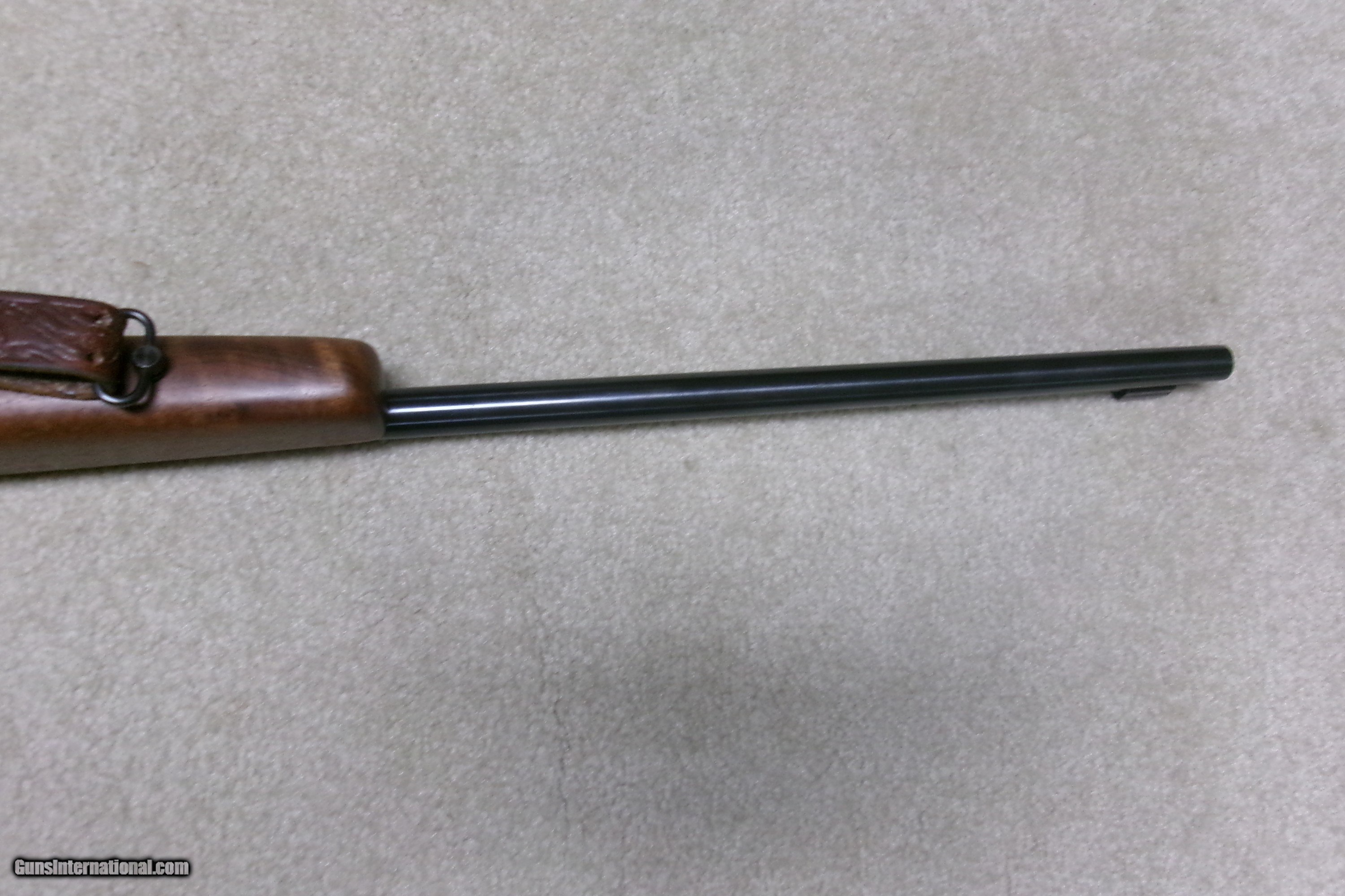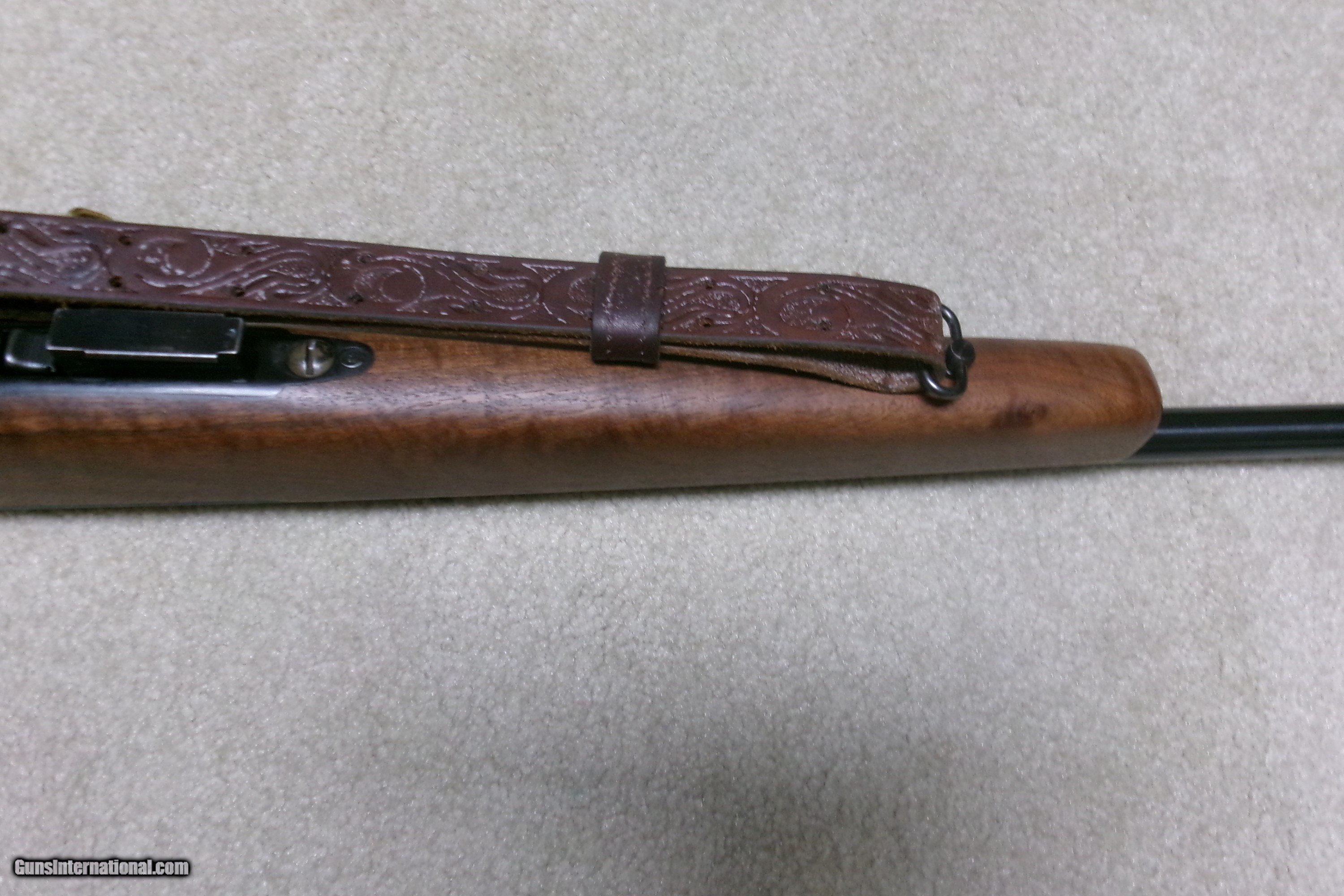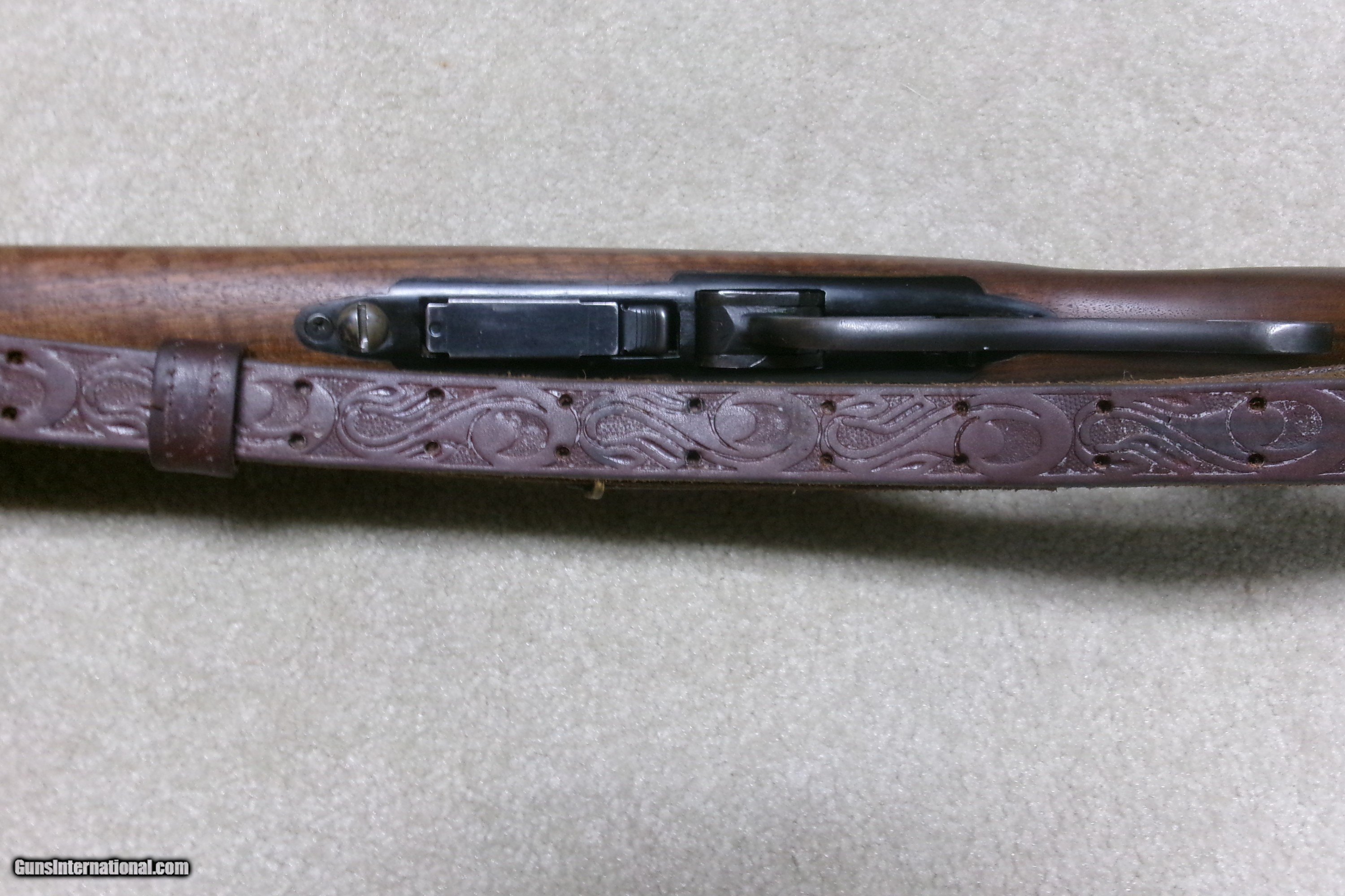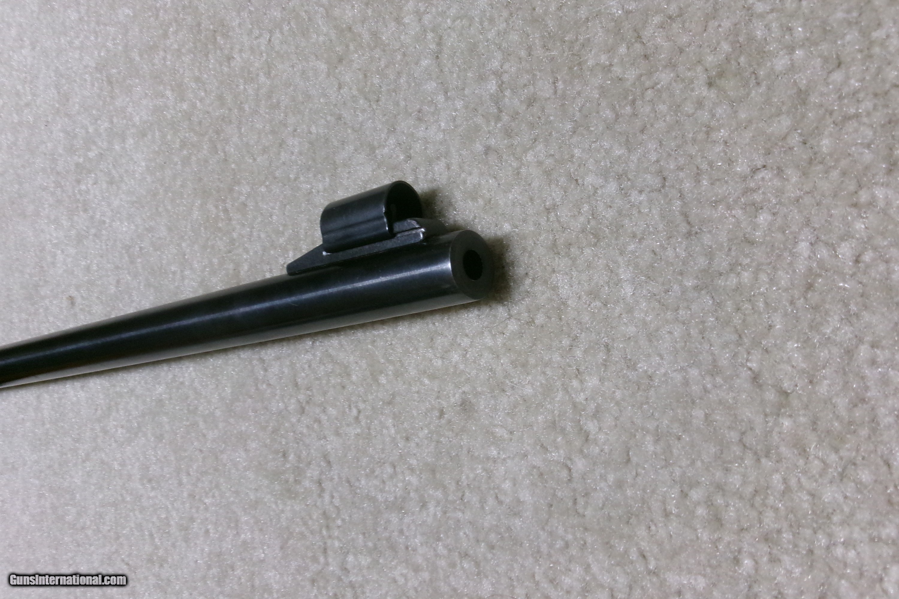 Description: SCARCE MARLIN MODEL 62 LEVER RIFLE IN .256 WIN. MAG., #4XXX. These New Haven, CT made detachable magazine rifles in .256 Win. Mag. were only made from 1963-1969 in caliber .256 and .30 Carbine with only 5960 made in .256 and 7996 made in .30 Carbine. This one is in near new condition retaining about all the blue on the receiver and barrel. Exc. wood, original sights and no extra holes or alterations. This is considered a second model made with sling swivels/sling. Tight action, surprisingly crisp trigger, bright bore. Still even has the hood on the front sight. Original Marlin embossed butt plate butt plate. About as nice as one could hope to find these days. Values on these unusual lever Marlins are rising rapidly. SOLD Curio/Relic: Yes Rifle Caliber: .256 Winchester Magnum Manufacturer: MARLIN Model: MODEL 62 Serial Number: 4XXX Barrel Length: 24 Condition: EXCELLENT Bore Condition: EXCELLENT |