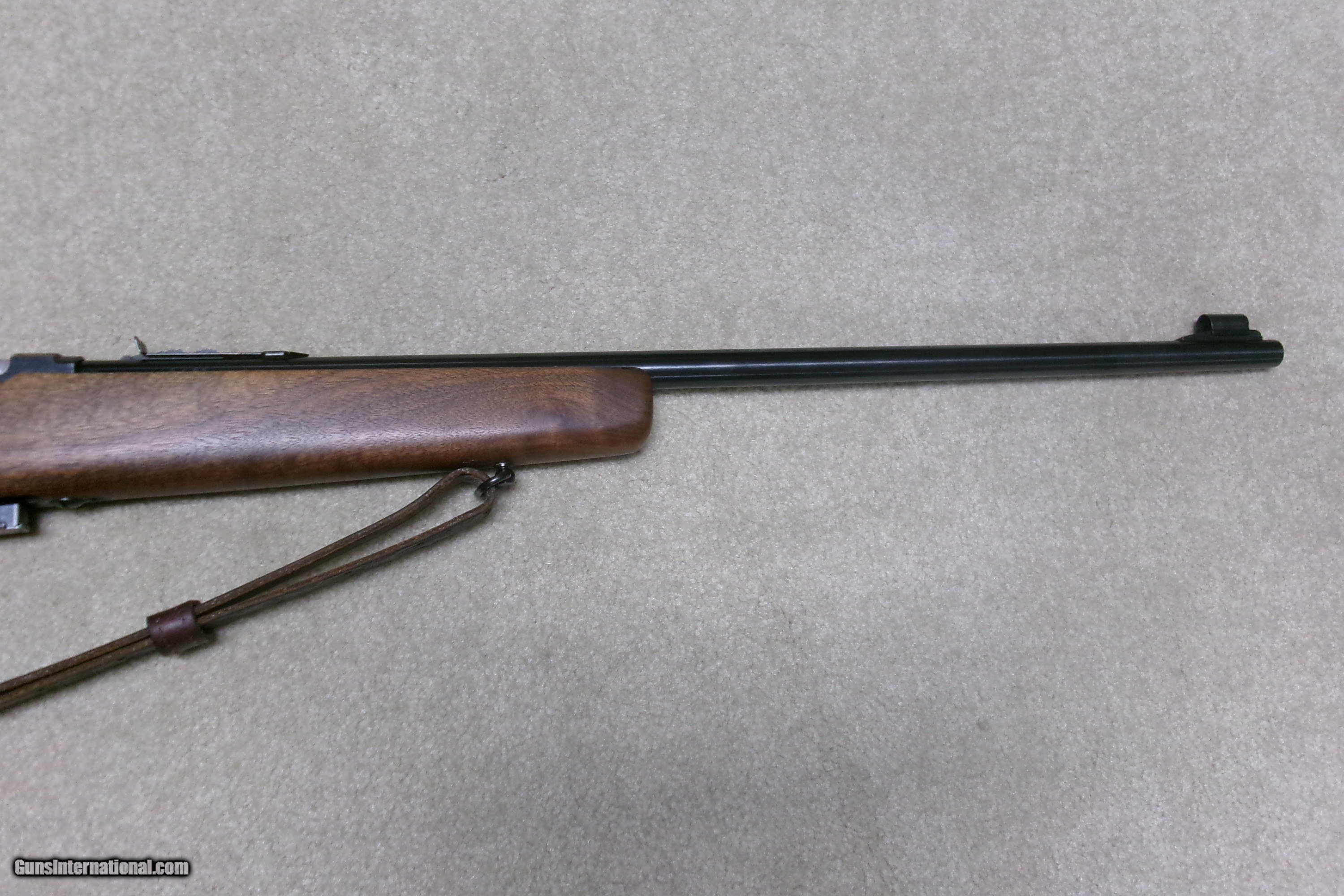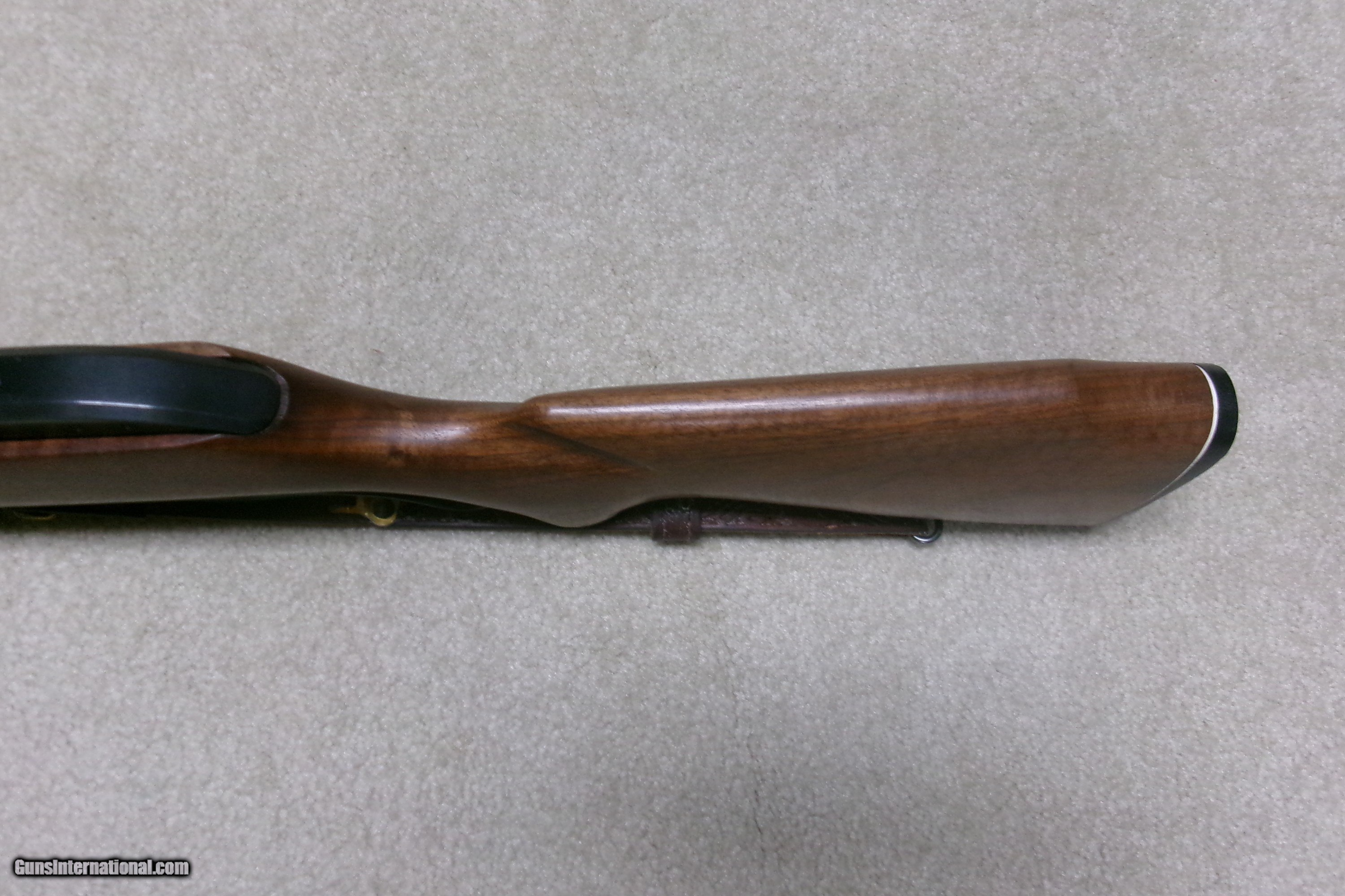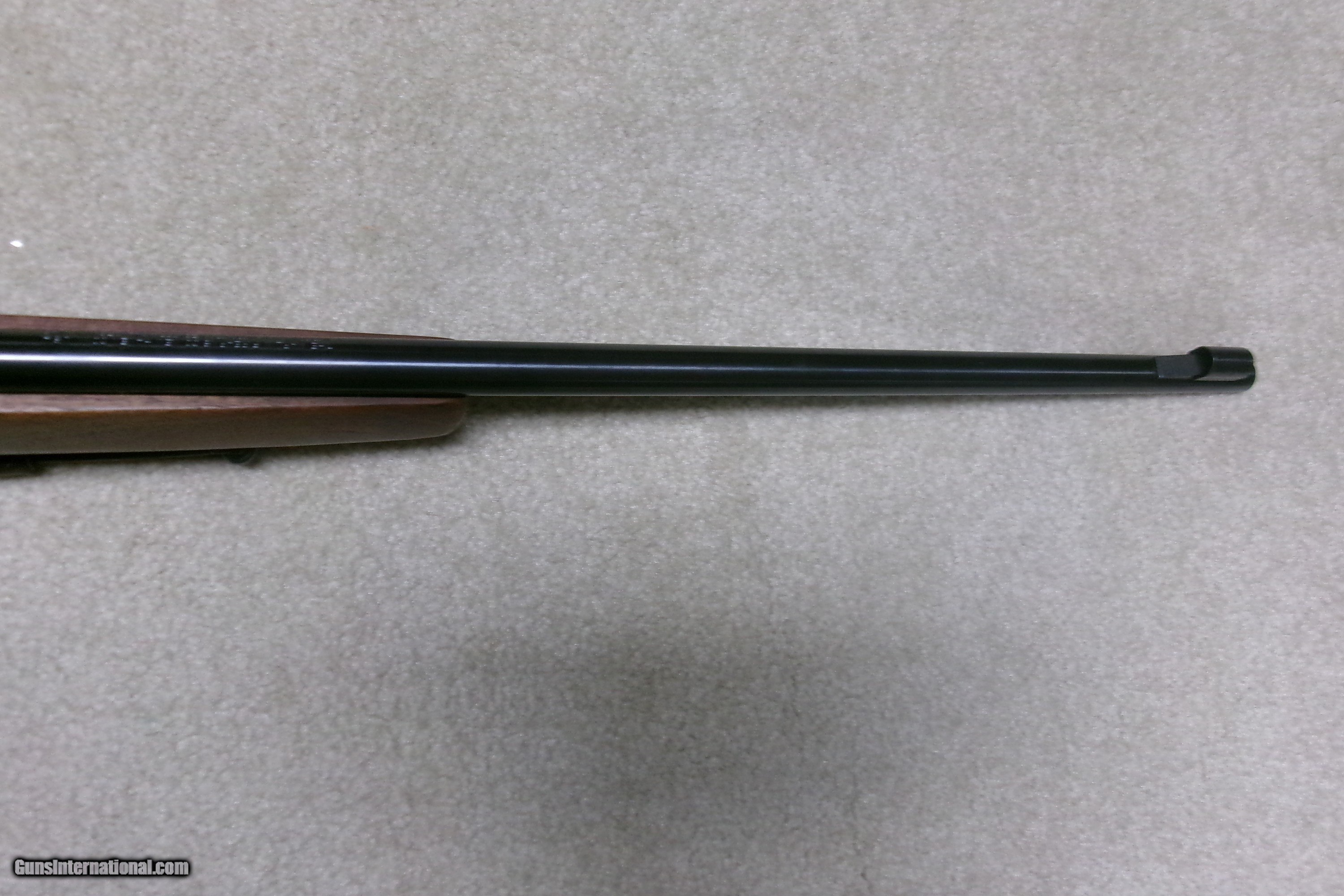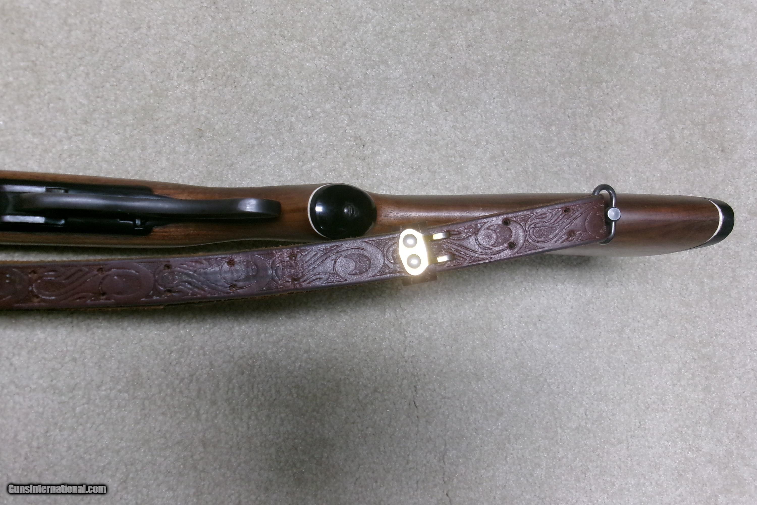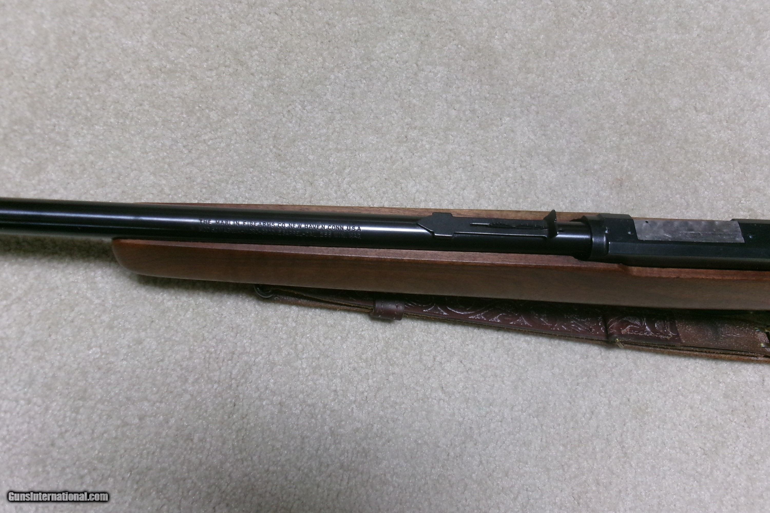 Description: SCARCE MARLIN MODEL 62 LEVER RIFLE IN .256 WIN. MAG., #4XXX. These New Haven, CT made detachable magazine rifles in .256 Win. Mag. were only made from 1963-1969 in caliber .256 and .30 Carbine with only 5960 made in .256 and 7996 made in .30 Carbine. This one is in near new condition retaining about all the blue on the receiver and barrel. Exc. wood, original sights and no extra holes or alterations. This is considered a second model made with sling swivels/sling. Tight action, surprisingly crisp trigger, bright bore. Still even has the hood on the front sight. Original Marlin embossed butt plate butt plate. About as nice as one could hope to find these days. Values on these unusual lever Marlins are rising rapidly. SOLD Curio/Relic: Yes Rifle Caliber: .256 Winchester Magnum Manufacturer: MARLIN Model: MODEL 62 Serial Number: 4XXX Barrel Length: 24 Condition: EXCELLENT Bore Condition: EXCELLENT |