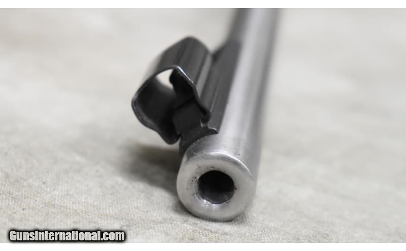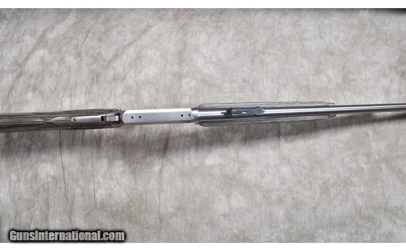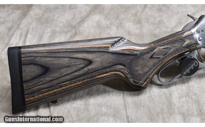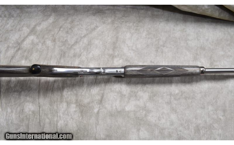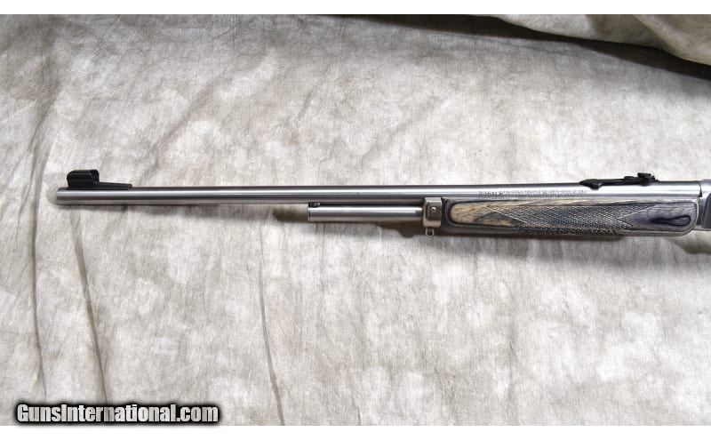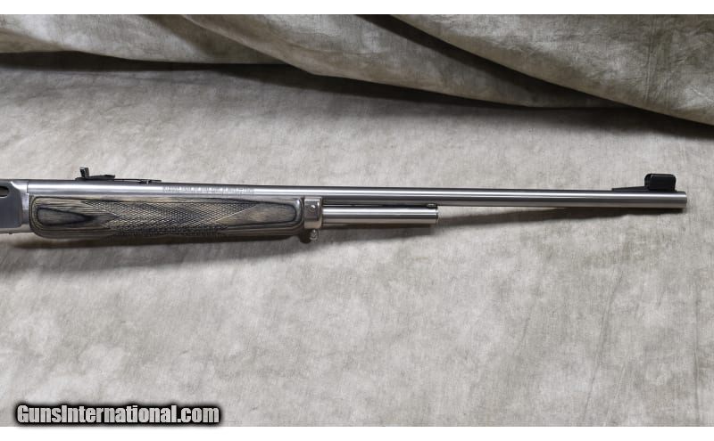 Description: Nice stainless steel lever action rifle in .30-30 Winchester and brushed finish. It has a laminated hardwood stock and fore end. This one is the half-mag version with a cross-bolt safety. .30-30 Winchester SOLD Chambers: 5-rounds Metal Condition: Excellent. Wood Condition: Excellent. Bore Condition: Shiny and bright with good rifling. Barrels: 24-inch Triggers: Factory trigger. Stock Dimensions: 13-1/2 inch LOP. Fore End: Matching grey laminated hardwood. Butt Pad: Soft rubber. Weight: 7 lb - 5 oz Sights: Hooded bead and folding leaf 'iron' sights. Drilled and tapped for scope. Item Location: Rogers |