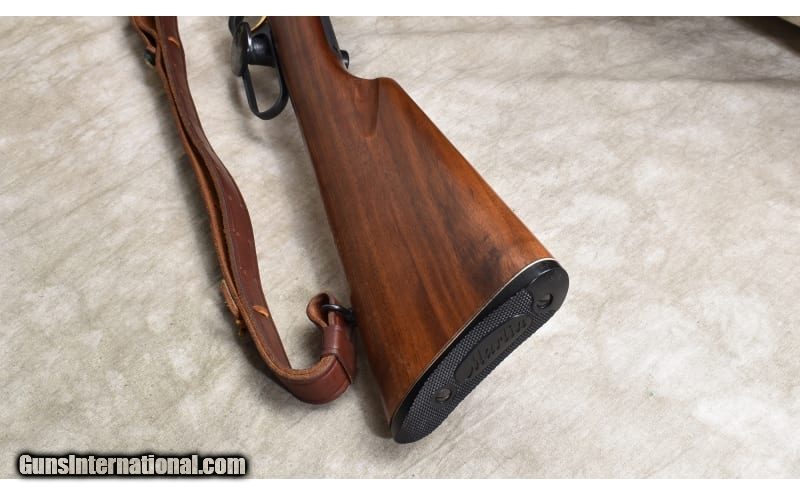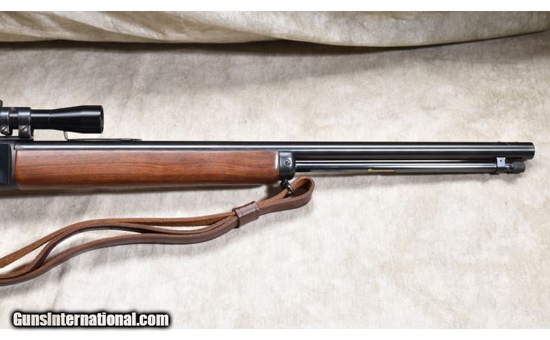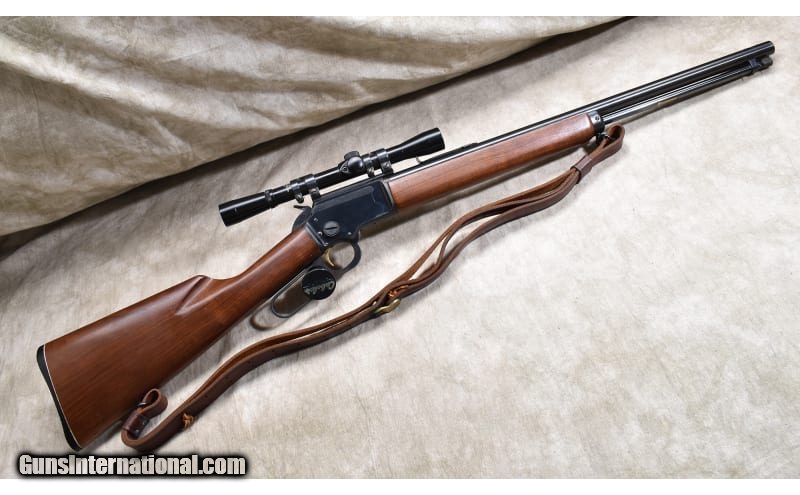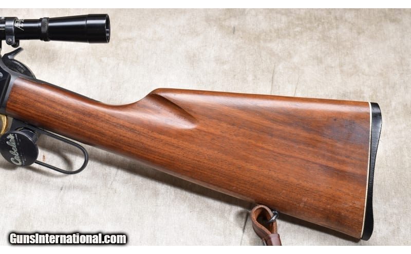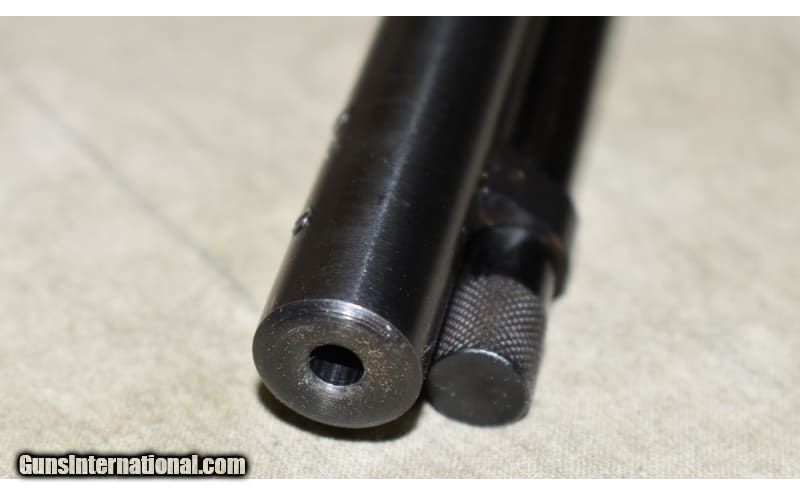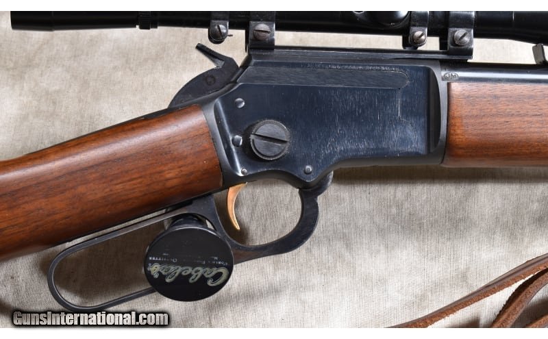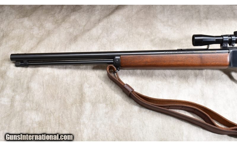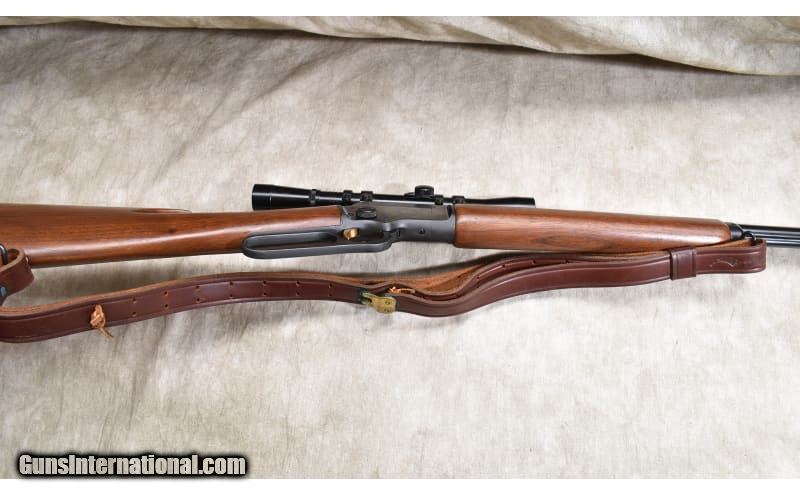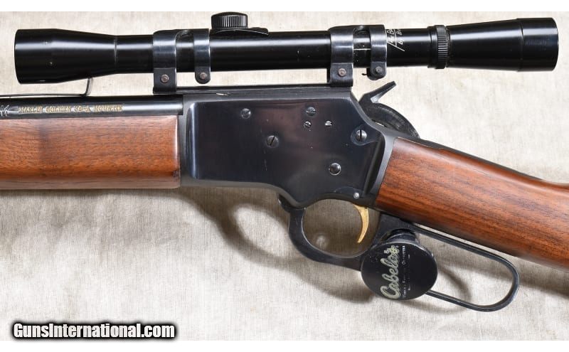 Description: This itty bitty lever gun features takedown frame, gold-colored trigger, and scope. It is in very good condition and doesn't appear to have been shot much. .22 Short/Long/Long Rifle SOLD Chambers: 15 rounds (Long Rifle) Metal Condition: Very good. Wood Condition: Very good. Bore Condition: Shiny and bright with good rifling. Barrels: 20-inch Triggers: Factory trigger. Stock Dimensions: 13-1/4 inch LOP. Fore End: Well-matched walnut. Butt Pad: Black plate. Weight: 6 lb - 12 oz. incl scope Sights: "Drilled and tapped for open sights (removed to accommodate scope), Drilled and tapped for scope and outfitted with a Bushnell Banner22 scope. Item Location: Rogers |