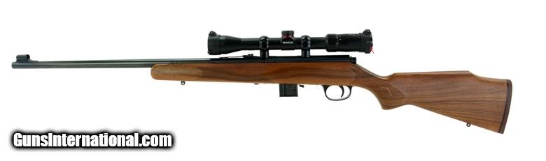 Marlin 882 .22 WMR caliber rifle. Magnum bolt action rifle with Walnut stock and Simmons 3x9 scope. Excellent condition.