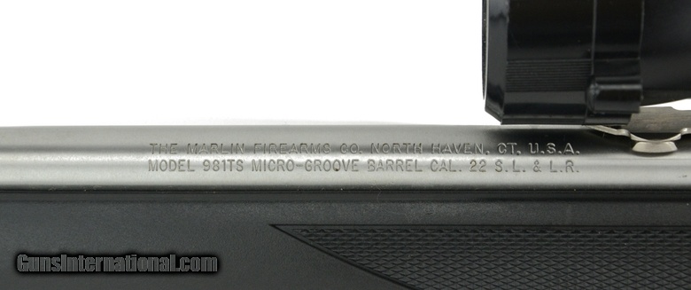 Description: Marlin 981TS .22 S,L,LR caliber rifle. Stainless/synthetic bolt action repeater with scope. Excellent condition.