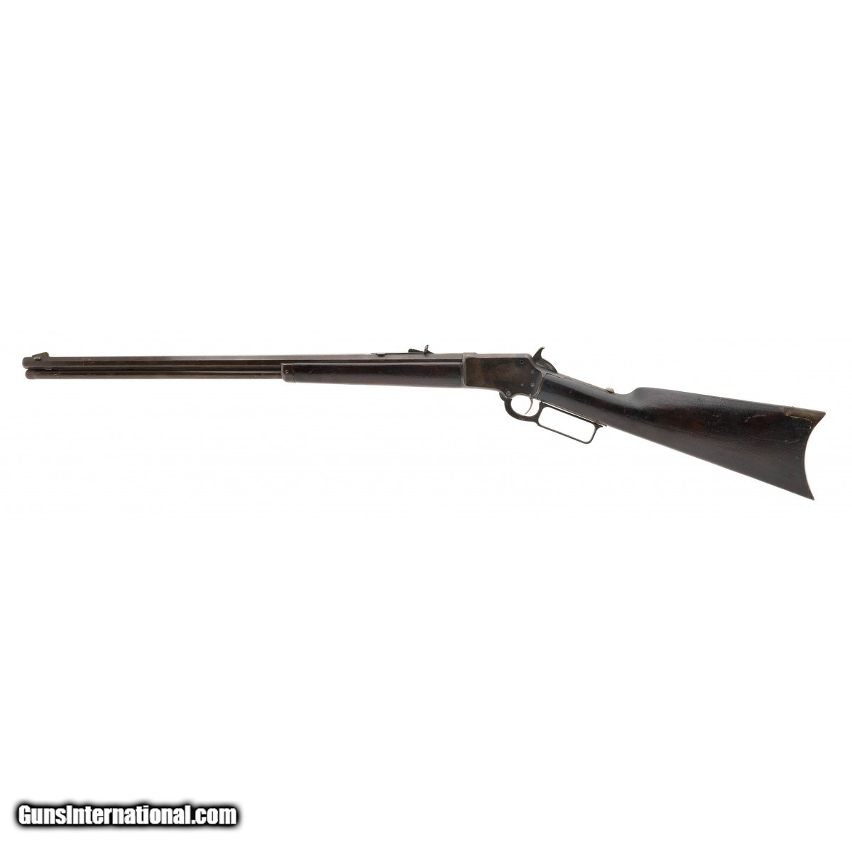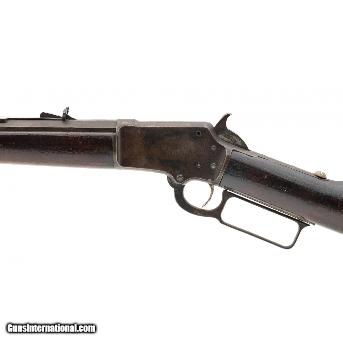 SN:92361. Second variation manufactured in 1894. Top of receiver is marked ""Marlin Safety"". Barrel is 24"". Bore has strong rifling with a couple minor pits. Tang has a replacement screw. Stock has a decal of an American Eagle in flight. Metal has a brown patina. All markings are visible. Fair overall condition.