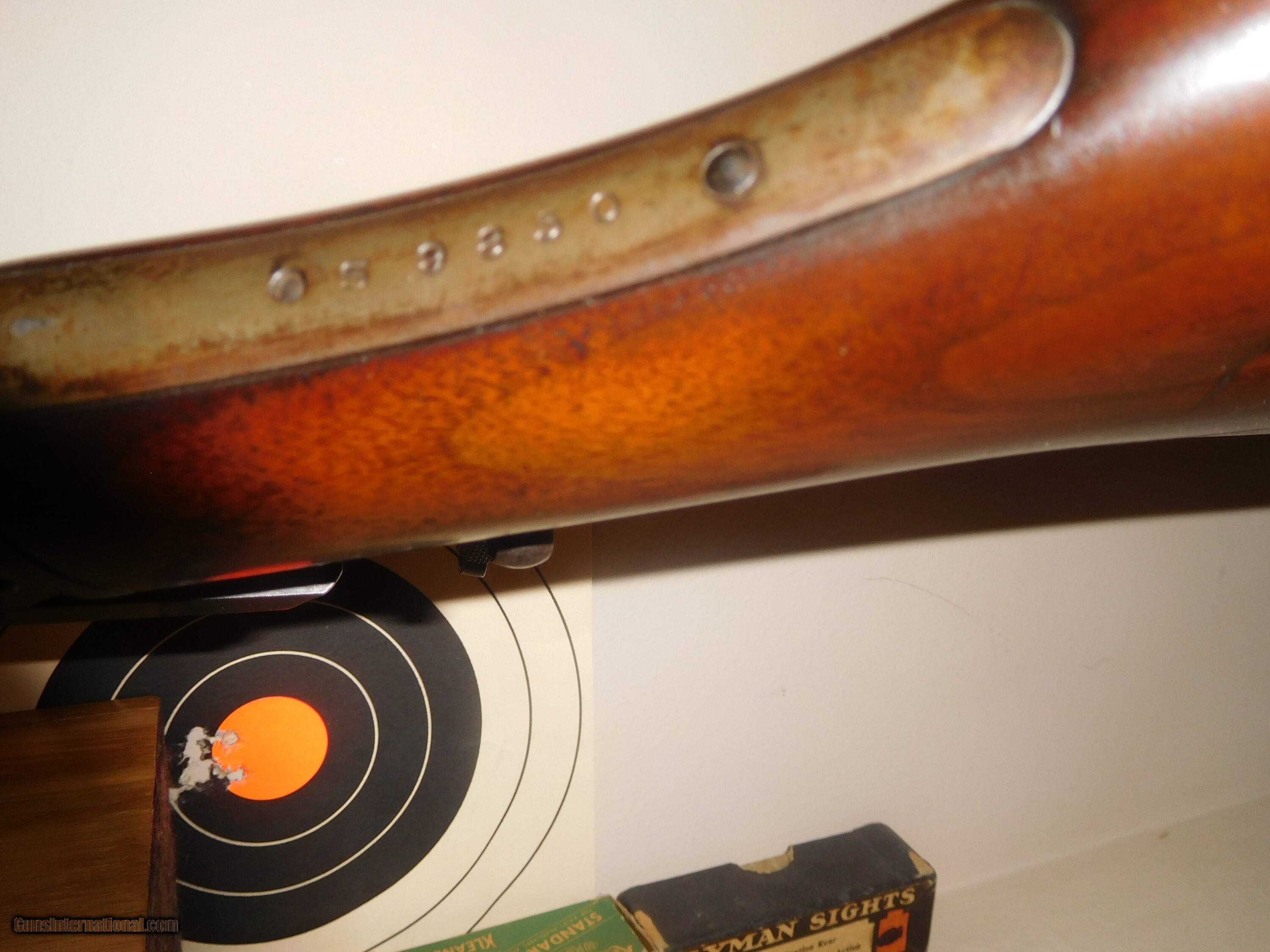 Description: ************ RARE FIND FOR A MODEL 39 MARLIN STAR RIFLE. THESE RIFLES WERE IDENTIFIED AS BEING EXCEPTIONAL *********** THIS IS A RARE FIND FOR A MODEL 39 MARLIN STAR RIFLE. THESE RIFLES WERE IDENTIFIED AS BEING GUNS AND WERE EXCEPTIONAL GUNS AND MARKED WITH A STAR ON THE END OF THE UPPER TANG. THESE GUNS WERE CONSIDERED TO BE HIGH GRADE AND WERE SO MARKED. THIS GUN IS ALSO EQUIPPED WITH A TANG SIGHT MID AND FRONT SIGHT HAS BEEN RE ADDED (FOR BETTER SIGHTING).PLEASE VIEW MY PHOTOS) BEFORE YOU PURCHASE .FEEL FREE TO CONTACT ME FOR ANY QUESTIONS. THE BORE IS NEAR MINT. AS FOR THE WOOD HAS VERY LITTLE HANDLING MARKS AND IS CLOSE TO BEING IN MINT CONDITION! AS IS THE ORIGINAL BUTT PLATE (PLASTIC). SCREW HEADS ARE MINT AS WELL. THE 24 INCH AND BARREL AND LOADING ROD HAS ABOUT HAVE ABOUT 70 TO 80 % BLUING REMAINING AND SHOWS UP WELL. IT APPEARS THAT THE RECEIVER HAS SOME REMNANTS OF CASE COLORS 20 % ? YOU SELDOM SEE RARE 39s IN THIS CONDITION . MY ASKING PRICE IS $1,885.00 I WILL PAY FOR S & H WITH IN THE LOWER 48 STATES INSURANCE IS UP TO THE BUYER . DON'T PASS THIS ONE UP FFL REQUARED Curio/Relic: Yes Rifle Caliber: .22 Long Rifle, .22 Short, .22 Long Manufacturer: MARLIN Model: MODLE 39 STAR Serial Number: S 9850 Barrel Length: 24 INCHES Bore Info: HAS A GREAT BORE / EXCELLENT - Chambers: 1 Condition: EXCELLENT Metal Condition: EXCELLENT Wood Condition: NEAR MINT Bore Condition: NEAR MINT Barrels: 1 Barrel Type: OCTAGON Action: LEAVER ACTION Triggers: 1 Stock: WALNUT EXCELLENT Stock Dimensions: 14 INCHES LONG Fore End: WALNUT Butt Pad: PLASTIC ORIGINAL LOP: 13 1/2 Finish: blue Weight: 10 LBS Sights: 3 FRONT, MED, TANG Optic: SCOPE Price: $1,885.00 Buy Now Contact Seller |