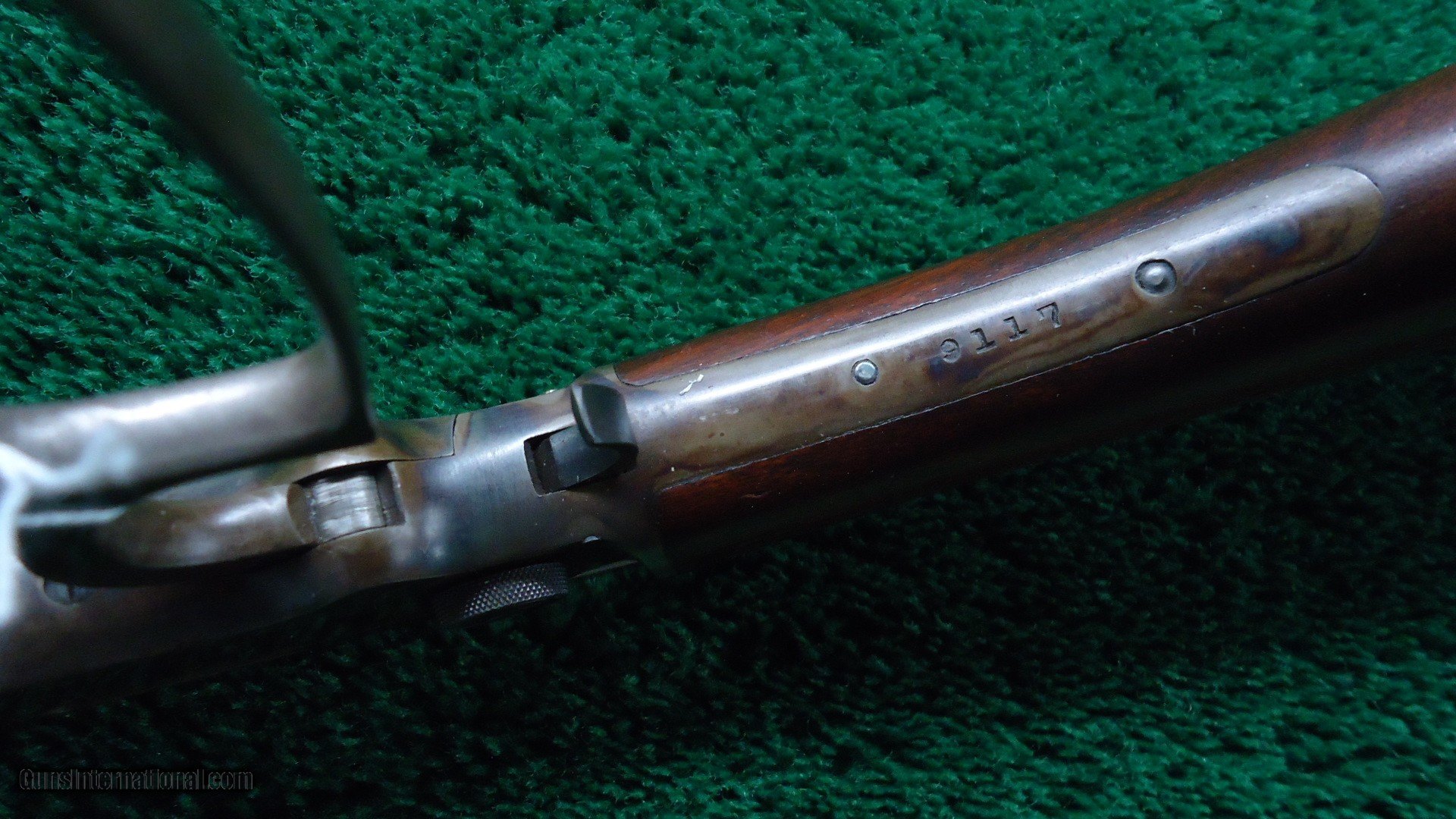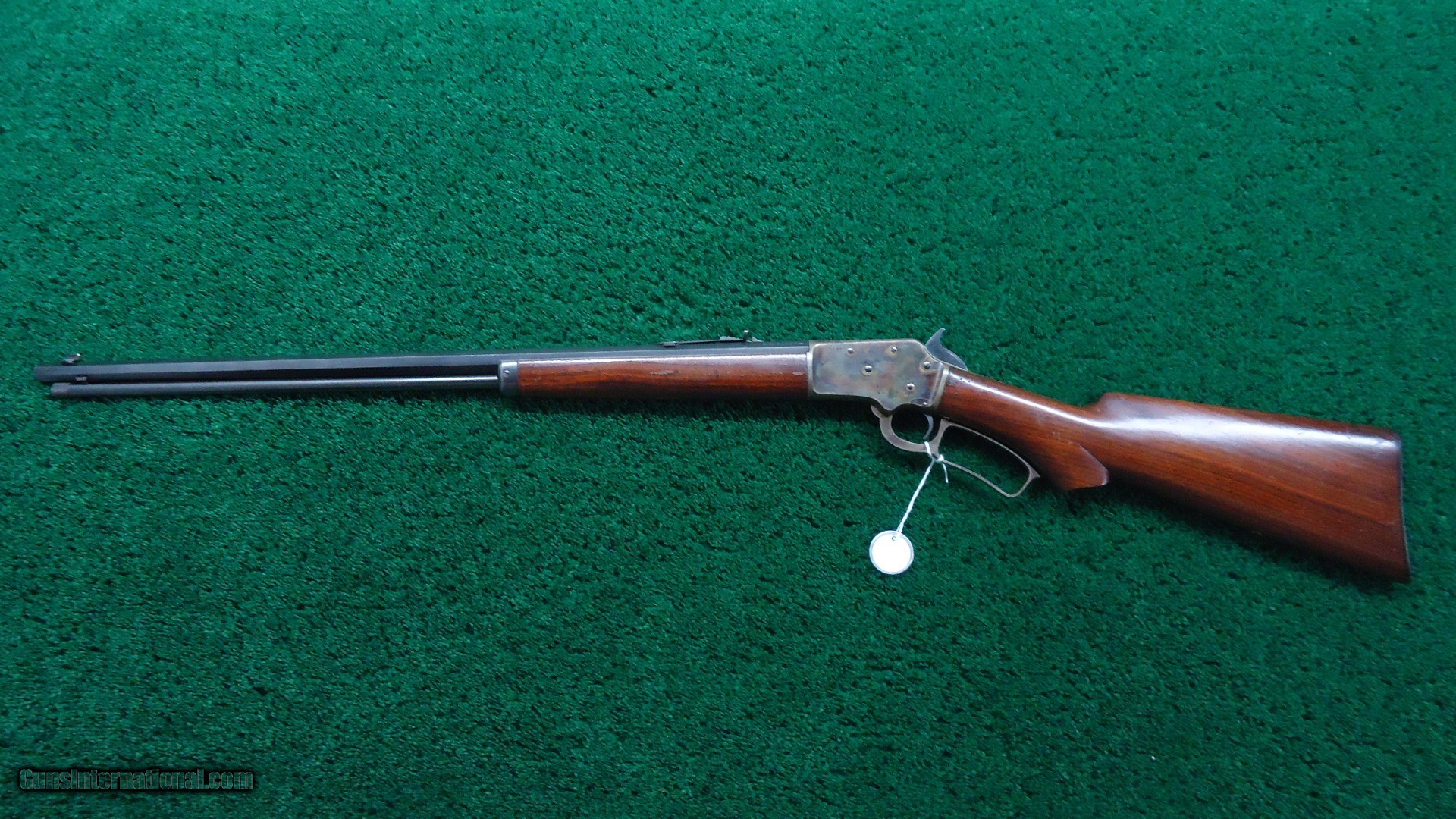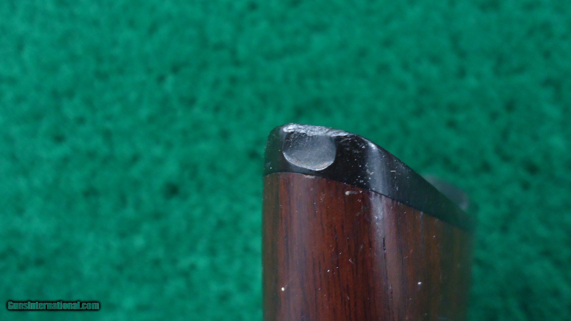 Description: Most all original blue remains on the 24 inch octagon barrel chambered in .22 caliber with full length magazine tube. Bore is bright and shiny with good rifling. Open sights include a beaded blade front and and a sporting rear, Case colored frame and lever retain most bright color. Strong blue on the hammer and forend cap. Very good condition plain walnut pistol gripped stock and checkered hard rubber buttplate. Crisp tight action. Very nice early 9k serial number Marlin Model 39. These were made from 1922-1938. Leroy Merz Antique Firearms specializes in antique and vintage Winchesters and other fine American firearms. Since 1965 Mr. Merz has taken part in the world of firearms and has been a contributor to many well known reference books. We have hundreds of additional guns in every price range at our home online. Search for Merz Antiques in google. SOLD Curio/Relic: Yes Rifle Caliber: .22 Long Rifle |