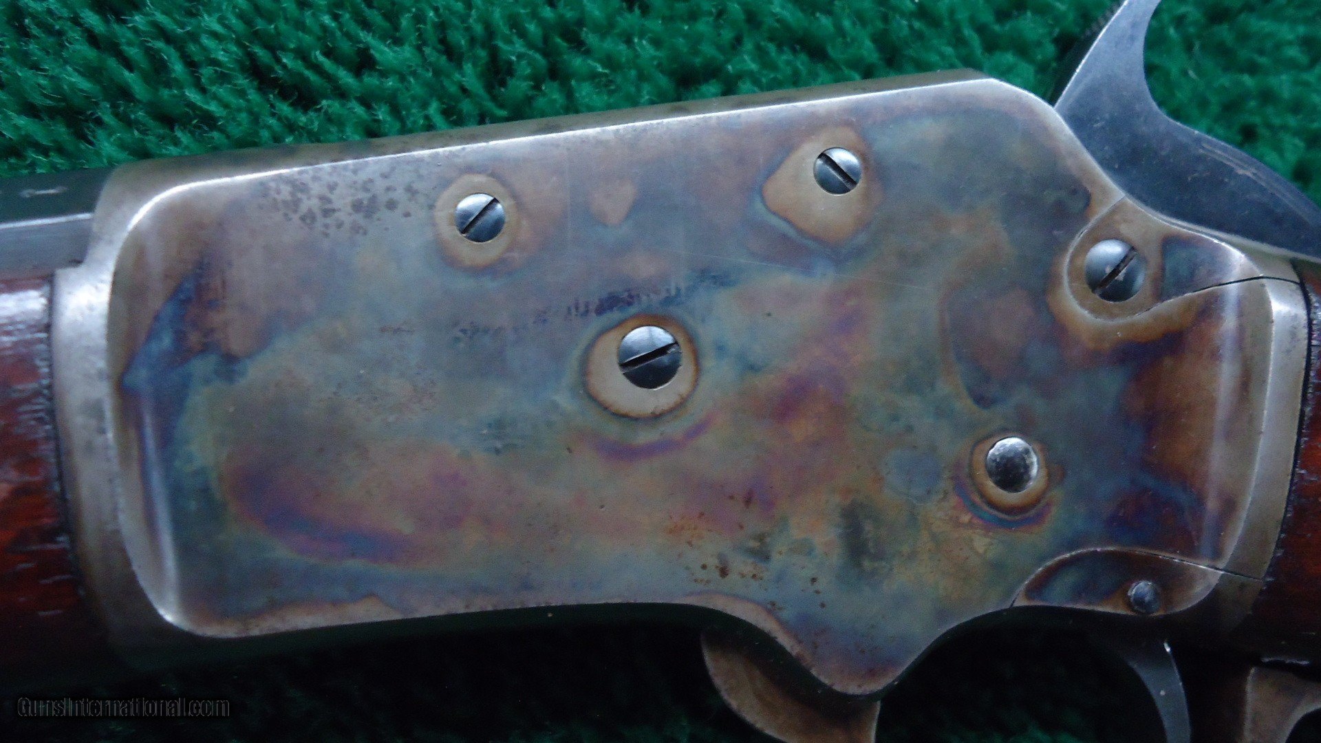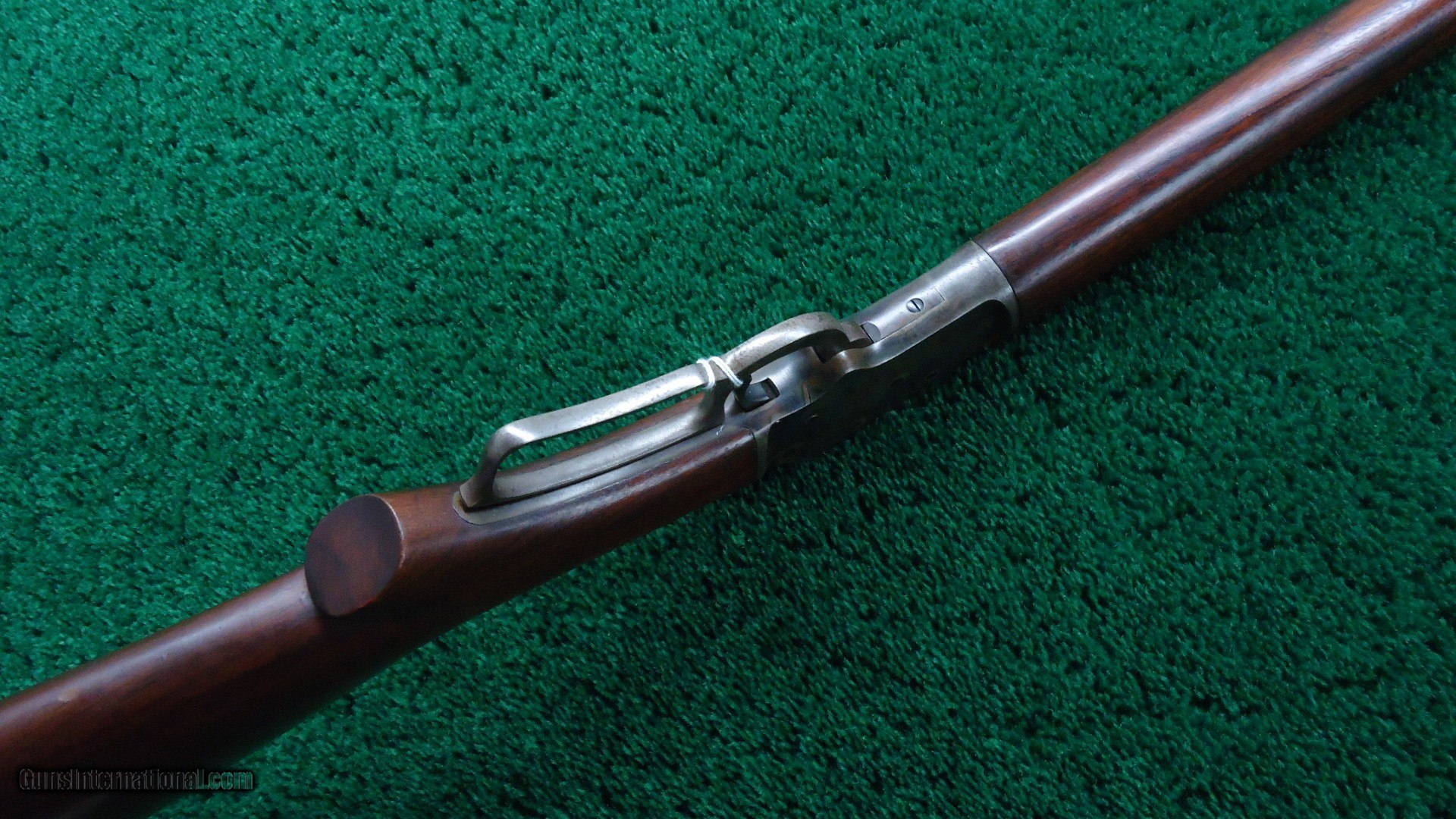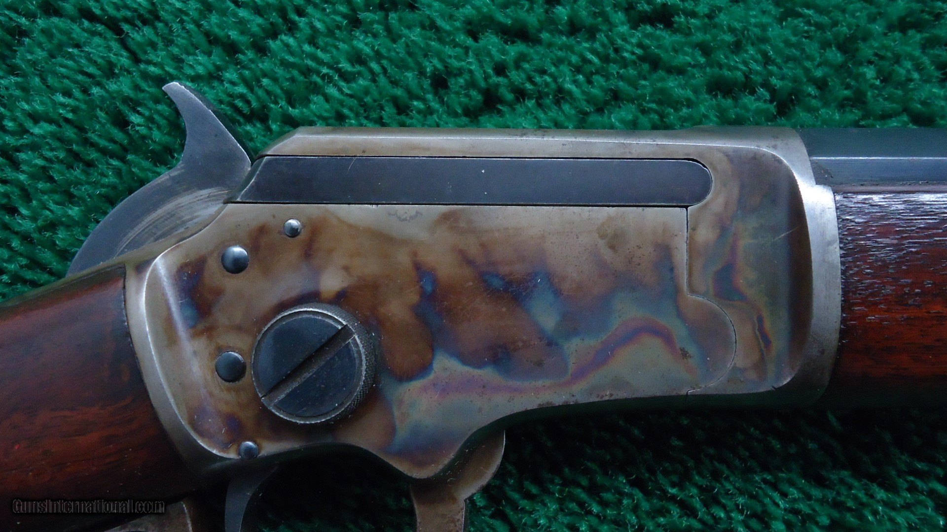 Description: Most all original blue remains on the 24 inch octagon barrel chambered in .22 caliber with full length magazine tube. Bore is bright and shiny with good rifling. Open sights include a beaded blade front and and a sporting rear, Case colored frame and lever retain most bright color. Strong blue on the hammer and forend cap. Very good condition plain walnut pistol gripped stock and checkered hard rubber buttplate. Crisp tight action. Very nice early 9k serial number Marlin Model 39. These were made from 1922-1938. Leroy Merz Antique Firearms specializes in antique and vintage Winchesters and other fine American firearms. Since 1965 Mr. Merz has taken part in the world of firearms and has been a contributor to many well known reference books. We have hundreds of additional guns in every price range at our home online. Search for Merz Antiques in google. SOLD Curio/Relic: Yes Rifle Caliber: .22 Long Rifle |
