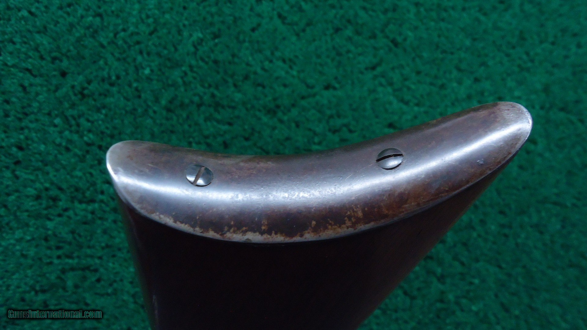 Description: 24 inch octagon barrel with full magazine. Mostly bright very good bore showing some scattered light roughness with strong rifling throughout. Barrel and magazine tube retain about 70% original blue with the balance thinning and toning to a mild gray-brown patina. The action retains about 40% original bright blue with the balance a nice plum-brown patina. Plain walnut stocks in very good plus condition as lightly refinished long ago showing some scattered light handling marks and metal-to-wood fit quite nice. Steel rifle buttplate. Original sporting sights with elevator missing. Leroy Merz Antique Firearms specializes in antique and vintage Winchesters and other fine American firearms. Since 1965 Mr. Merz has taken part in the world of firearms and has been a contributor to many well known reference books. We have hundreds of additional guns in every price range at our home online. Search for Merz Antiques in google. SOLD Antique: Yes Rifle Caliber: .32 RF |