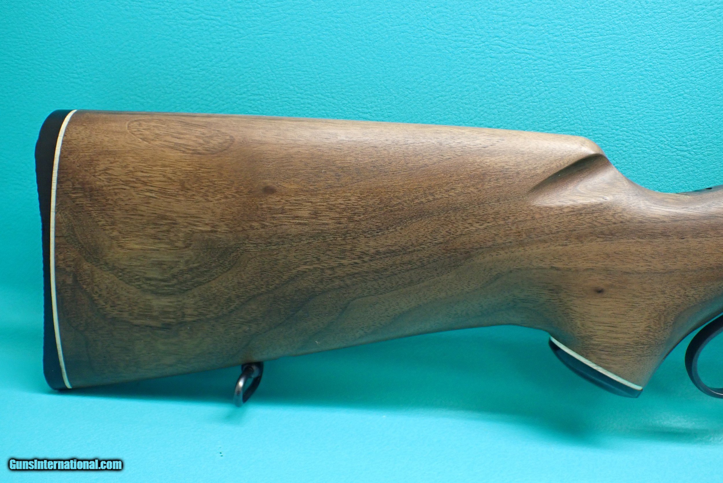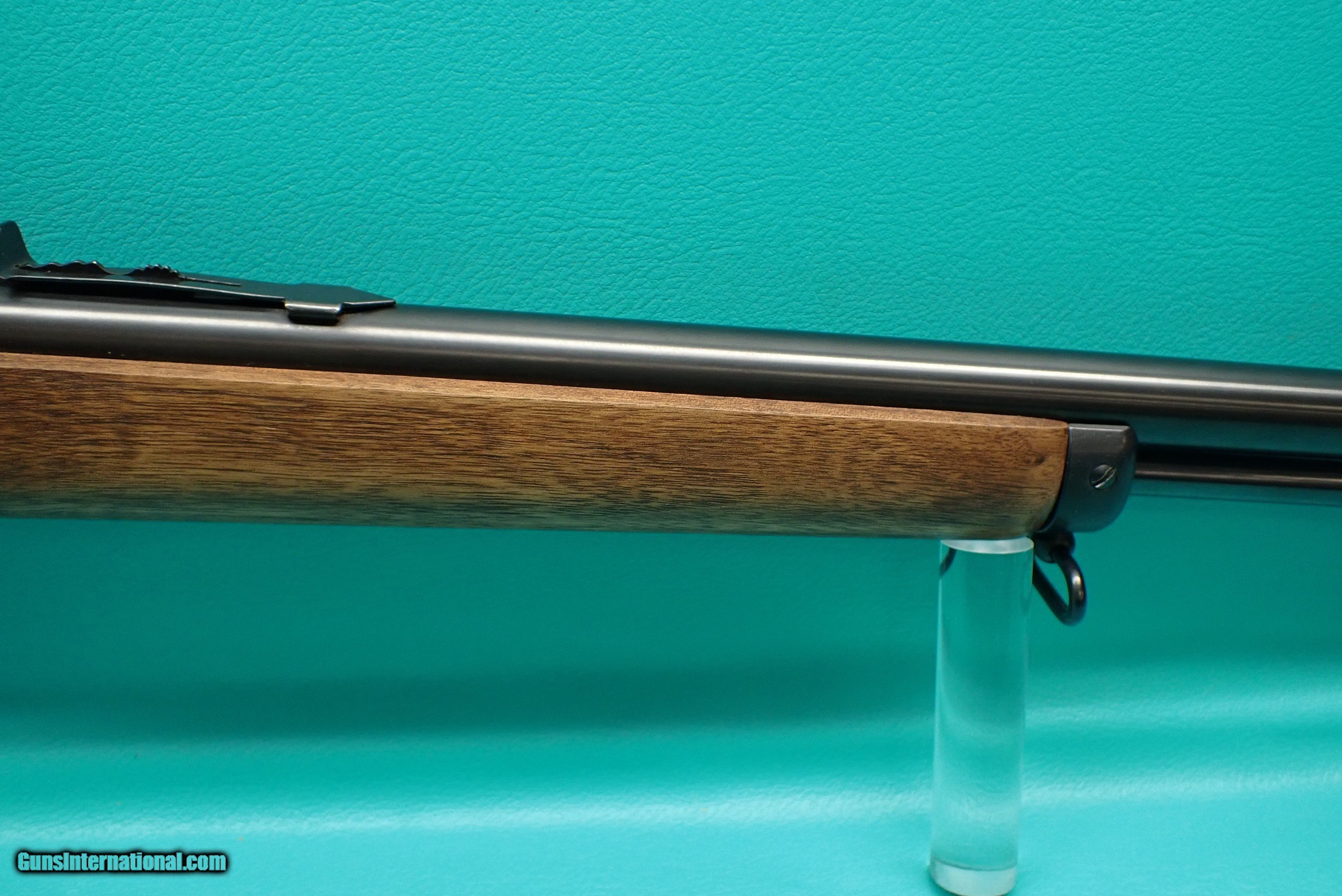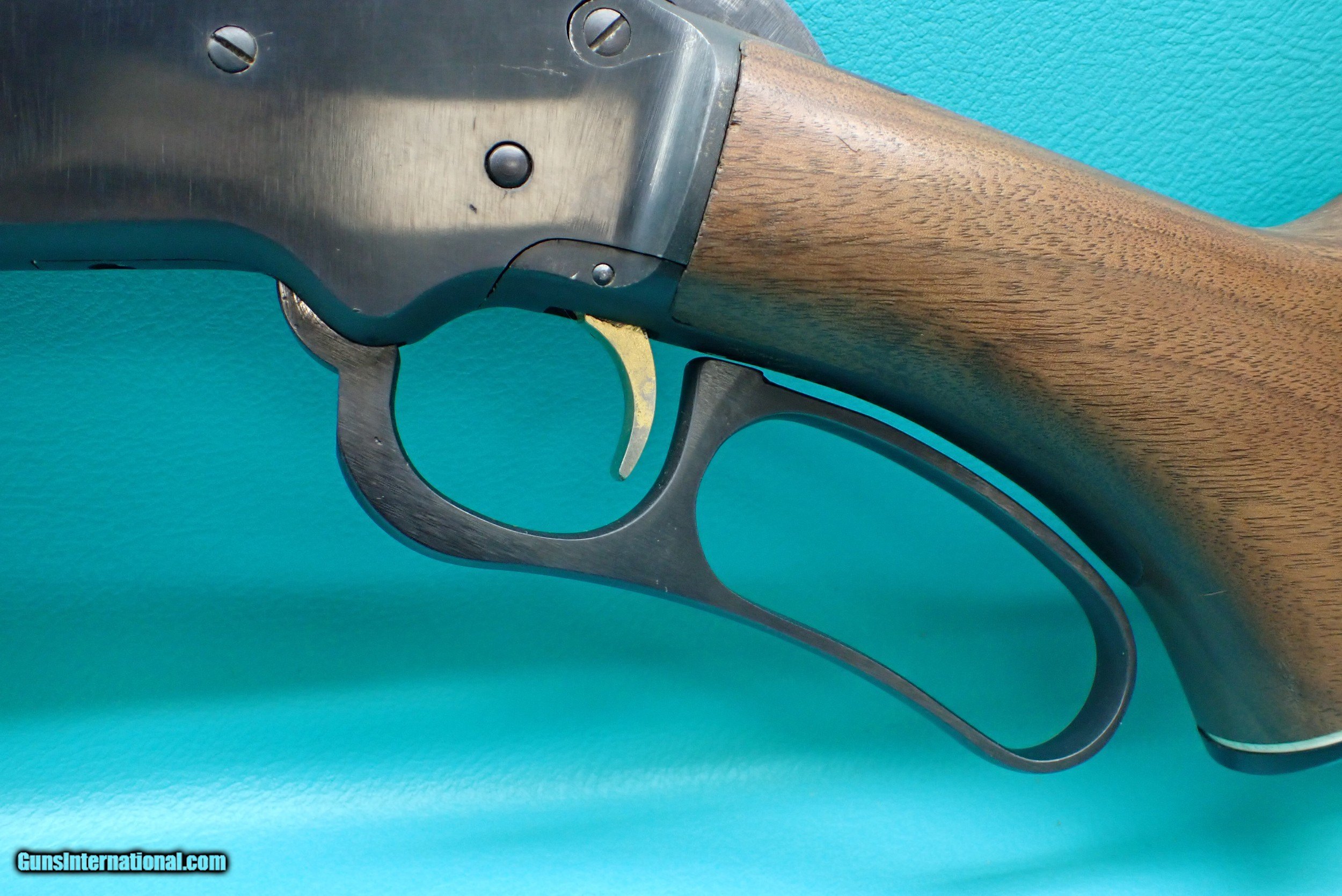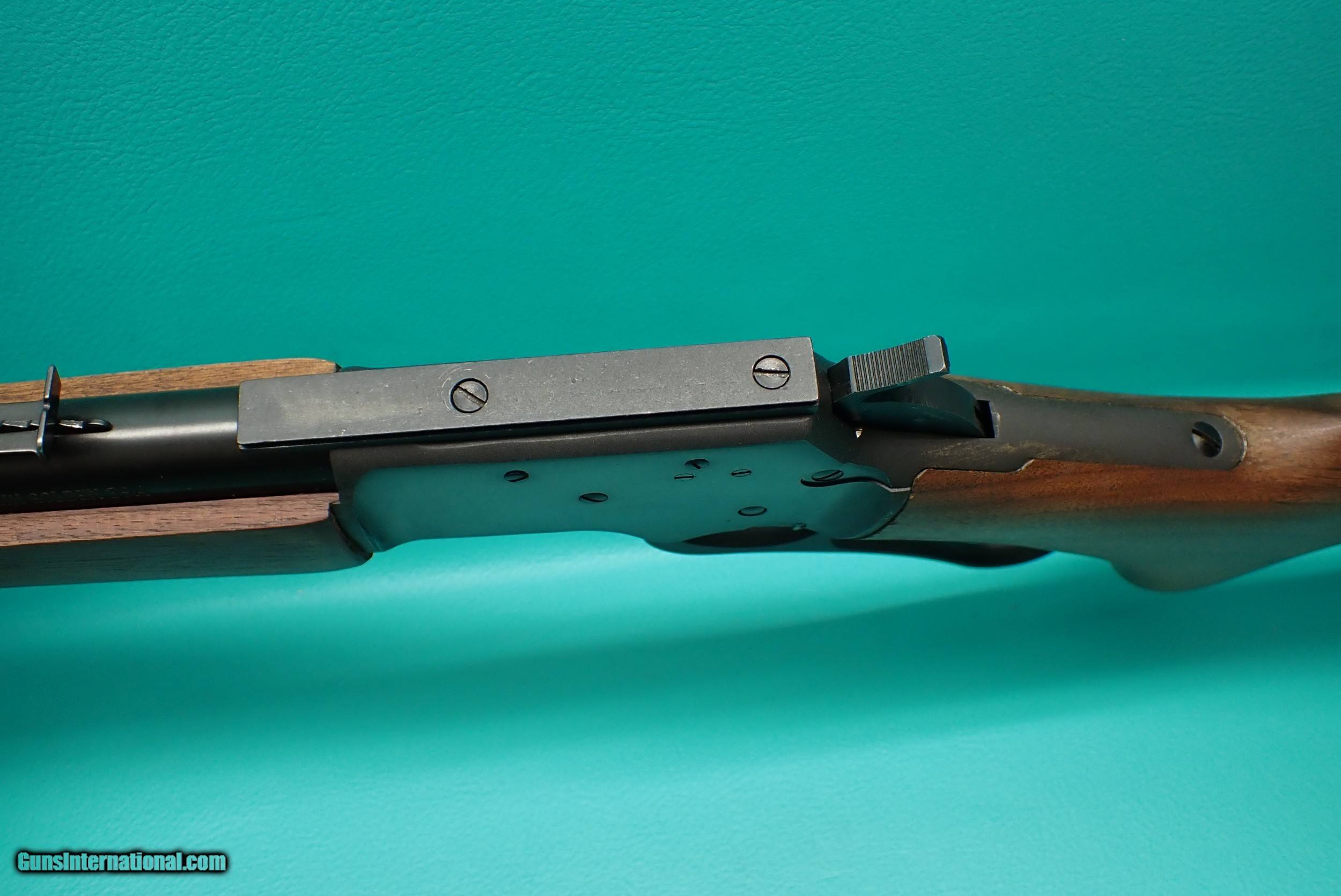 Description: ***SOLD***Marlin Golden 39A .22LR/L/S lever action rifle, dated to 1966. This rifle features the famous Model 39A tube-fed lever action mechanism with a rich blued finish, oil finished walnut stock and forend, and a gold trigger. The rifle has a simple takedown features via the thumb screw on the receiver. The rifle is in great working order with a fully functional action mechanism, a brilliant bore, and only minor finish scuffs seen in high contact areas. The stock bullseye inlay is missing, as shown (a common features of these older 39A's). Please refer to the photos for overall condition. A wonderful collectible shooter! C&R OK. Shipping $50.00 / UPS***SOLD*** SOLD Rifle Caliber: .22 Long Rifle Manufacturer: Marlin Model: 39A Serial Number: AB8825 |