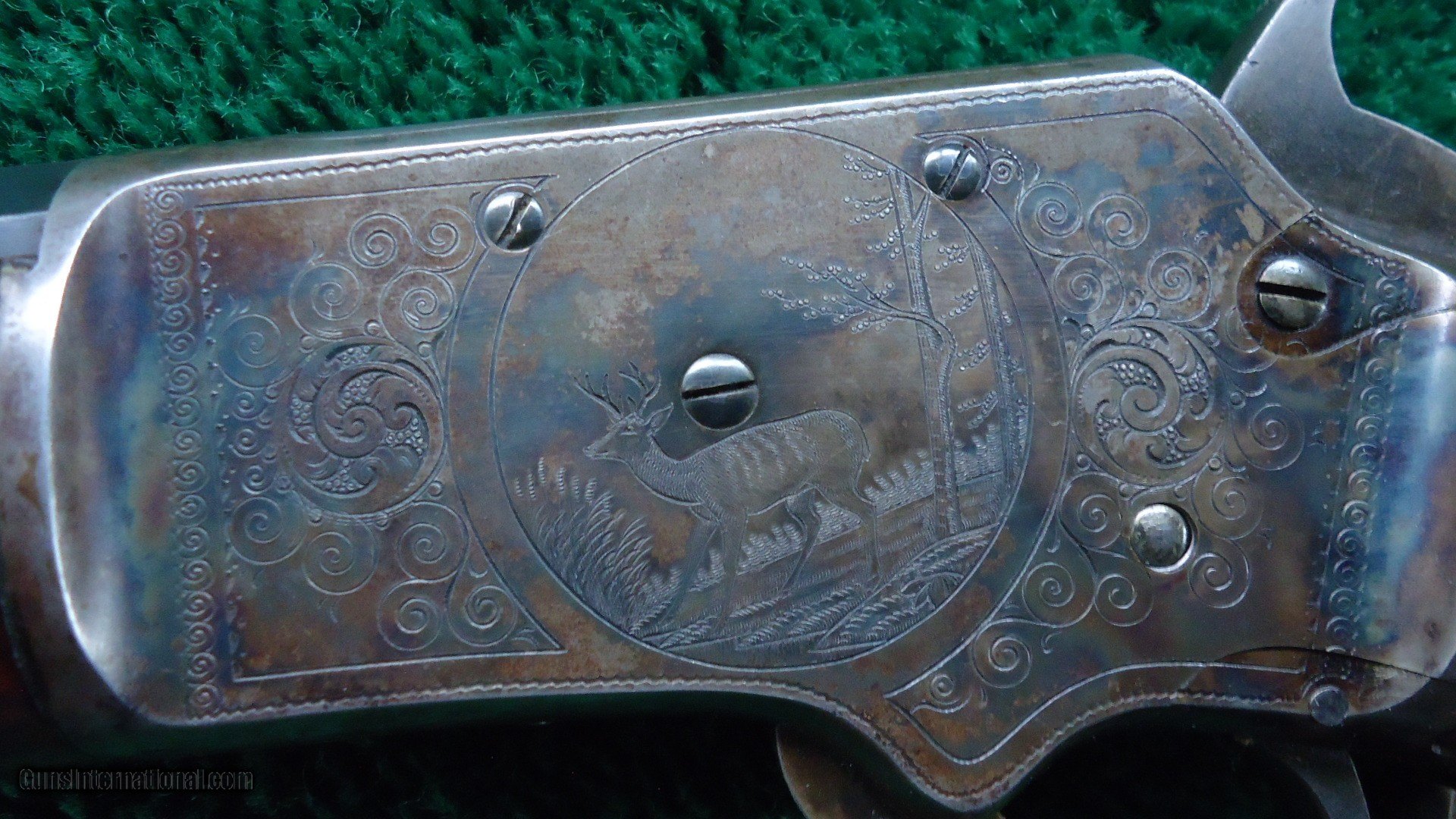 Description: Special order 28 inch octagon barrel. Excellent bore. Sights include a gold gilded flip up front sight, typical Marlin rear sight and a folding tang sight. Gun is in very good condition with most barrel blue remaining. About 95% case color remaining on the frame. Checkered wood stock is clean and has some added finish. This is a great looking original gun. Leroy Merz Antique Firearms specializes in antique and vintage Winchesters and other fine American firearms. Since 1965 Mr. Merz has taken part in the world of firearms and has been a contributor to many well known reference books. We have hundreds of additional guns in every price range at our home online. Search for Merz Antiques in google. SOLD Antique: Yes Rifle Caliber: .22 Long Rifle |