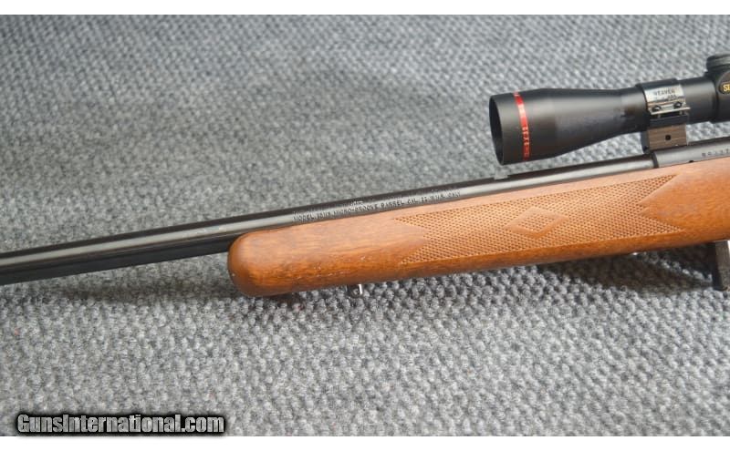 Description: A 2001 production Marlin 25 MN, this versatile rifle was designed as the ultimate varmint and small game hunting rifle, with a beech hardwood stock, 22" barrel, and an overall length of 41", weighing in at a comfortable 6 lbs. The rifle features a smooth, short-action bolt, high-cheek rest stock, and a 7+1 capacity detatchable magazine. The rifle has been outfitted with a Simmons 3-9x32mm rimfire scope, and has virtually no blemish to the metal. The wood stock has a few minor marks, but otherwise is in excellent shape. Rifle does not include any extras. Chamered in .22 WMR. .22 WMR SOLD Metal Condition: Excellent Wood Condition: "Original finish, a few minor scratches Bore Condition: Excellent Barrels: Rifled Triggers: Single Fore End: Wood Butt Pad: Polymer Weight: 6lbs Sights: Simmons 3-9x32mm Scope Item Location: Gainesville, VA |
