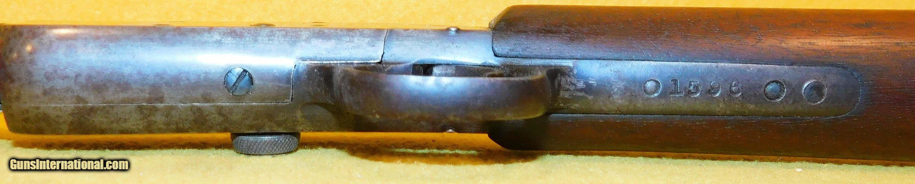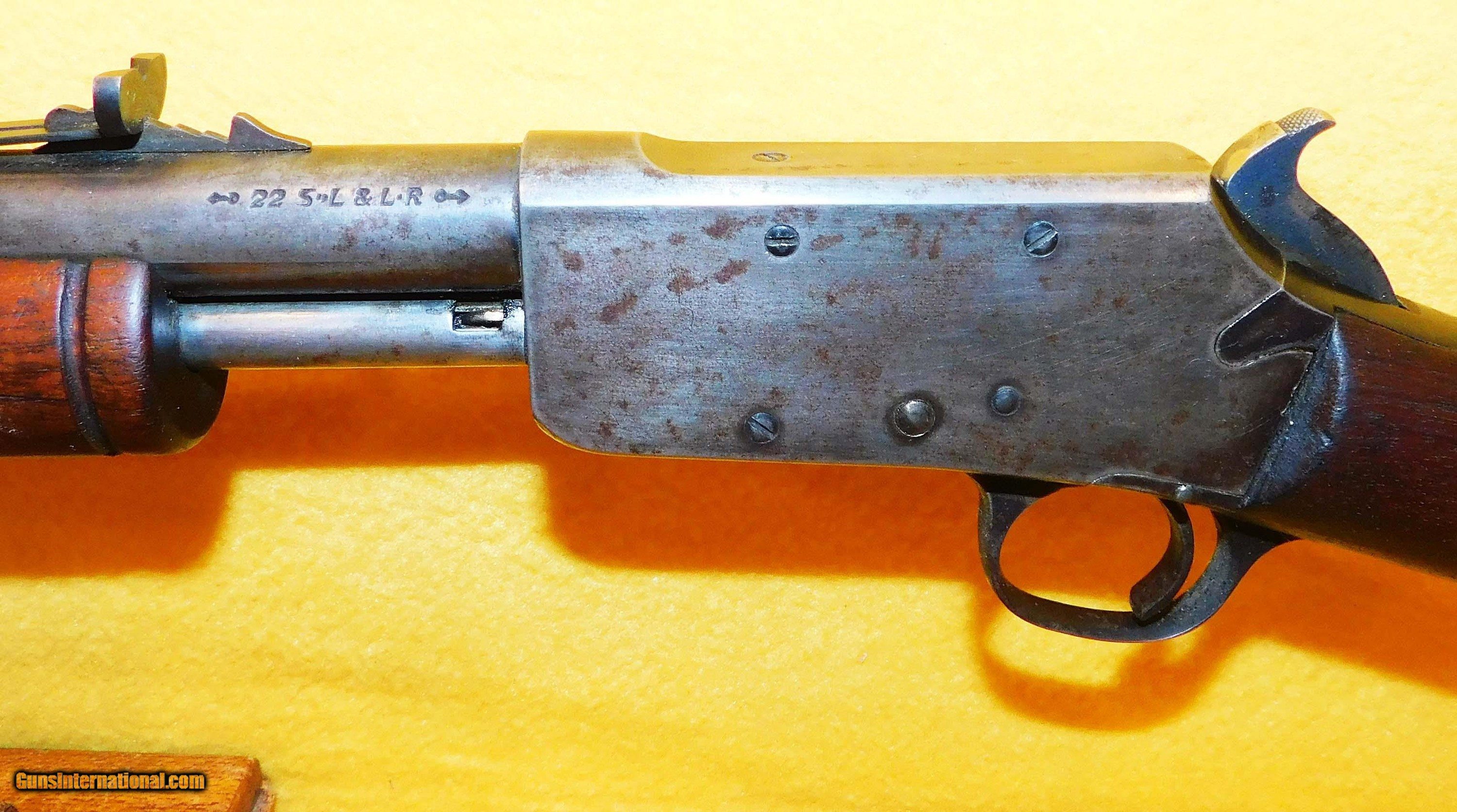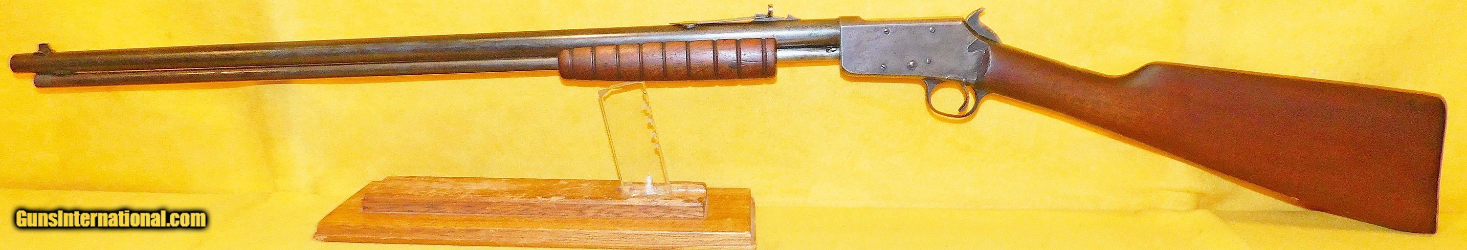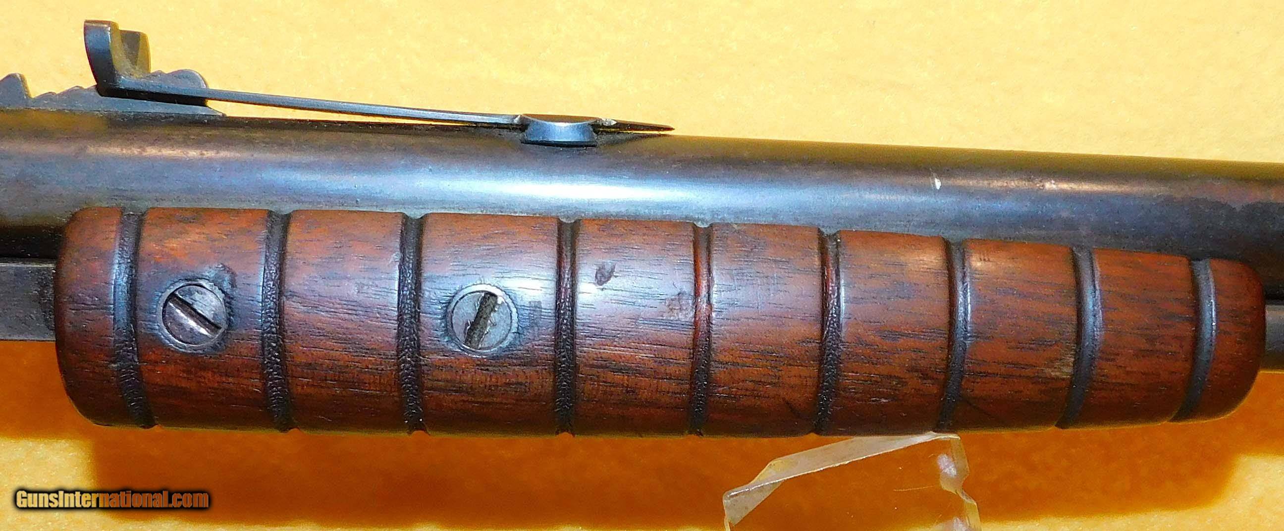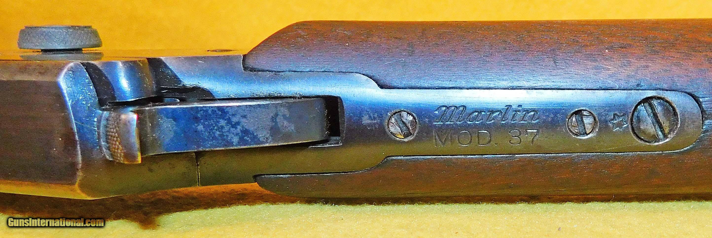 Description: MARLIN 37 TAKE DOWN IN .22 CAL., WITH 24" BARREL. COLOR BLUE. CONDITION 80%. SERIAL NUMBER 1596. MARLIN MODEL 37 (PUMP) TAKE DOWN IN .22 CALIBER BRIGHT BORE WITH STRONG RIFLING, WOOD VERY GOOD, LOADING TUBE SPRING VERY GOOD, 80% OVERALL CONDITION, OUR STOCK # D4088 SOLD |