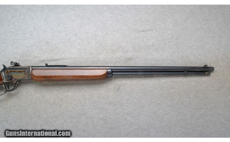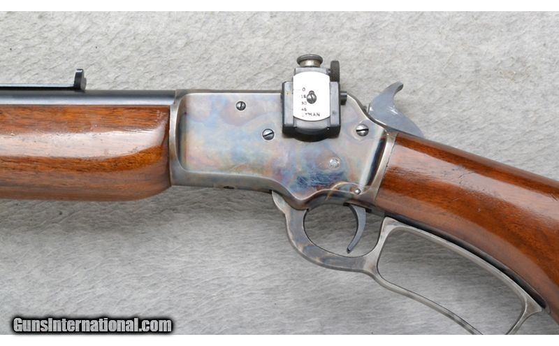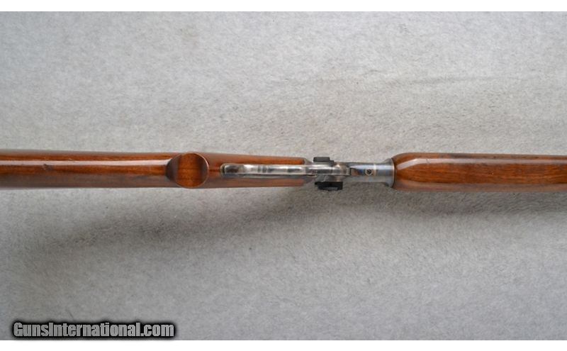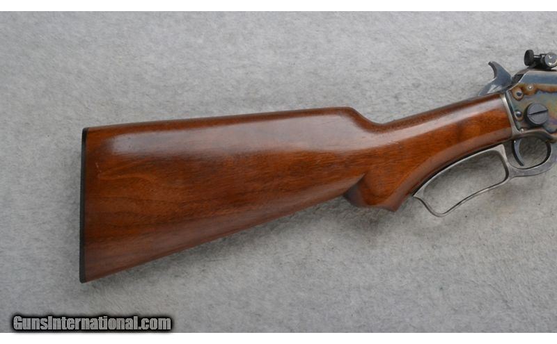 Description: This Marlin Model 39-A is a right hand lever action repeating rifle in .22 Short, Long or Long Rifle Cal. It has a 24 inch barrel. A blade front sight, adjustable notch middle sight and a Lyman adjustable aperture rear sight. The receiver is case colored. The butt stock is a smooth grip walnut pistol grip. The forearm is a smooth grip walnut with a steel cap. Serial Number 2077 (1939). .22 Short/Long/Long Rifle SOLD Chambers: Tube magazine. Metal Condition: Very Good. Receiver has some very minor surface finish blemishes. Wood Condition: Very Good. Light handling marks. Bore Condition: Excellent. Barrels: 24 inch. Stock Dimensions: LOP 13 3/8 inches. Fore End: Smooth grip walnut. Butt Pad: Grooved black plate. Weight: 6 lb. 11 oz. Sights: Blade front. Lyman aperture rear. Item Location: Richfield, WI |