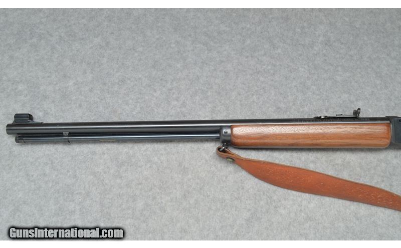 Description: This Marlin 39A is in great condition with a 24 inch blue round barrel that has a very clean bright bore. The walnut stock is in very good condition with some minor field marks on the stock and fore end.The metal is in excellent condition with some minor .22 Long Rifle SOLD Chambers: Leaver action. Metal Condition: Excellent. Wood Condition: Very good. Barrels: 24 inch blue round barrel. Triggers: Single blue trigger. Stock Dimensions: 13 1/4 inch LOP. Fore End: Matching walnut fore end with sling studs. Butt Pad: Black rubber Marlin butt plate. Sights: Iron sights. Item Location: Sun Prairie, WI |