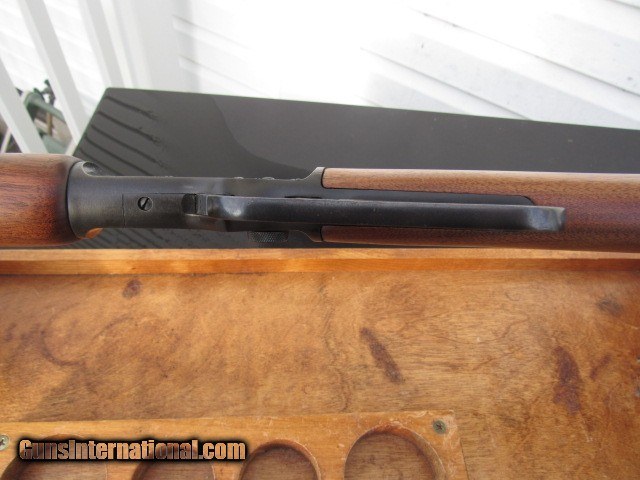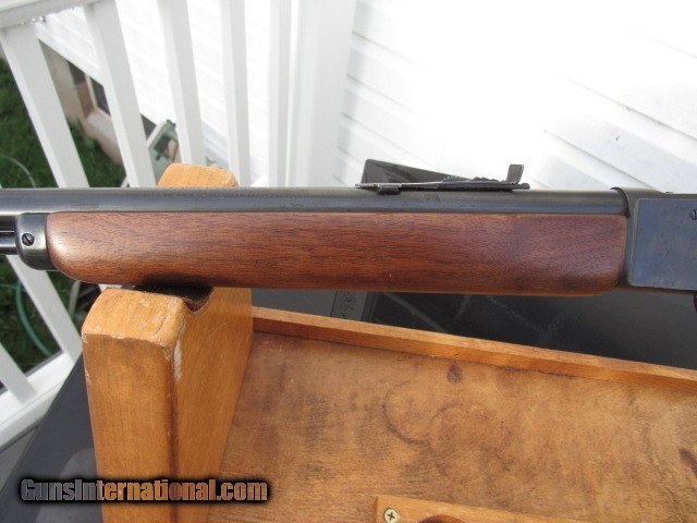 Description: ######## SALE PENDING JOHN U. ######## ******* LABOR DAY SPECIAL - FREE SHIPPING ******* Marlin Model 39A Mountie, 20" round barrel, full tubular magazine, plain trigger, plain walnut stocks, open sights, blued finish, correct Marlin logo butt plate with white line spacer, serial # P11577, made 1957. Handles 22 short, long and long rifle cartridges. This is a Pre Golden model having a correct blued trigger and no "Golden 39A" marking on the barrel. Front sight hood missing. Barrel retains 65% original spotty blue with most of the loss on the front ride side and at muzzle. Receiver and fore end cap retain 98% bright original blue. Action works smoothly and functions correctly, including the half cock safety. Bore is shiny and bright, a 9.5 of 10. Original sights include ramped god bead front and semi-buckhorn rear with correct elevator. Stocks still tight and proud with only a couple of typical use marks, Marlin "Bullseye" still intact in the butt stock toe line. Excellent example that will make a good shooter and collector. No international sales. Must ship to FFL or C&R license (recent changes in NY State law requires shipment to an FFL only if going to a NY State buyer). Payment by personal check, bank check or postal money order (sorry no credit cards). 3 day non-firing inspection. Buyer pays return shipping. Packed with care and shipped USPS Priority Mail with tracking. SOLD Curio/Relic: Yes Rifle Caliber: .22 Long Rifle Manufacturer: Marlin Model: 39A Mountie Serial Number: P11577 Barrel Length: 20" round Condition: Excellent Metal Condition: Excellent Wood Condition: Excellent Bore Condition: Excellent Barrel Type: Micro Groove Action: Lever Triggers: Standard/plain Stock: Walnut Butt Pad: Hard Rubber Sights: Standard Manufacture Date: 1957 Item Location: New York |