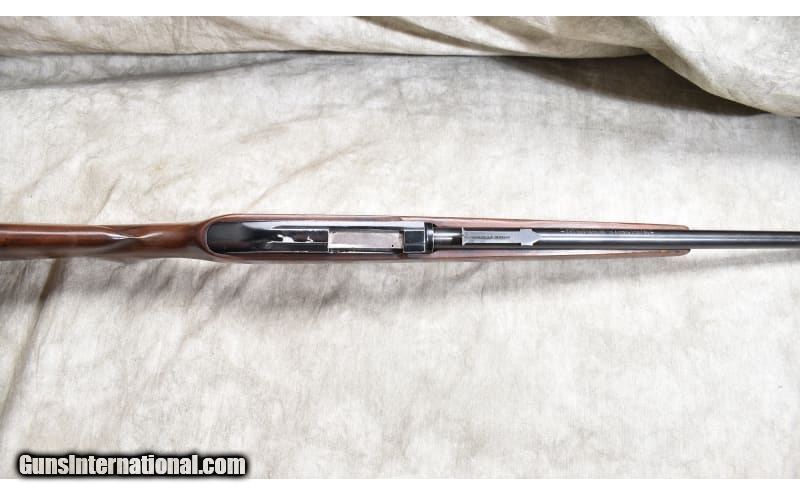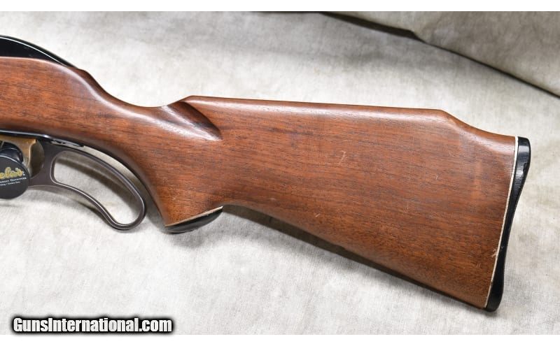Description: This is a detachable magazine version of the Marlin Model 57 Levermatic which has a tube magazine. It has the same type of Monte Carlo pattern stock and the short-throw lever of the Model 57. It also features the Micro-Groove rifled barrel. .22 Long Rifle SOLD Chambers: 1o-rounde detachable magazine. Metal Condition: Good. Some pitting and blue wear on the barrel. The aluminum receiver has quite a bit of finish wear. Wood Condition: Good. A large number of small handling marks. Bore Condition: Shiny and bright. Barrels: 22-inch Micro-groove bbl. Triggers: Factory grooved trigger. Stock Dimensions: 13-5/8 inch LOP. Butt Pad: Black plate. Weight: 6 lb - 3 oz. Sights: "Bead and notch ""iron sights,"" grooved for scope. Item Location: Rogers |
