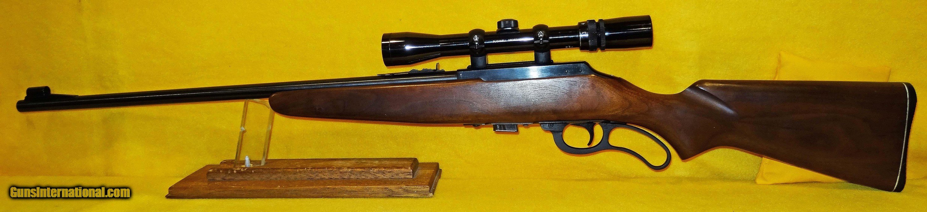 Description: MARLIN 56 IN .22 L.R. CAL. WITH 22" BARREL. COLOR BLUE. CONDITION 98%. SERIAL NUMBER NONE. MARLIN MODEL 56 LEVER ACTION, MIRROR BORE COMES WITH ONE FACTORY MAGAZINE, WOOD IS EXCELLENT, COMES WITH A BUSHNELL BANNER 3X9X SCOPE, 98% OVER ALL CONDITION, OUR STOCK # D866. SOLD |