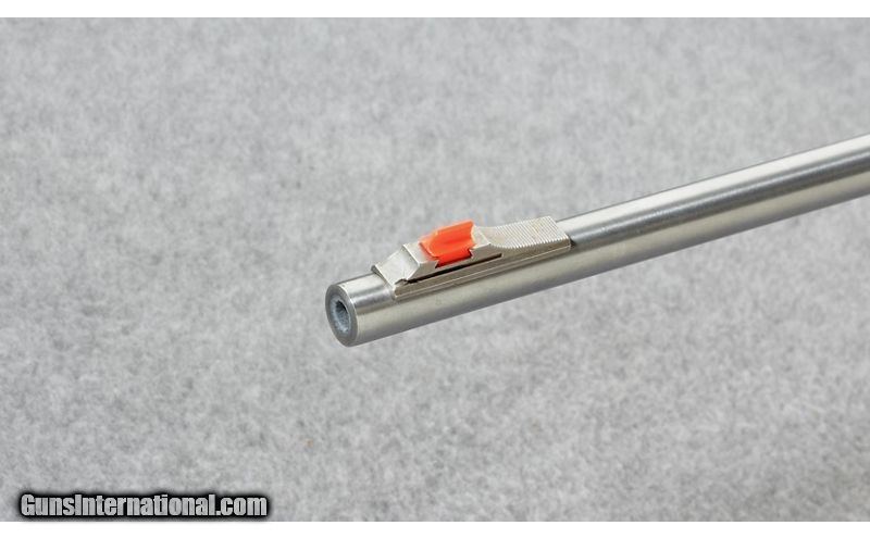 Description: The Marlin Papoose is semi-automatic take-down .22 Long Rifle carbine. It features a stainless steel barrel, cross bolt safety, manual bolt hold-open, adjustable open rear sight, ramp front fiber optic sight, and grooved receiver for scope mount. The black synthetic stock has molded-in checkering and swivel studs. Comes in zippered nylon case. Manufactured 2008. .22 Long Rifle SOLD Metal Condition: Very good with some fine scratches Bore Condition: Excellent Barrels: 16.5 inch stainless barrel Stock Dimensions: 13.62 inch LOP Weight: 3 lbs. 4 oz. Sights: Semi-buckhorn rear sight with orange bead Item Location: Lehi, UT |