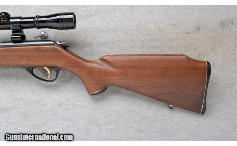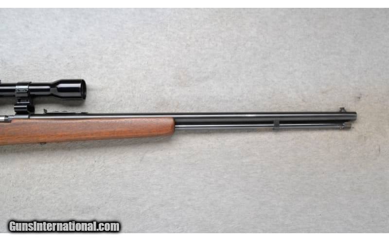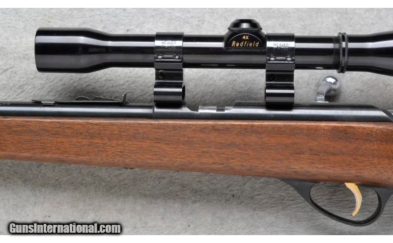 Description: This Marlin Model 81 is a right hand bolt action rifle in .22 Short, Long or Long Rifle Cal. It has a 22 inch Micro-Groove Barrel. A blade front sight, adjustable notch middle sight and is outfitted with a Redfield 4X Scope on a see through mount. The butt stock is a smooth grip walnut pistol grip with a black cap. The forearm is a smooth grip walnut. .22 Short/Long/Long Rifle SOLD Chambers: Tube Magazine. Metal Condition: Very Good. A few minor use marks. Wood Condition: Very Good. A few minor use marks. Bore Condition: Excellent. Barrels: 22 inch Micro-Groove Barrel. Stock Dimensions: LOP 13 5/8 inches. Fore End: Smooth grip walnut. Butt Pad: Marlin checkered black plate. Weight: 6 Lb. 6 Oz. Sights: Blade front. Adjustable notch middle. Redfield 4X Scope. Item Location: Richfield, WI |