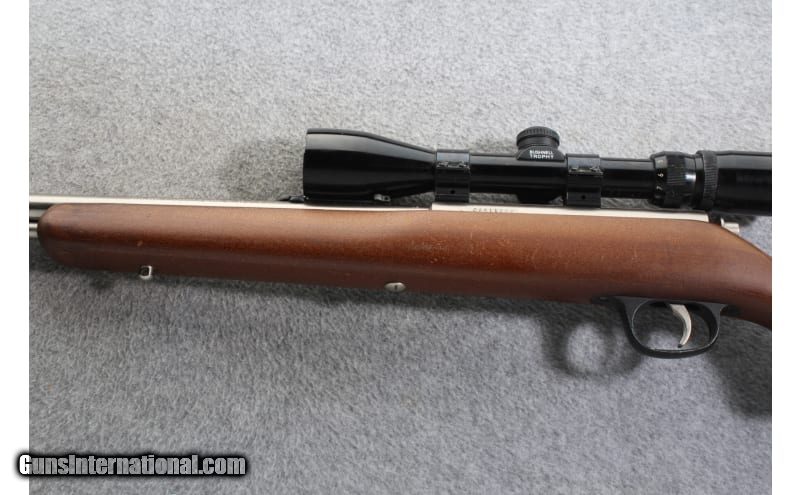 Description: A Marlin 883N .22 WMR in stainless with a 22 inch barrel, and mounted Bushnell Trophy 3-9x40mm scope .22 WMR SOLD Metal Condition: Excellent with wear Wood Condition: Excellent with wear Bore Condition: Bright and Shiny Barrels: 22 inches Triggers: "Single action, bolt Stock Dimensions: 13 3/4 inches LOP Fore End: Smooth wood Butt Pad: Rubber Weight: 7 lbs 8 ozs Sights: "Drilled and Tapped, with Bushnell Trophy 3-9x40 scope mounted Item Location: Gonzales, LA |
