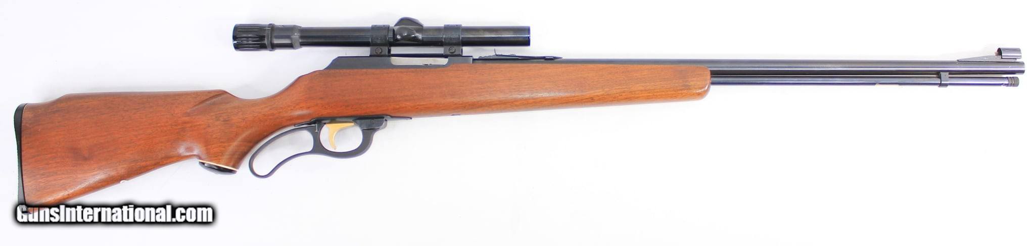 MARLIN EXCELLENT RARE MARLIN 57-M 22 WMR 24" BARREL MICRO GROOVE BLUED W/ WEAVER V22 SCOPE .22 WMR