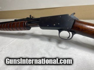 Description: Model 37 pump 22 S,L,LR take down #4101 24" barrel full length tube made in 1913 to 1916 Marble sights front and back 22 take down my youth gun for squrles and rabbits purches used in 1955 with marble sight which were extra at the time by $2 over the regular sights well worth the extra 90% condition C&R SOLD Curio/Relic: Yes |