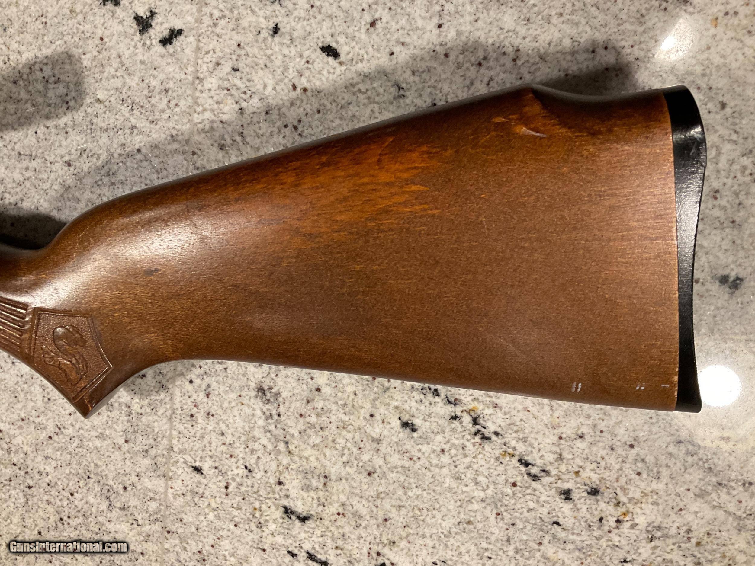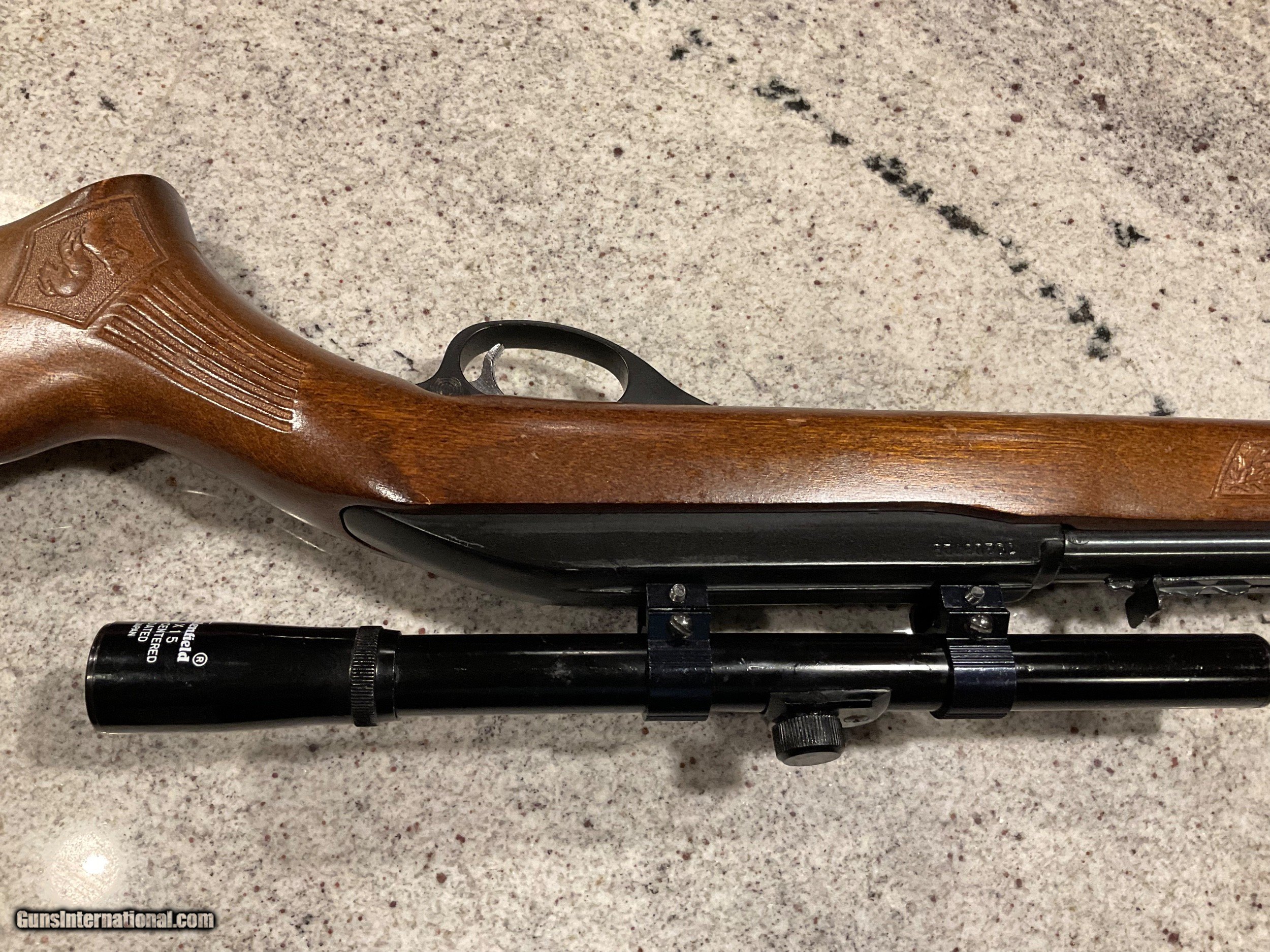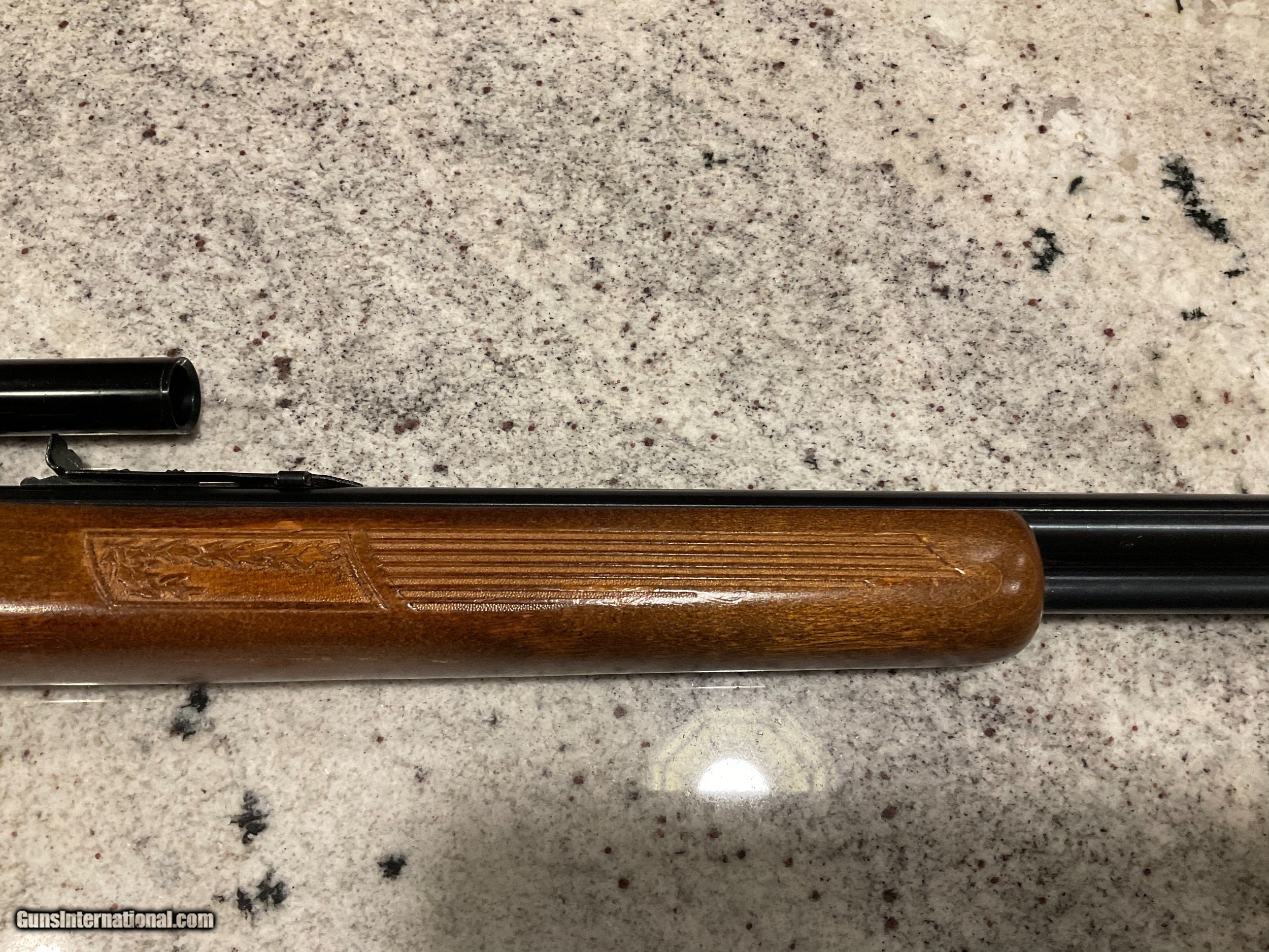Description: Marlin Glenfield Model 60. MANUFACTURED ALMOST 52 years ago in 1970. This rifle has the SQUIRRELS on both side of the stock and the JM MARKED 21" barrel. Barrel is shiney and without blemishes. Comes with the ORIGINIAL Glenfield 4x15 Optic-Centered Coated Scope. I believe the magazine holds 18, .22 Ca. LR Rounds. Most Model 60's did up until 1980, when laws in NJ changed and made 18 rounds illegal in that state. Marlin then reduced the number the magazine would hold in order to continue sales in NJ. No box or papers. Photos show some marks on stock, NO real marks or blemishes on the blue metal. A real nice piece of history. Serial # 70209725 Ships to your FFL in lower 48 for $50 shipping/insurance. $340.00. SOLD...Thank you CHRIS. SOLD |
