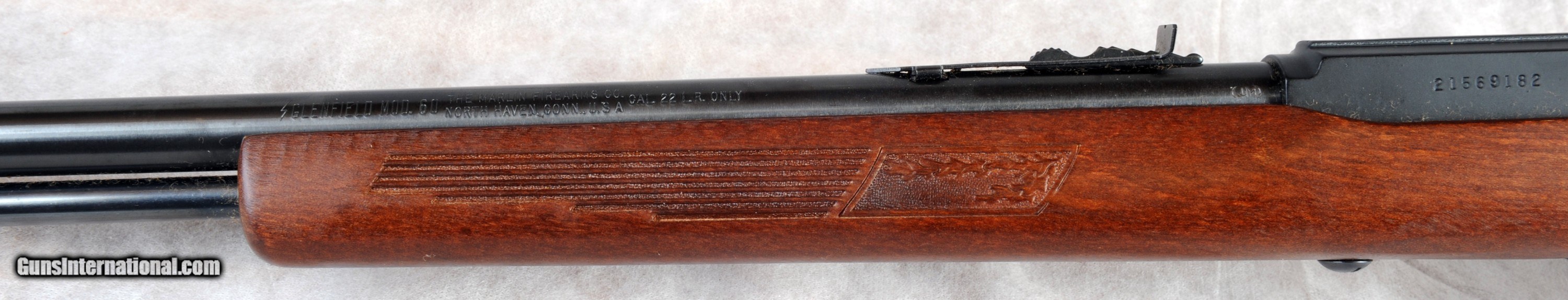 Description: I am offering this super clean, like new in every respect Marlin/ Glenfield Model 60 .22 LR rifles you'll find. NOTE: The magazine follower is not shown in the photos but IT IS INCLUDED WITH THE RIFLE (it slid out in the case when I went to take the photos and didn't see it). The serial number puts it as being manufactured in 1979. It's super clean and shows zero nicks, dings, or scratches. Here's your chance to pick up one of the nicest 46 year old 60's you'll ever find. What looks like rust is simply fuzz from the gun case. The bluing is perfect and there is ZERO rust. I have attempted to take decent photos of the gun so that you can be confident in what it looks like. I do ship to California if the gun is allowed. All FFL rules apply. If you're close you may pick this up at my shop at Lohrville Iowa. Purchaser agrees to pay actual postage/ shipping costs with insurance to your FFL. I can accept credit cards but you will have to pay 4%. FYI- my gun shop is also a winery so credit card receipts will come back as Sweet Honeymoon Winery. Yes, I sell guns in a winery or wine in a gun shop depending on perspective. I don't check messages on here very often so if you have questions, queries, concerns, etc. please CALL ME at 712-465-3400. This is a land line so you CAN NOT text to it. Don't let this beauty get away. This rifle is for sale in my shop and I reserve the right to sell it locally if I don't have a commitment to buy it here. I may be interested in trades depending on what you've got. Dont' let this fine rifle get away! Thanks for looking! SOLD Rifle Caliber: .22 Long Rifle Manufacturer: Marlin/ Glenfield Model: 60 Barrel Length: 21 Condition: Excellent Metal Condition: Excellent Wood Condition: Excellent Bore Condition: Excellent |