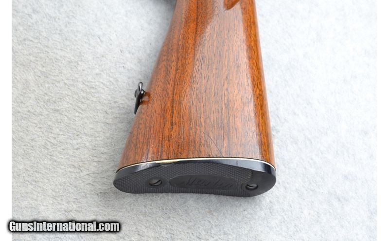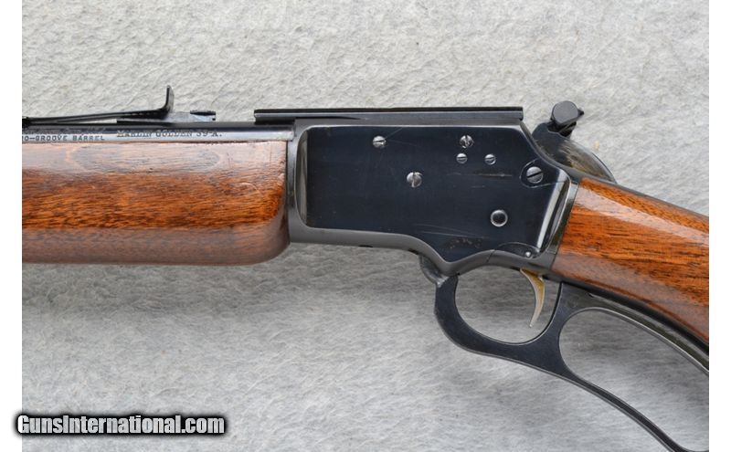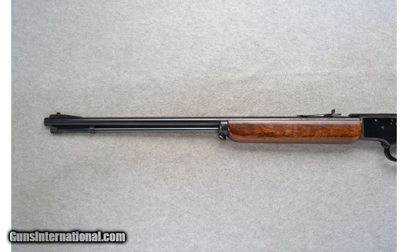 Description: This Marlin Model Golden 39-A is a right hand lever action repeating rifle in .22 Short, Long and Long Rifle Cal. It has a 24 inch Micro-Groove barrel. A ramped blade front sight and an adjustable notch middle sight. A scope mount base is attached. The butt stock is a smooth grip walnut pistol grip with a black cap. The forearm is a smooth grip walnut with a steel cap. .22 Short/Long/Long Rifle SOLD Chambers: Lever Action full barrel length tube magazine. Metal Condition: Very good with some minor handling marks and freckling. Wood Condition: Good with minor handling marks. May have been refinished. Bore Condition: Excellent. Barrels: 24 inch Micro-Groove barrel. Triggers: Golden. Stock Dimensions: LOP 13 3/8 inches. Fore End: Smooth grip walnut with a steel cap. Butt Pad: Marlin checkered black plate. Weight: 6 lb. 9 oz. Sights: Ramped blade front. Adjustable notch middle. Scope mount base attached. Item Location: Richfield, WI |