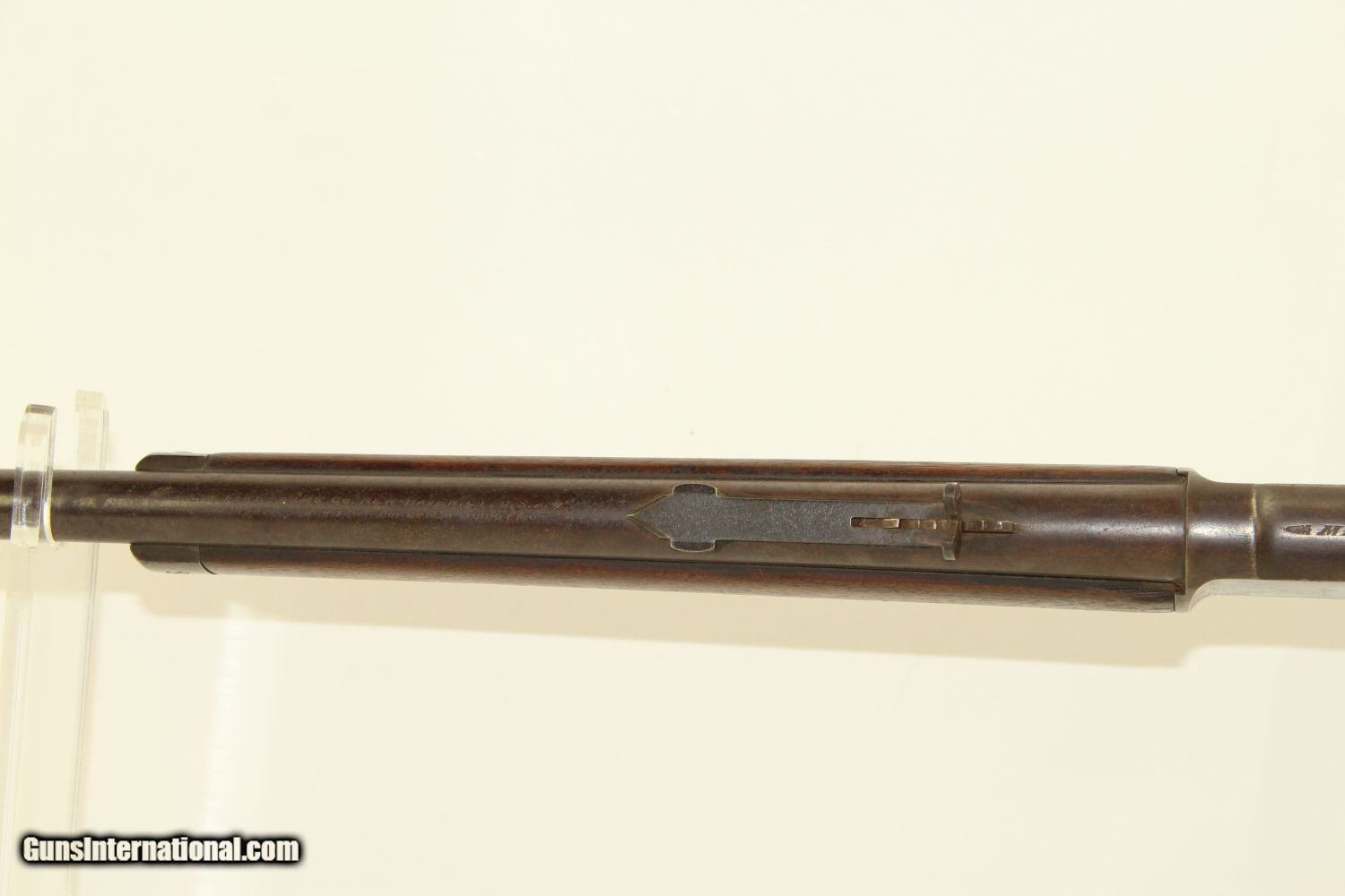 Description: MARLIN Model 1897 Lever Action C&R TAKEDOWN Rifle Blue with Casehardened Receiver In .22 Caliber! Here we present a Marlin Model 1897 Lever Action .22 Rifle, made in 1903 in New Haven, Connecticut. This rifle had a production run from 1897 to 1922. John Mahlon Marlon, founder of the company, served as a machinist with Colt Patent Firearms of Hartford prior to starting his own firearm manufacturing company in New Haven in 1863, during the American Civil War, where he concentrated primarily on production of small, single shot .22 deringers. This rifle sports a German silver blade front and sporting type rear sight, along with a full-length magazine. It has a smooth forearm and a straight grip stock with an iron forend cap. The top of the receiver is marked “MARLIN SAFETY”. The barrel is marked “MARLIN FIRE-ARMS CO. NEW-HAVEN CT USA”, followed by patent information. The tang of the receiver is marked “MODEL 1897”. Overall condition is good. The blued steel parts have turned plum with age. The markings are clear. The walnut stock has been repaired at the wrist with a copper dowel that has been laid over—a bit of character. The bore is dark with thin rifling. The action is smooth and strong. Here is a rifle that very likely took many squirrels in its day! This firearm is classified as a Curio & Relic. Barrel is 24 inches in length. Caliber: .22 Short, Long, Long Rifle Overall condition as seen in photos. Very Fast. Very Safe. FREE SHIPPING. Will need to be sent to your local FFL or C&R licensee. This firearm is classified as a Curio & Relic. Guaranteed AUTHENTIC & Includes CERTIFICATE OF AUTHENTICITY. ancestryguns $1000 #190883 SOLD Curio/Relic: Yes |