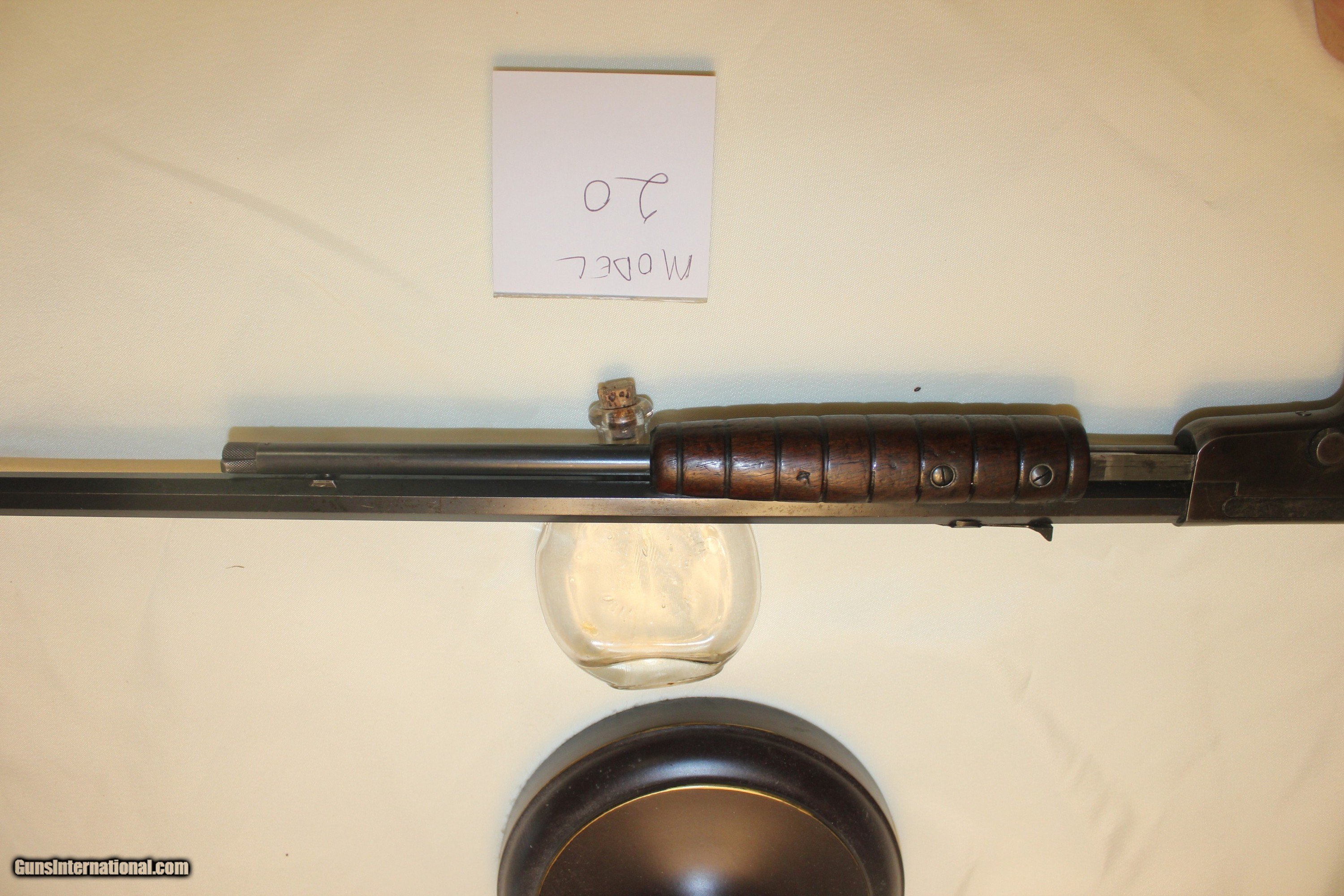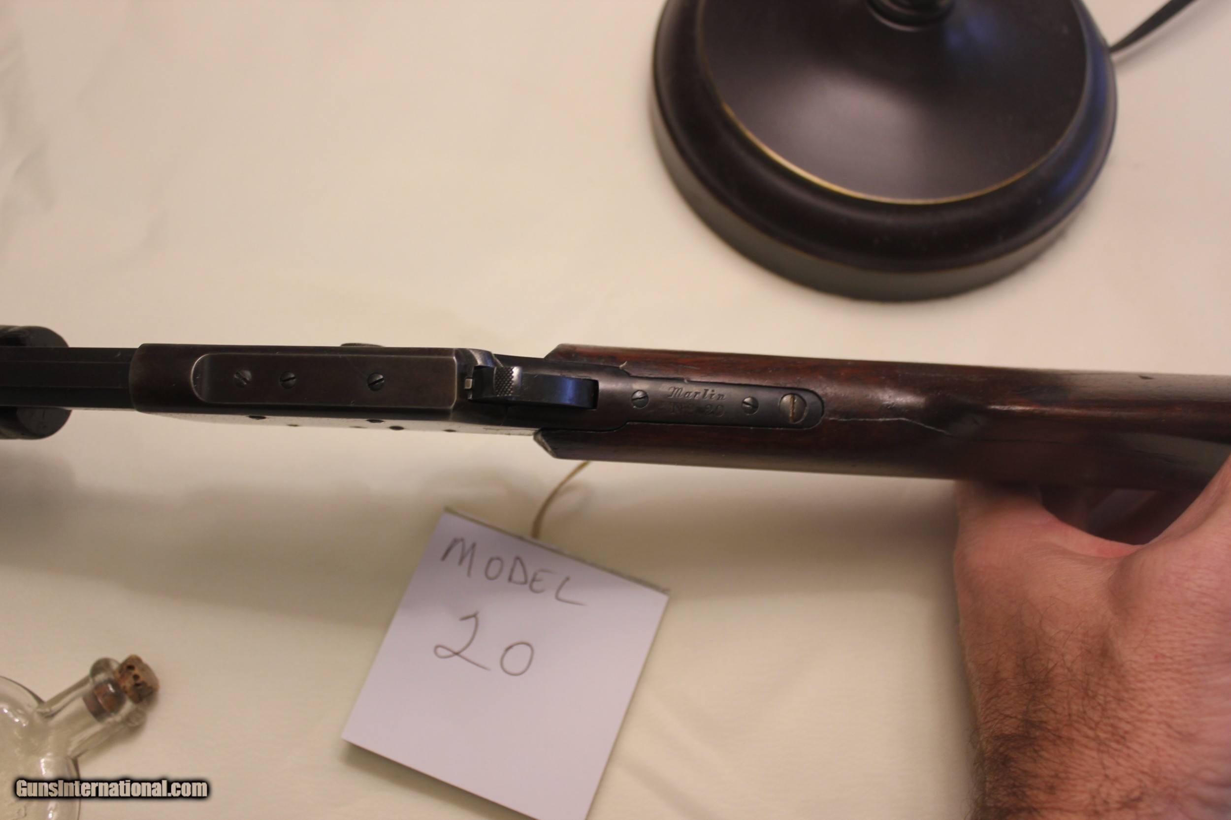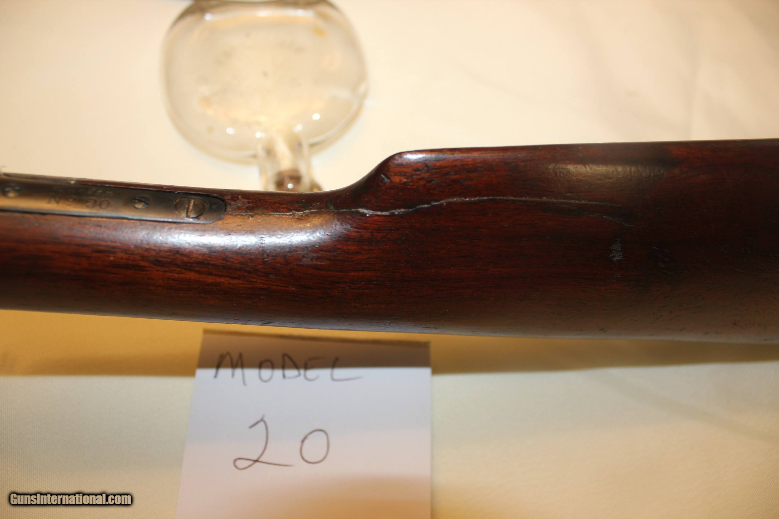 Description: Marlin Model 20 slide action .22. Mfg 1907 - 1911. 23 in. barrel. This gun is functioning properly and an excellent shooter. The bore is in excellent condition. There were a couple cracks in the stock but they have been completely repaired and the stock is tight as a drum. (there's no pin in the stock - and no pin needed) The gun is all original as far as I can tell. There's little to no bluing left on the metal - but overall I would say the metal is in very good condition. This is NOT a gun that was over-shot/abused but any means. These slide actions are getting tough to find and understandably so.....they're very well built and about as much fun to shoot as anything. All fair and reasonable offers considered. C&R eligible. Shipping is $35. SOLD Curio/Relic: Yes Rifle Caliber: .22 Long Manufacturer: Marlin Model: 20 Bore Condition: exc |