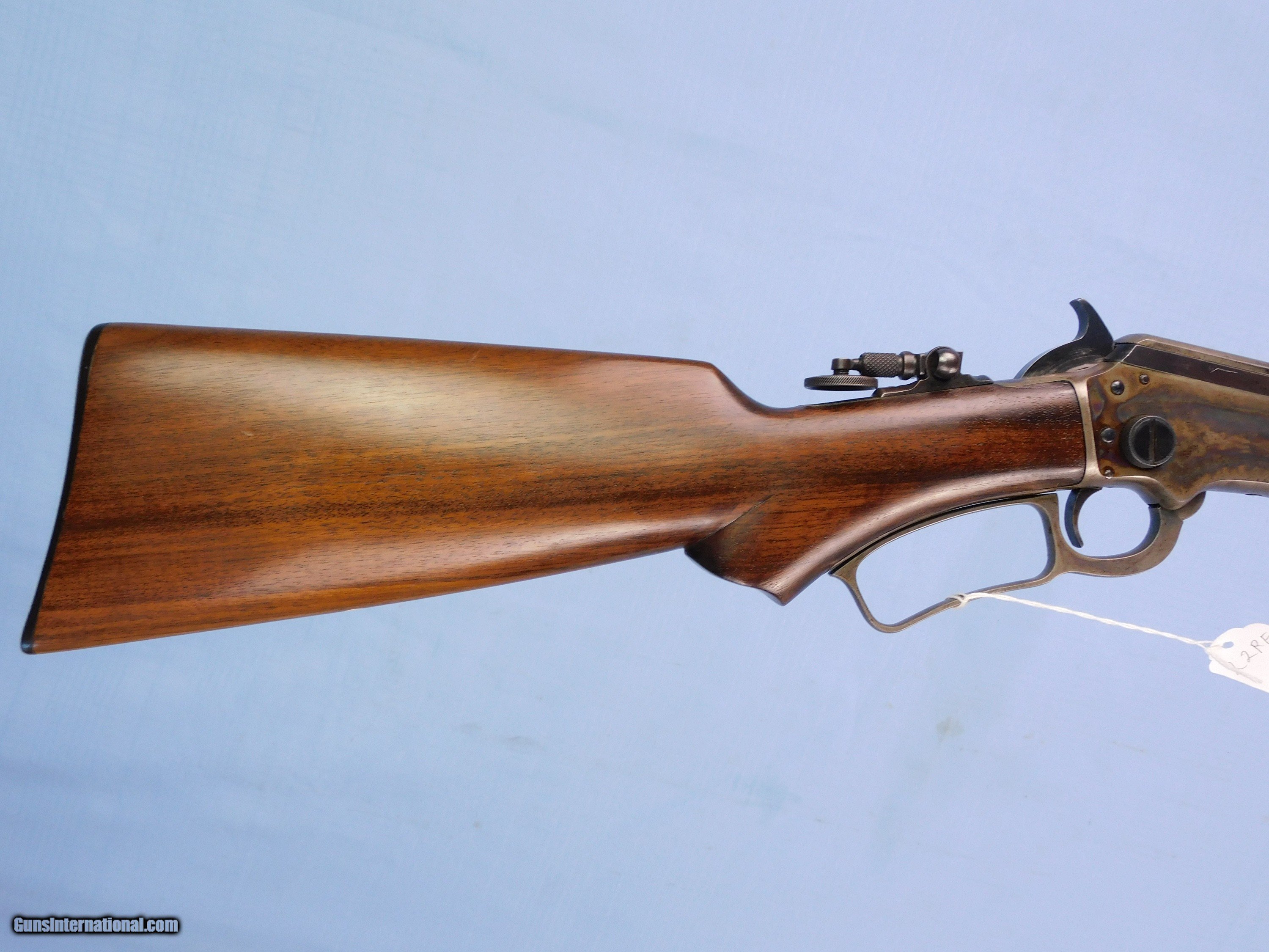 Description: #1083 MARLIN MODEL 39 1ST MODEL, 22 RF, SN 125XX, 23 1/2” oct. bbl., made in 1924, nicely figured wood on PG stock, Marlin buttplate, Marble tang sight, 95% blue, 95% casehardening, exc. wood & bore, S curve to bottom of PG, made in 1939 only. $1950 FFL required SOLD Curio/Relic: Yes |