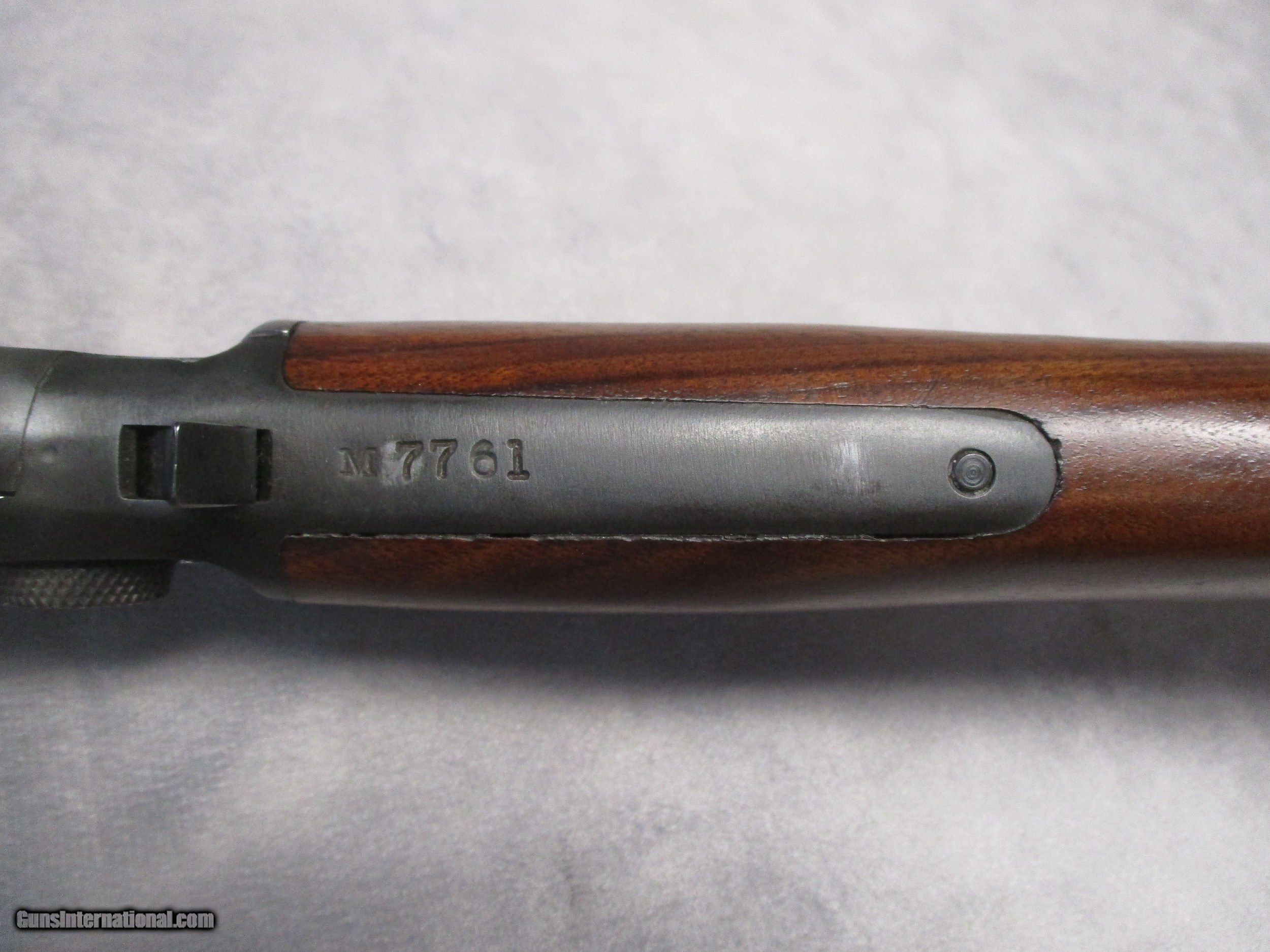 Description: The Marlin Model 39A is one of Marlin’s most well-known lever-action rifles. It was originally introduced in 1939 and was a development of the original Model 39. The example shown here is a Pre-“Mountie” type, i.e. it has the 20-inch round barrel but is not stamped with the name “Mountie” on the barrel. It left the factory in 1955. The Model 39A Pre-“Mountie” features the aforementioned 20-inch long round barrel, straight grip stock, hard rubber butt plate, one piece trigger, open sights, no cross bolt safety, and of course, has a takedown action that aids both cleaning and transporting. The rifle retains most if not all of its finish. There is some slight bluing wear at the edge of the muzzle on both sides. The hammer also has some finish loss from use. The barrel has been drilled and tapped for kind of side mount. There is some light rust on the receiver and to a lesser extent, the barrel. The wood furniture exhibits only light wear, mainly on the fore end, but no cracks. The bore is in excellent shape. The action is tight and has no hint of looseness. SOLD Rifle Caliber: .22 Long Rifle, .22 Short, .22 Long Manufacturer: Marlin Firearms Co. Model: Model 39A Pre-Mountie Serial Number: M7761 Bore: Rifled, Micro-groove, 1 in 16” RH twist Condition: Good to Excellent Barrel Type: Round Action: Lever action Triggers: Single Stock: Walnut, straight grip Fore End: Walnut Butt Pad: Checkered plastic plate LOP: 13.375 inches (339.725 mm) Finish: Blued Sights: Beaded front post, drift-adjustable semi-buckhorn rear w/elevator, sight radius 16.75 inches (425.45 mm) Manufacture Date: 1955 |