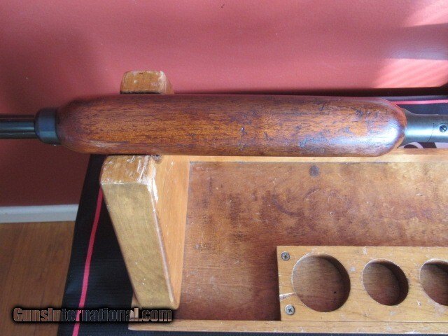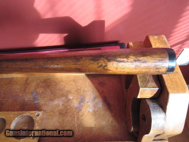 Description: ***** CABIN FEVER SPECIAL - FREE SHIPPING ***** Marlin Model 39A takedown rifle made in 1941, shoots 22 short, long and long rifle cartridges (25, 20, and 18 rounds respectively). Super scarce Second variation made only in this year (Col. Brophy states no guns were produced 1942-1944 during WWII and 1945 saw the start of the all-blue Third variation) with 24" round barrel, full magazine, plain walnut stocks, flat-bottomed pistol grip with no grip cap, beavertail fore arm, case hardened receiver and lever, blued barrel and mag tube, brass mag tube follower, rounded lever without projection, open sights, serial number B4286, hard rubber butt plate, model designation on barrel, correct blank upper tang with factory drilled/tapped/plugged tang peep sight holes, trademark Bullseye in bottom toe line of butt stock. CONDITION: Barrel retains 85% original bright blue with some spotty flecking beginning throughout that only shows up in bright sunlight. Mag tube retains 95% bright original blue with some light scratching on the bottom. Lever retains 10% original case colors, the rest turned a smoky patina. Receiver retains 80% original case colors with the loss at the bottom front and upper tang due to normal use and aging. Stocks are sound with no splits or cracks, never sanded or refinished with a multiple scratches, nicks and dings; a long, deeper scratch exists on the bottom of the pistol grip (it is not a crack). Butt plate in good condition with no missing pieces or cracks. Bore is a 9.5 out of 10, mirror bright and shiny no pitting whatsoever. Action is smooth with a properly working half cock safety. Take down is tight with no wobble. Brass feeding tube is a mellow ochre and has never been cleaned; locks up tightly in the mag tube. Original front and rear sights are intact. Correctly has the JM marking on the right side of the barrel at the breech. This is an excellect collector's piece and super hard to find, so don't miss a chance to add this to your collection! TERMS: Must ship to FFL dealer or C&R licensee. New York State buyers must have the item ship to an FFL dealer only, no C&R. 3 day non-firing inspection. Buyer pays return shipping. Payment by personal check, bank check, or USPS money order only, sorry no credit cards, no electronic payments. Have a competent gunsmith give it a clean bill of health before using as it has not been test-fired. Packed with great care to survive the trip. Ships by FedEx Ground. See my other listings for more great collectible firearms! Curio/Relic: Yes Rifle Caliber: .22 Long Rifle Manufacturer: Marlin Model: 39A Serial Number: B4286 Barrel Length: 24" round Condition: Excellent Metal Condition: Excellent Wood Condition: Very good Bore Condition: Excellent Action: Lever Triggers: Standard/plain Stock: Walnut Butt Pad: Hard Rubber Sights: Standard Manufacture Date: 1941 Item Location: New York Price: $1,650.00 Buy Now Contact Seller |